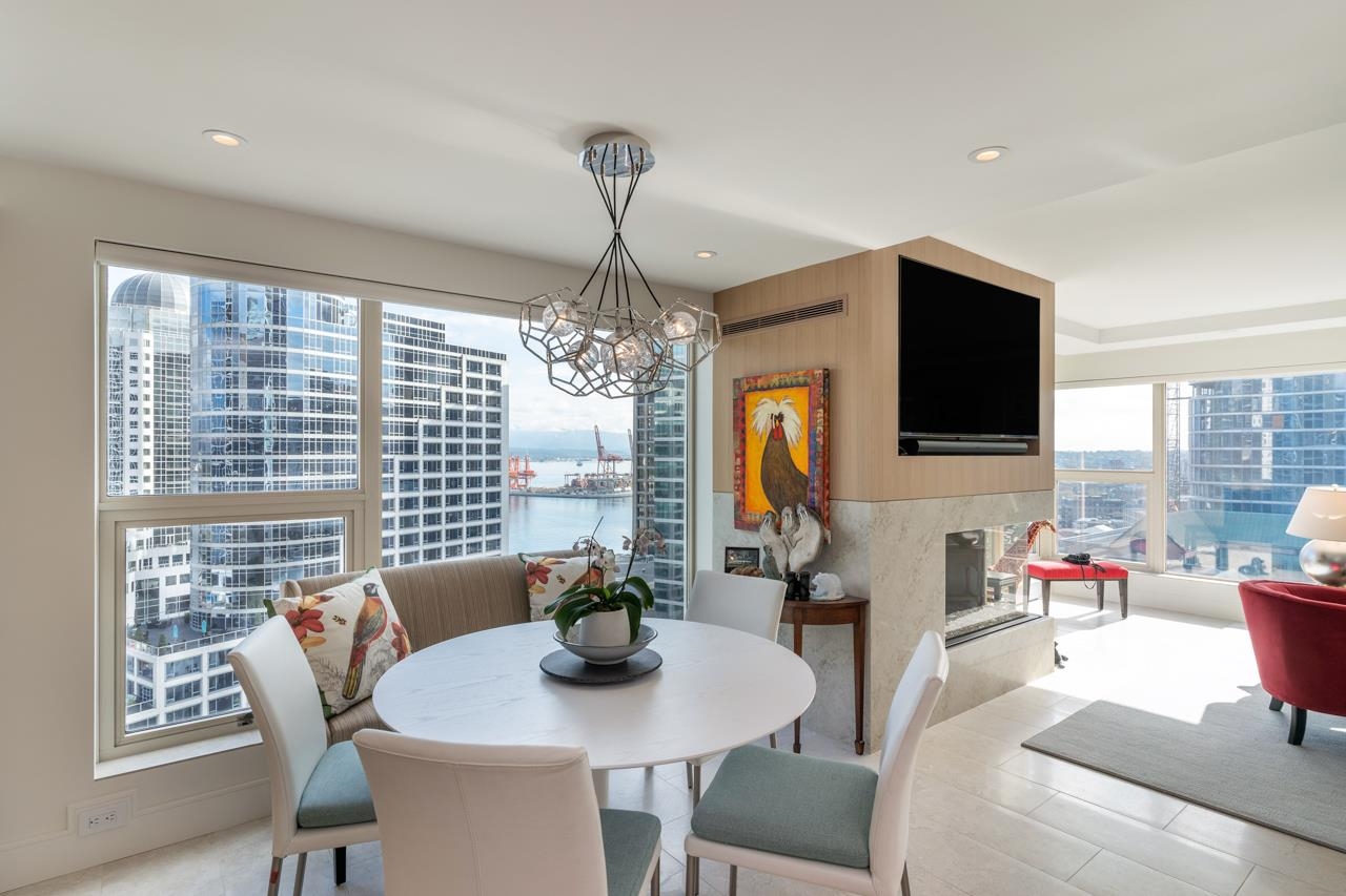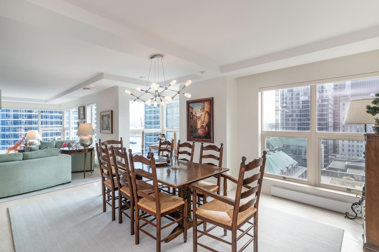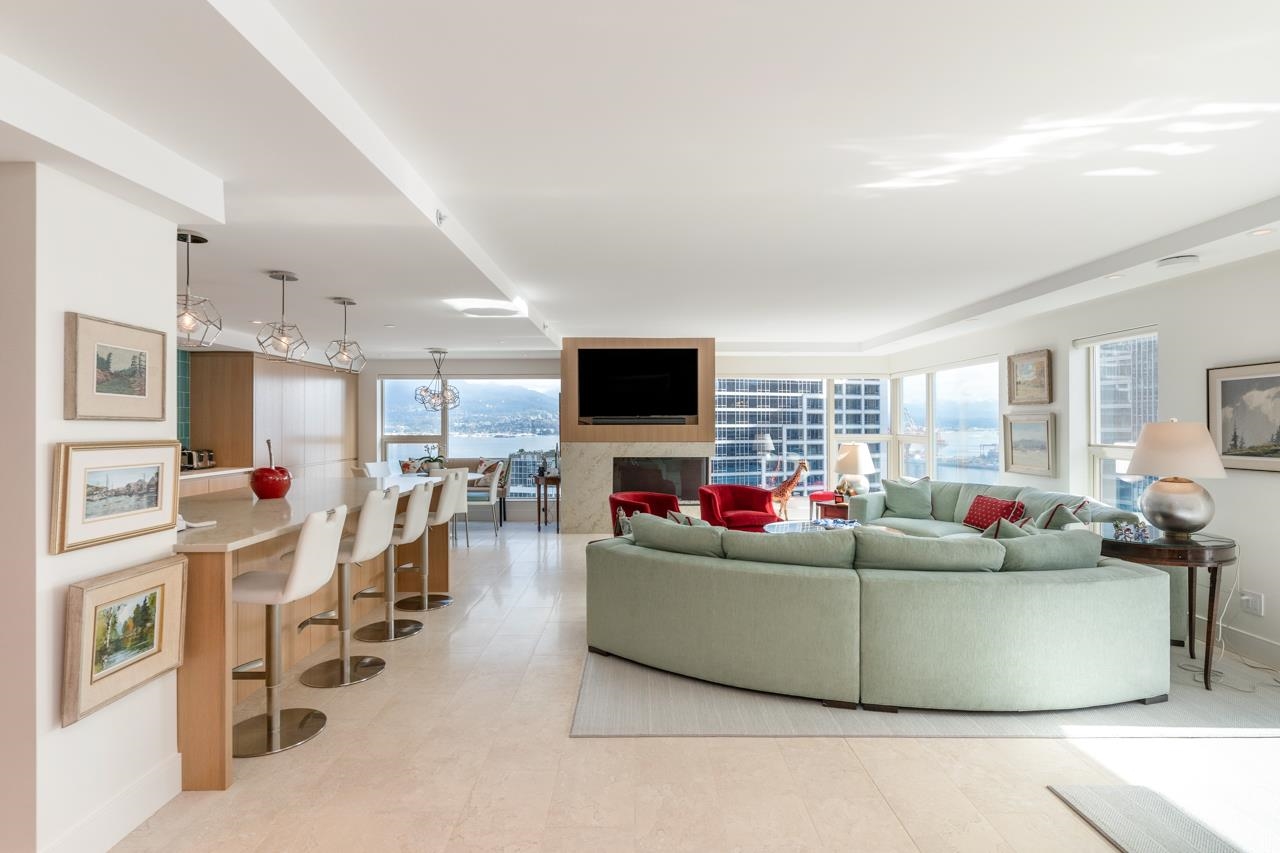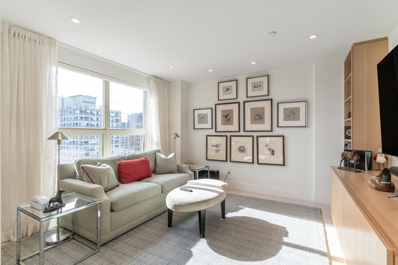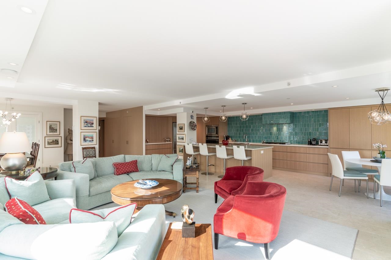 Welcome to this beautiful home @ the Terminal City Club. Exquisitely re-imagined home by Preston Interiors & Eyco Building Group in 2021, this one-of-a-kind space is a combination of 2 units creating a massive wrap around 3bed/3bath+office home. N facing, corner, flr-to-ceiling windows fuse the brilliance of natural light w/captivating views of NS mtns & ocean. Travertine marble floors, extensive white oak millwork, designer Chef's kitchen w/5 burner range, oversized island, spacious pantry, appl pkg, wet b...