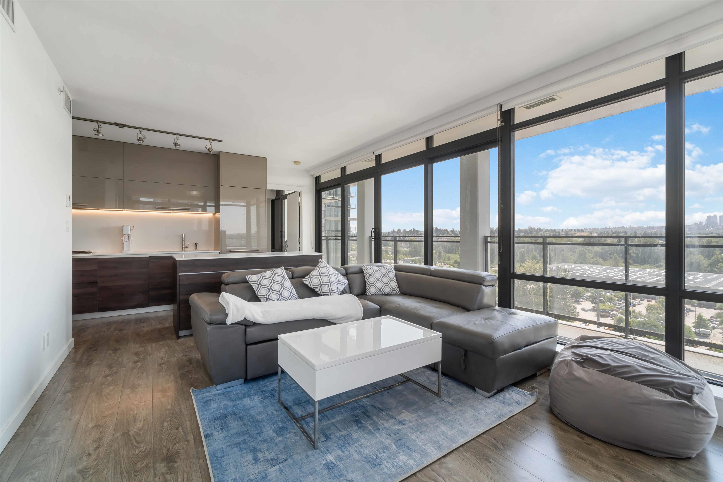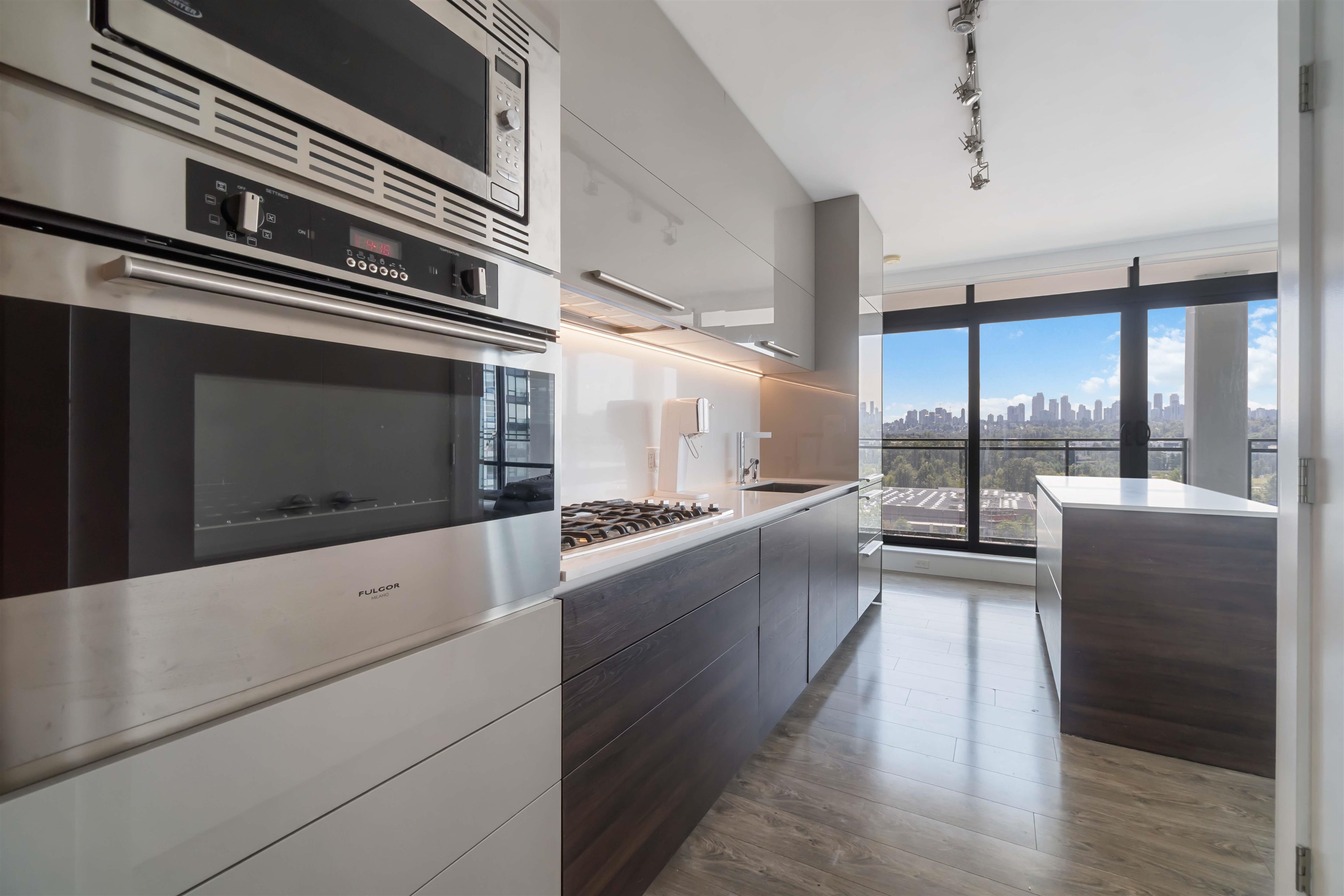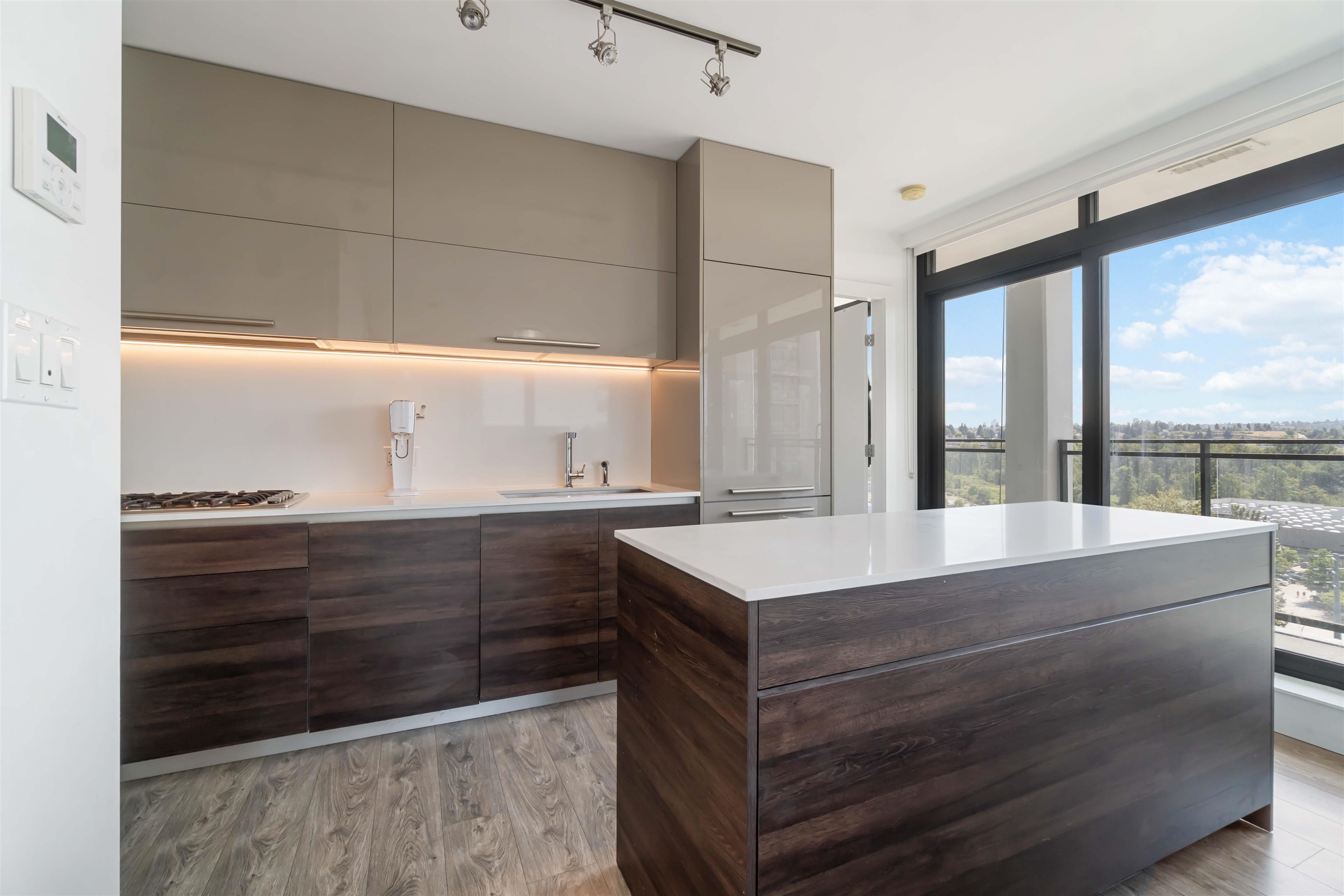 Welcome to Milano by Solterra in Brentwood Park! This stunning 2 bed, 2 bath corner home offers 765 sq.ft. of modern living with floor-to-ceiling windows and a massive wrap-around balcony showcasing sweeping city and park views. The sleek kitchen features integrated appliances, gas cooktop, and a large island, while both bedrooms are bright and well-sized, including a spa-inspired ensuite. Enjoy in-suite laundry, A/C, and resort-style amenities including a fitness centre, guest suite, lounge, and outdoor sp...