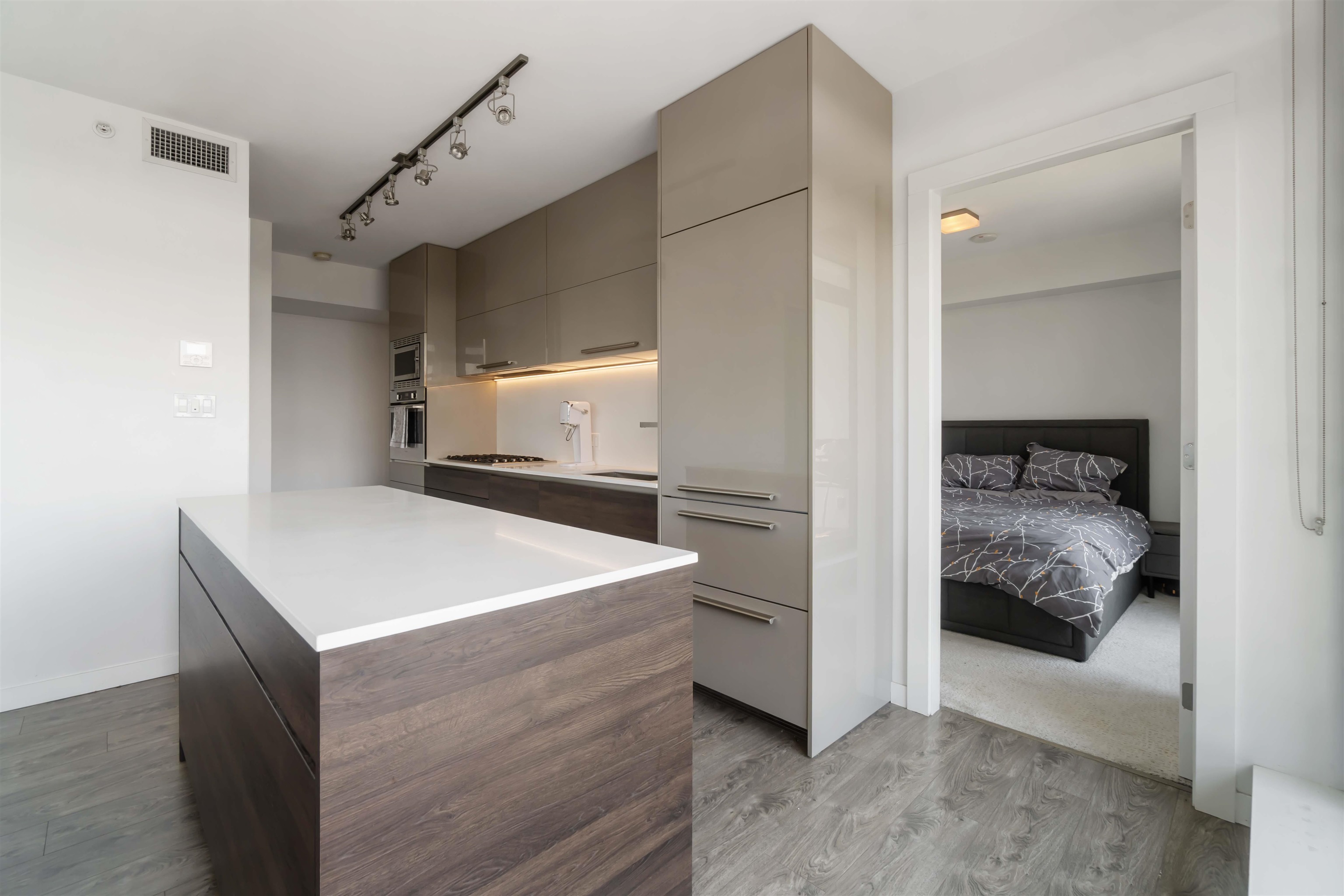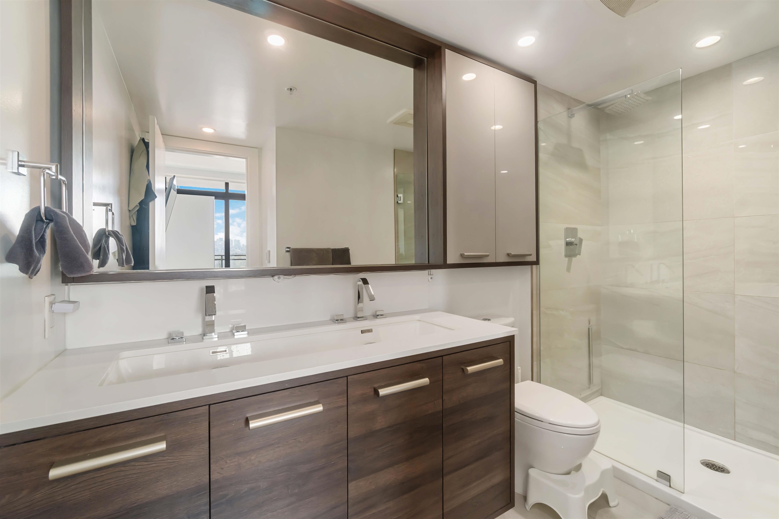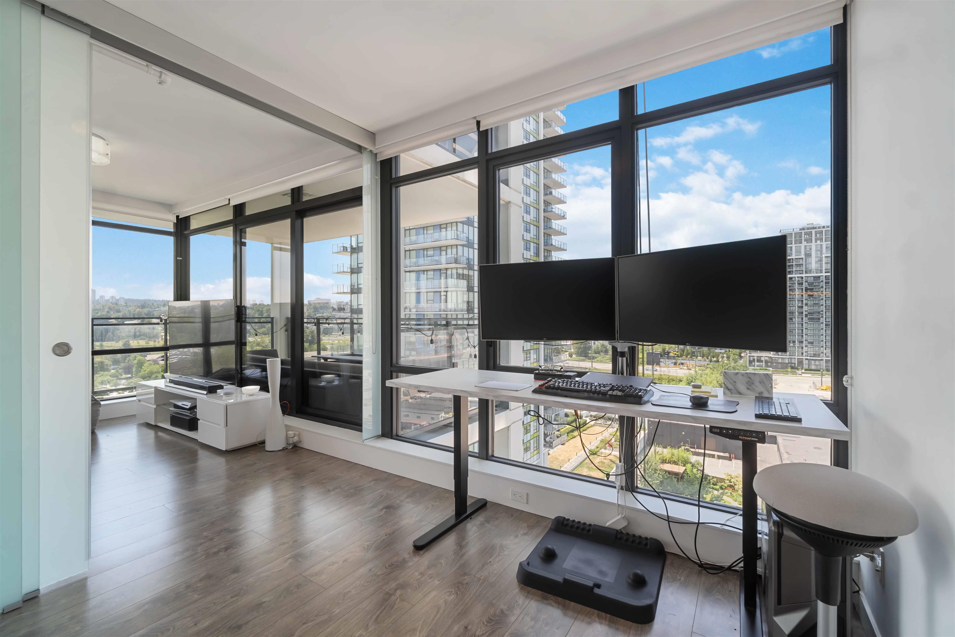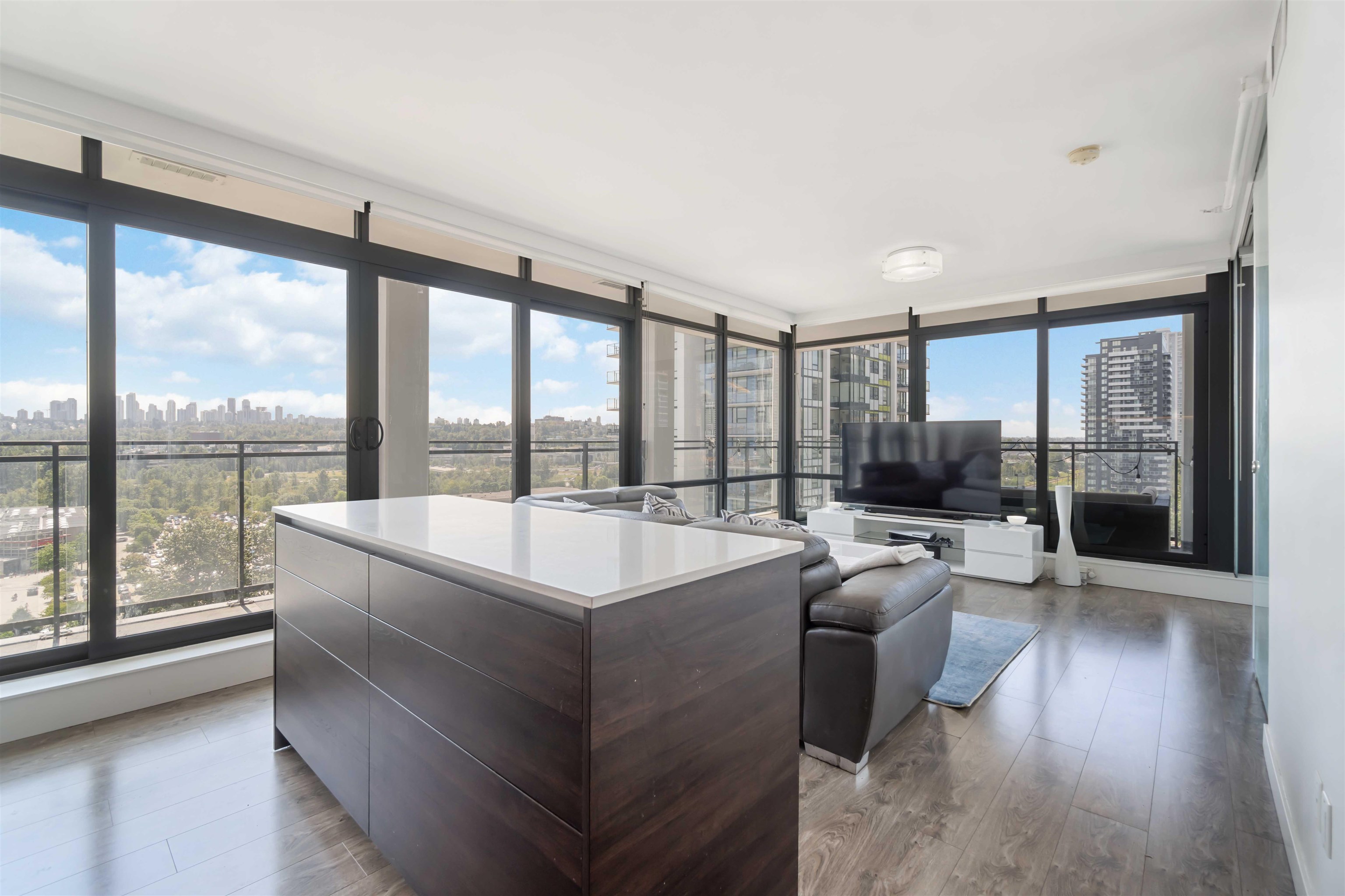 Welcome to Milano by Solterra in Brentwood Park! This stunning 2 bed, 2 bath corner home offers 765 sq.ft. of modern living with floor-to-ceiling windows and a massive wrap-around balcony showcasing sweeping city and park views. The sleek kitchen features integrated appliances, gas cooktop, and a large island, while both bedrooms are bright and well-sized, including a spa-inspired ensuite. Enjoy in-suite laundry, A/C, and resort-style amenities including a fitness centre, guest suite, lounge, and outdoor sp...