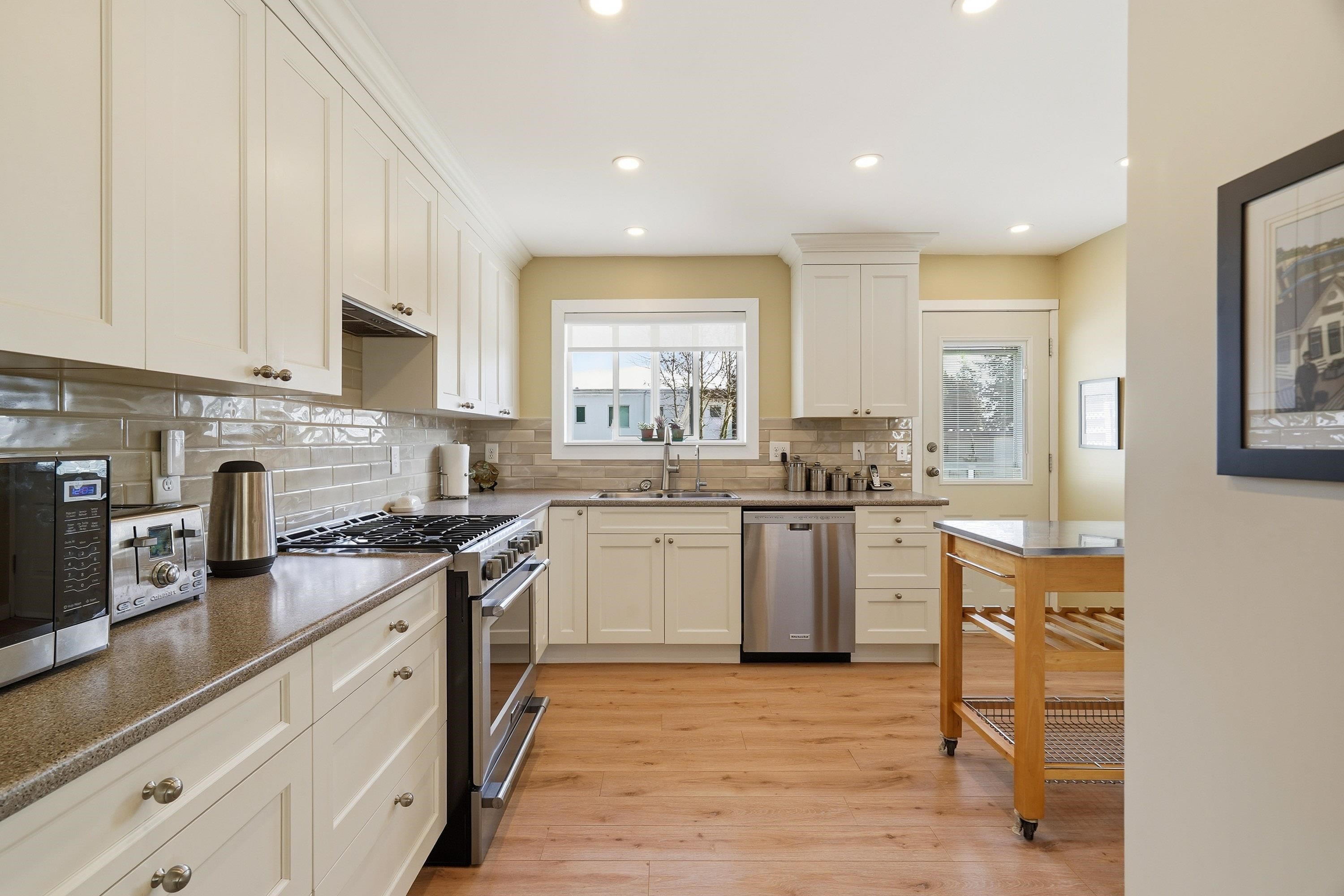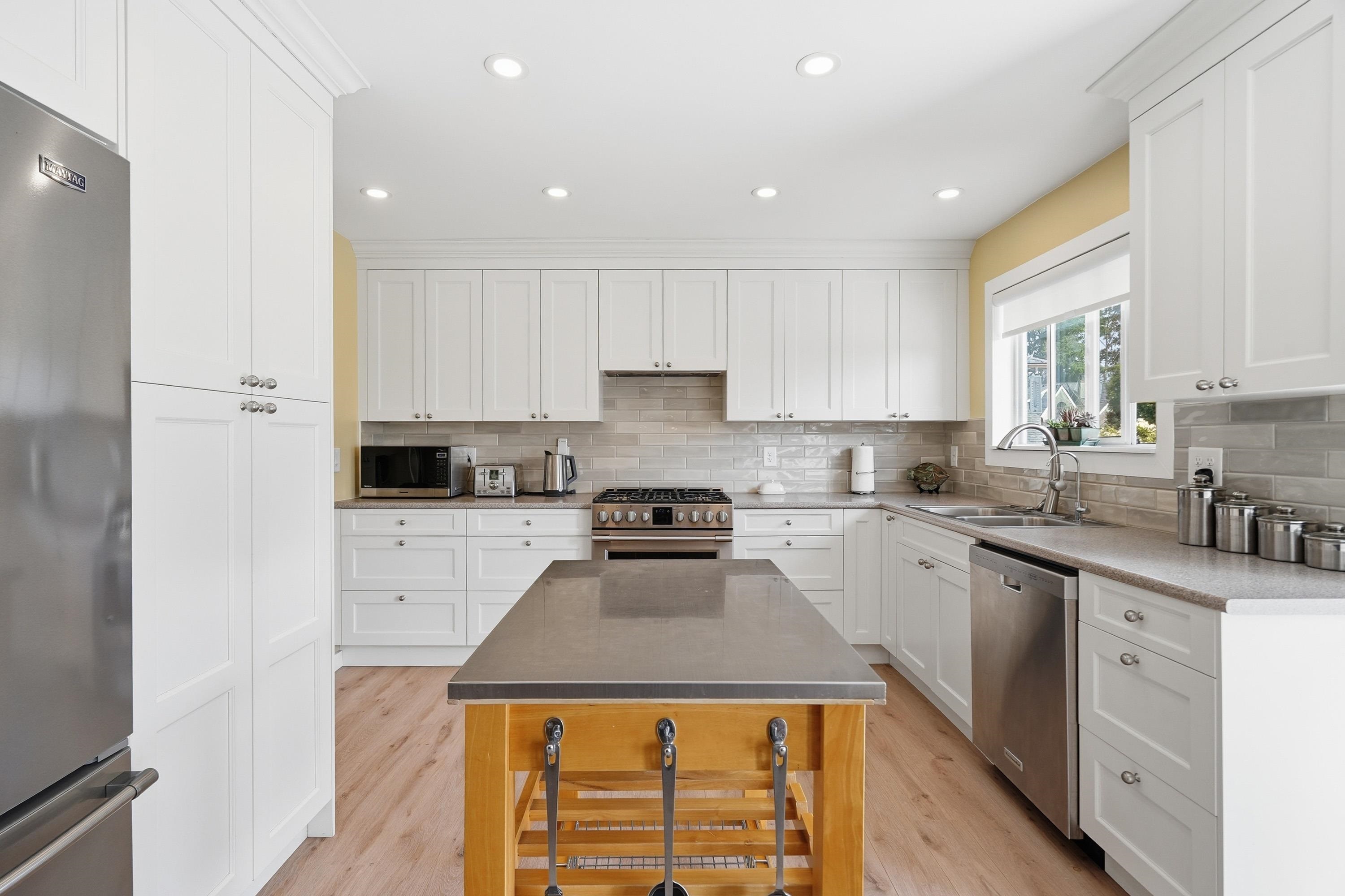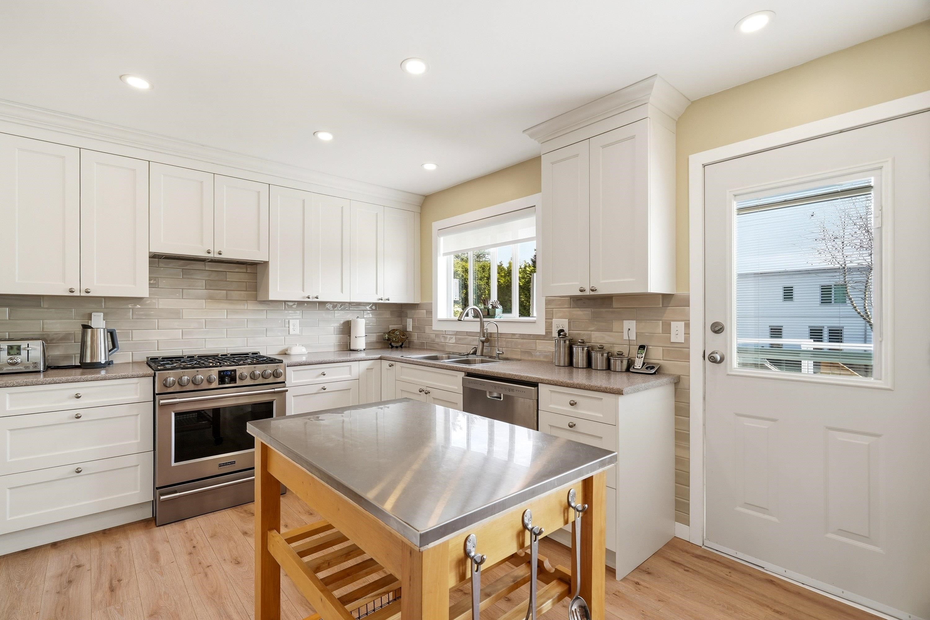 A Solid Investment- ideally located in Ocean Bluff & Semiahmoo school catchment. Zoned curr. to allow for up to 4 units (Small Scale Multi-Unit Housing )** Highly desirable WEST White Rock, super clean, 5 BDRM home that is spacious, airy & bright & has been tastefully renovated, lovingly maintained & shows 10/10. Loc. on quiet St., this FLAT, 8,107 SQ. FT. lot has loads of pot. w/new build. Home curr. boasts qual. Merritt Kitchen Cabinets & B/I buffet. Laminate floors, 2 gas fireplaces, big rec room( w/sepa...
