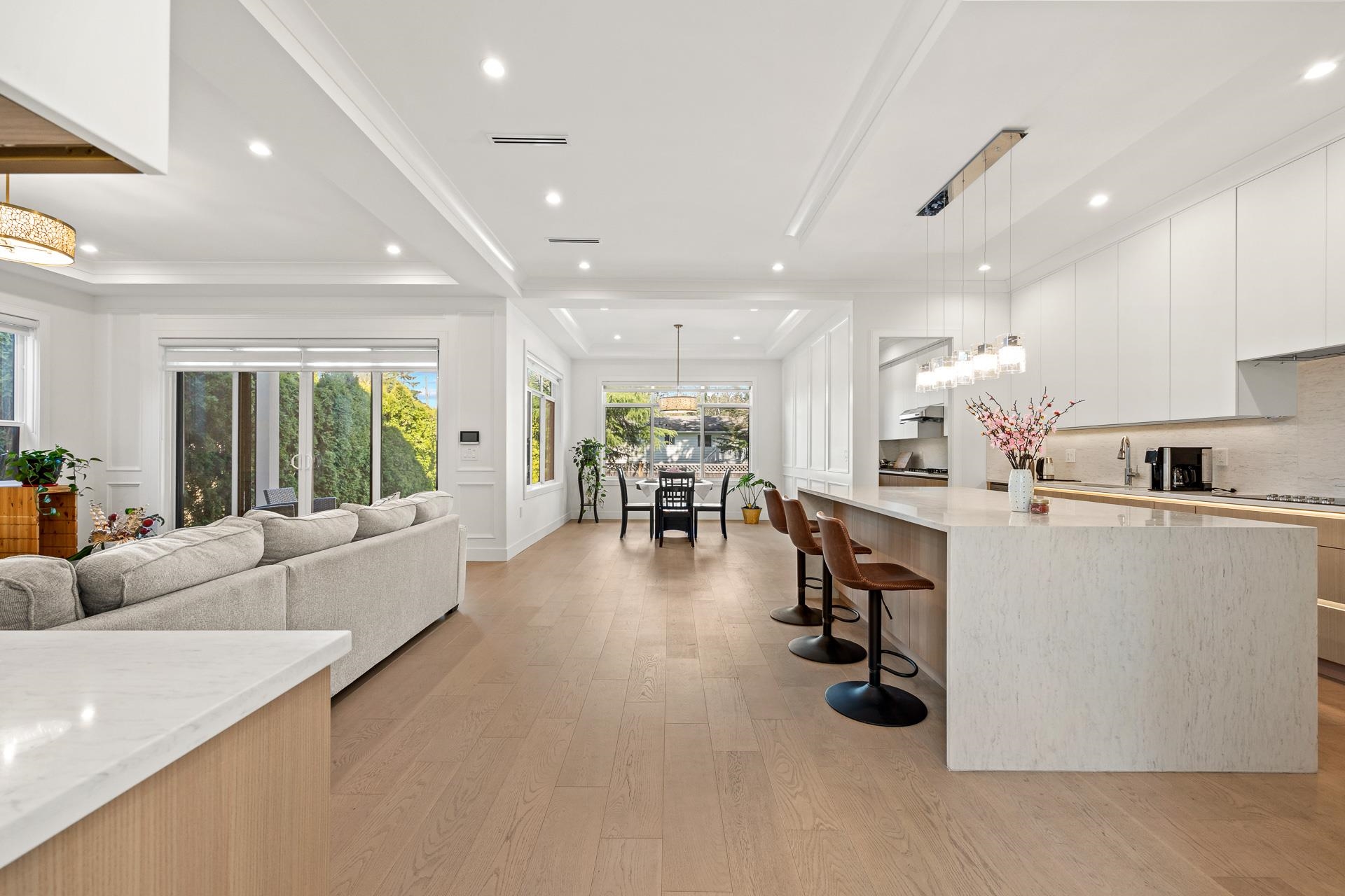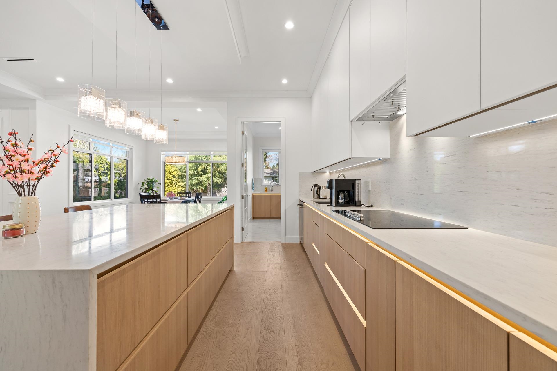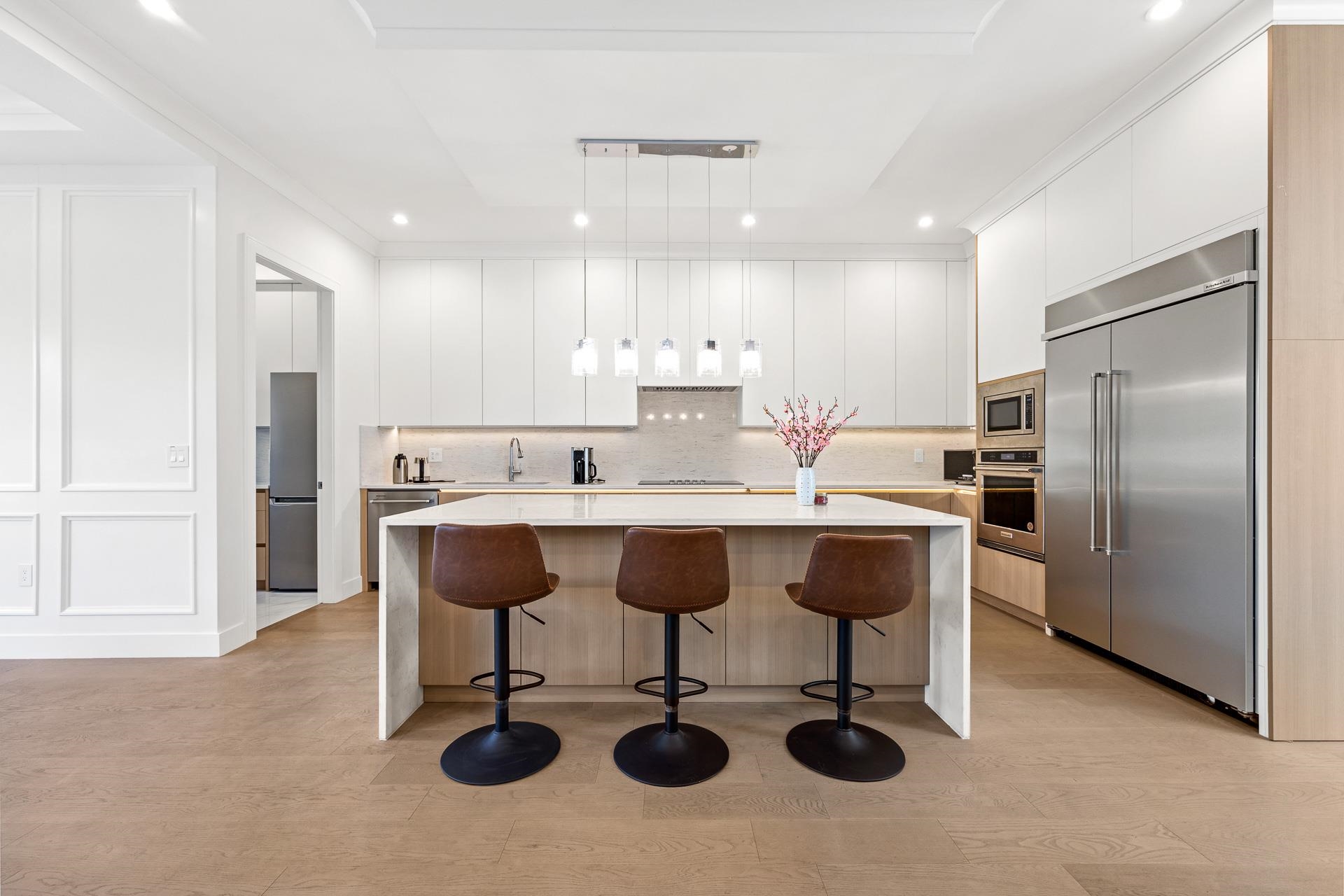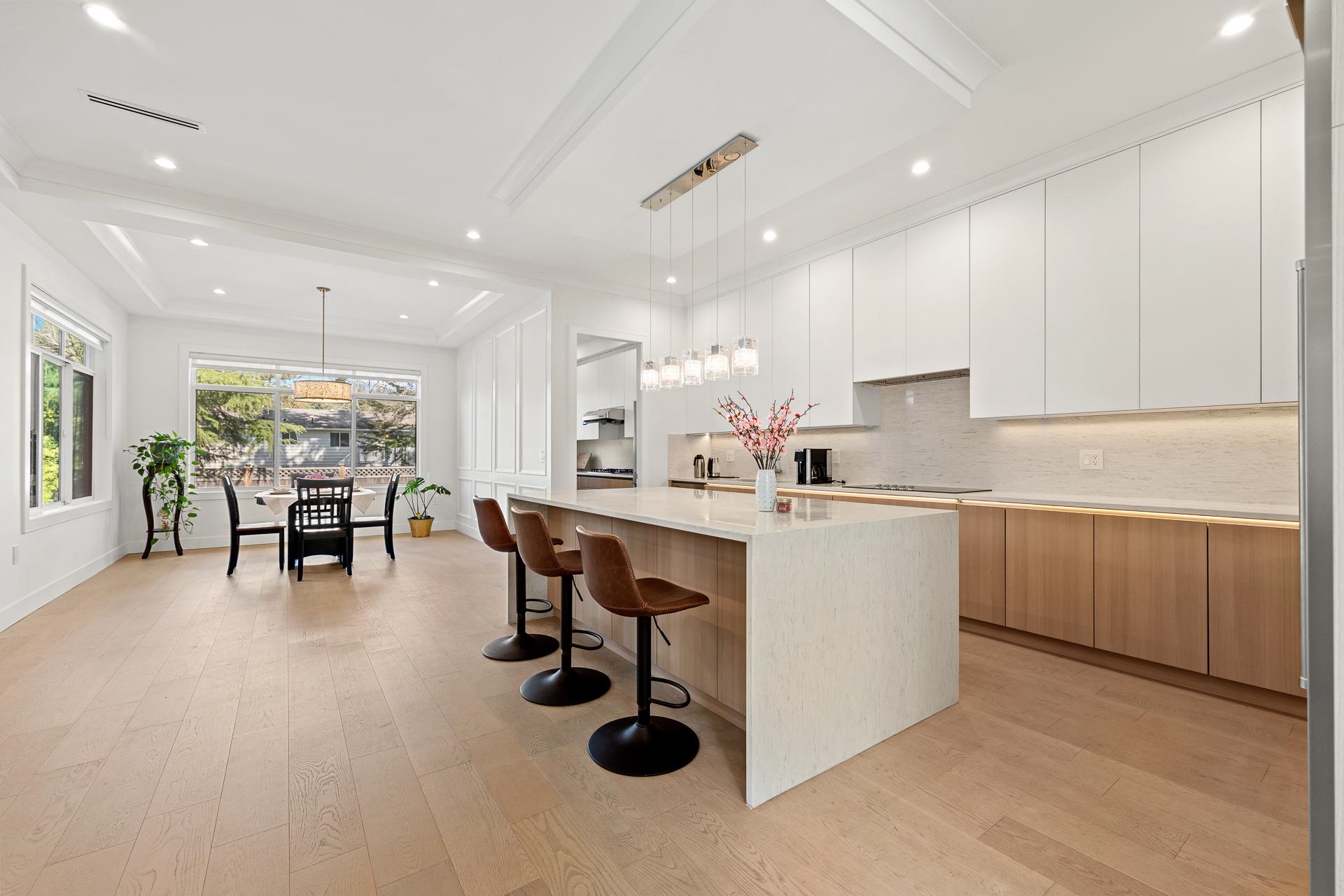 Extraordinary custom-built 6-bedroom, 6-bathroom home featuring a 2-bedroom legal suite. Nestled in a prime, amenity-rich South Surrey neighbourhood and boasting superior build quality. Enjoy engineered hardwood flooring on all levels, designer lighting, radiant heating, and air conditioning. The bright living room impresses with soaring 20' ceilings, creating a grand and open atmosphere. The stunning main kitchen & wok kitchen are complemented by an adjacent dining area and spacious family room, extending ...