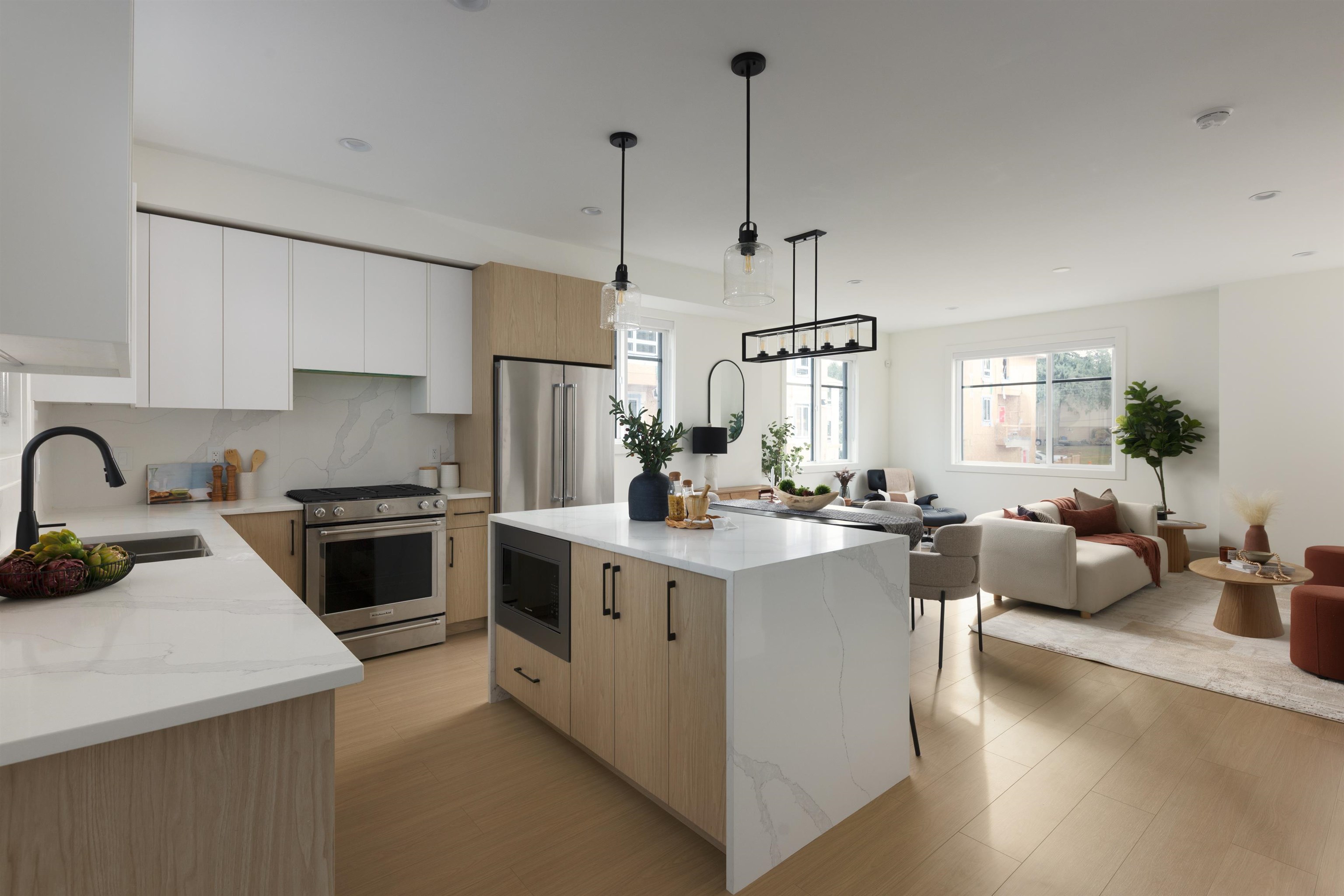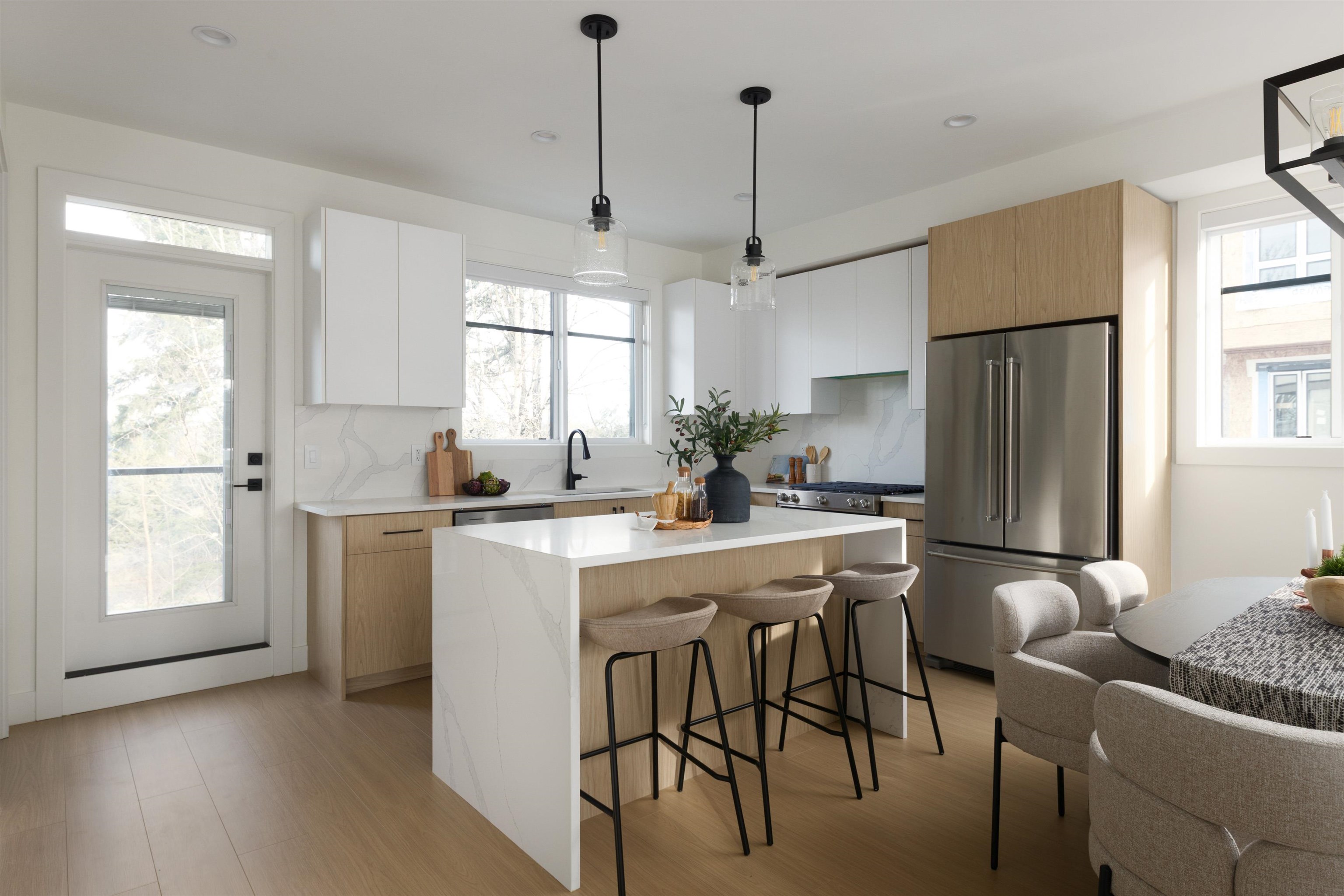 Experience contemporary living at Kings Crossing! This vibrant enclave of 20 townhomes is steps from Rogers Forum, UFV, and local eats. Our spacious 3 & 4 bedroom layouts feature over-height ceilings, oversized windows, and high-end finishes. Cook in style with a waterfall quartz island, custom cabinetry, and premium KitchenAid/Samsung appliances. Enjoy energy-efficient forced air heating/cooling with an included heat pump, plus a Level 2 EV-ready side-by-side garage. Relax in your spa-inspired ensuite with...