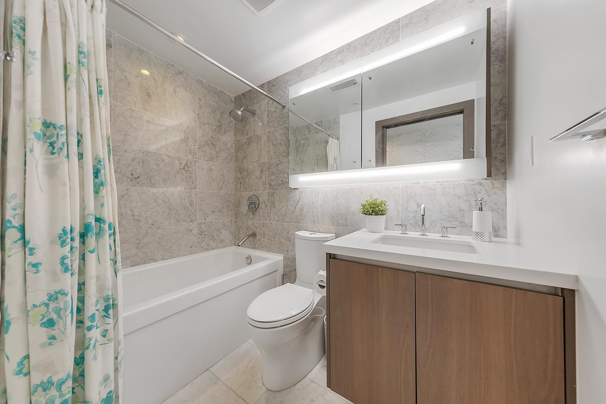 ALL furniture and built-ins included with home! This luxurious 2 Bed plus Den (with storage room) features an open floorplan w/elegant finishes, floor-to-ceiling windows, & a striking custom fireplace feature & tons of custom built-ins. The sleek kitchen is equipped with premium appliances & polished quartz countertops, while the den offers the perfect space for a home office or retreat. Residents enjoy world-class amenities including the iconic glass-bottom pool, hot tub, fitness centre, sky garden, & 24-...