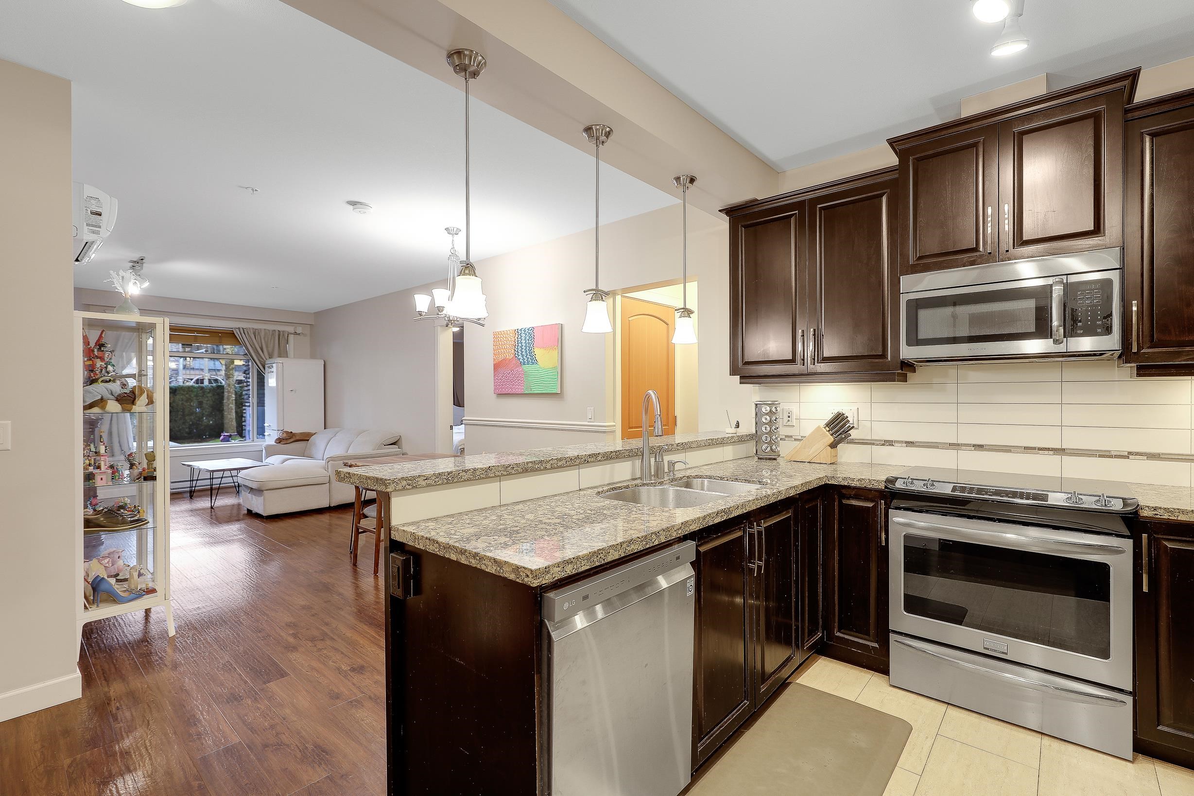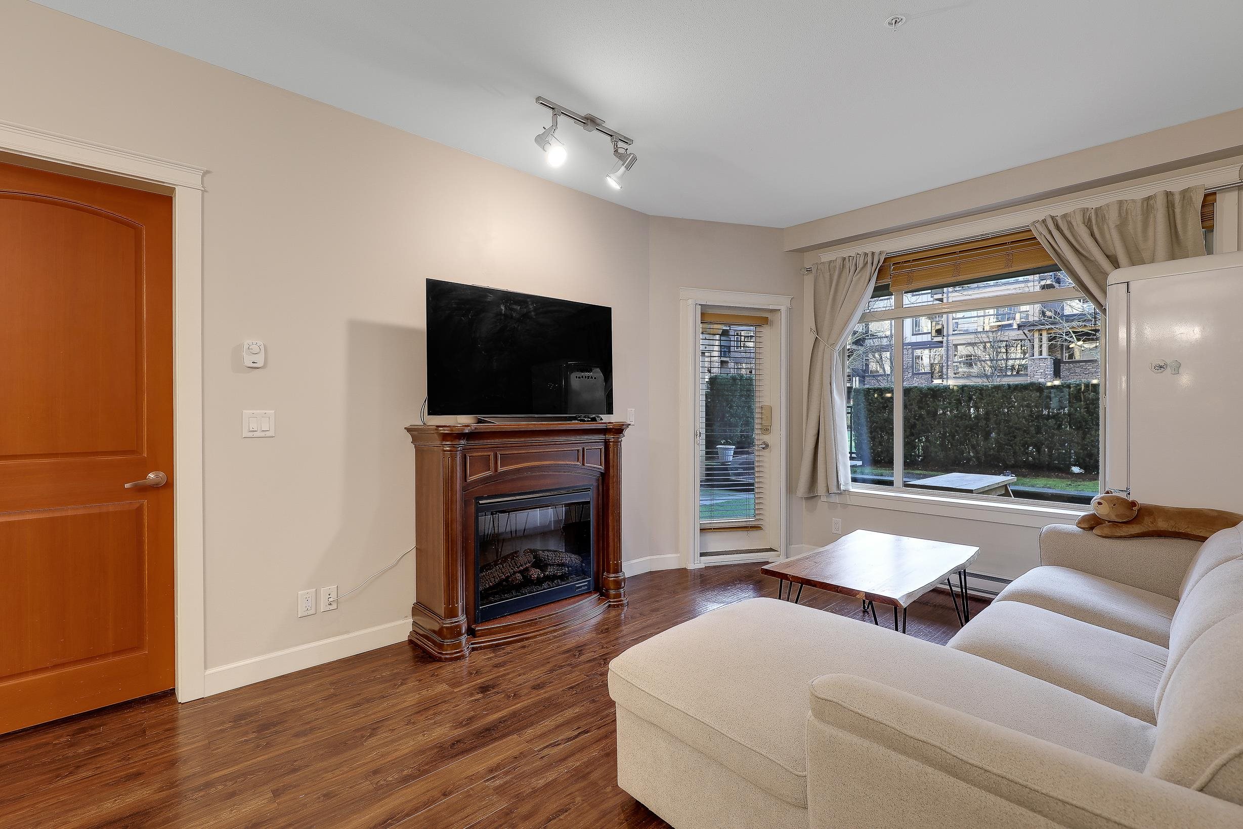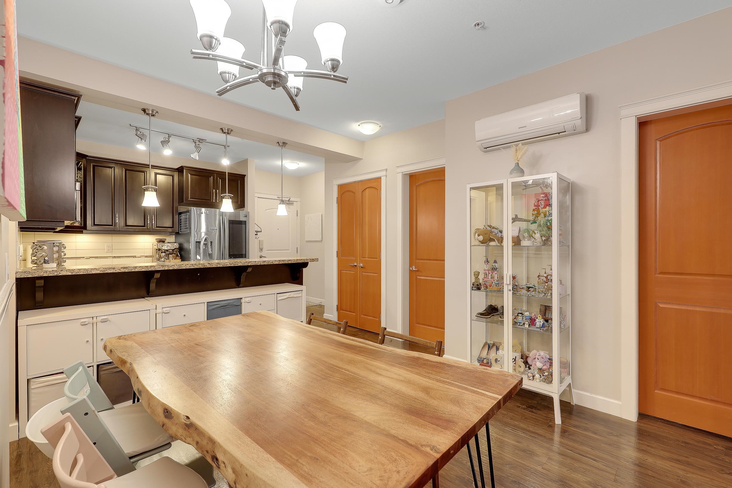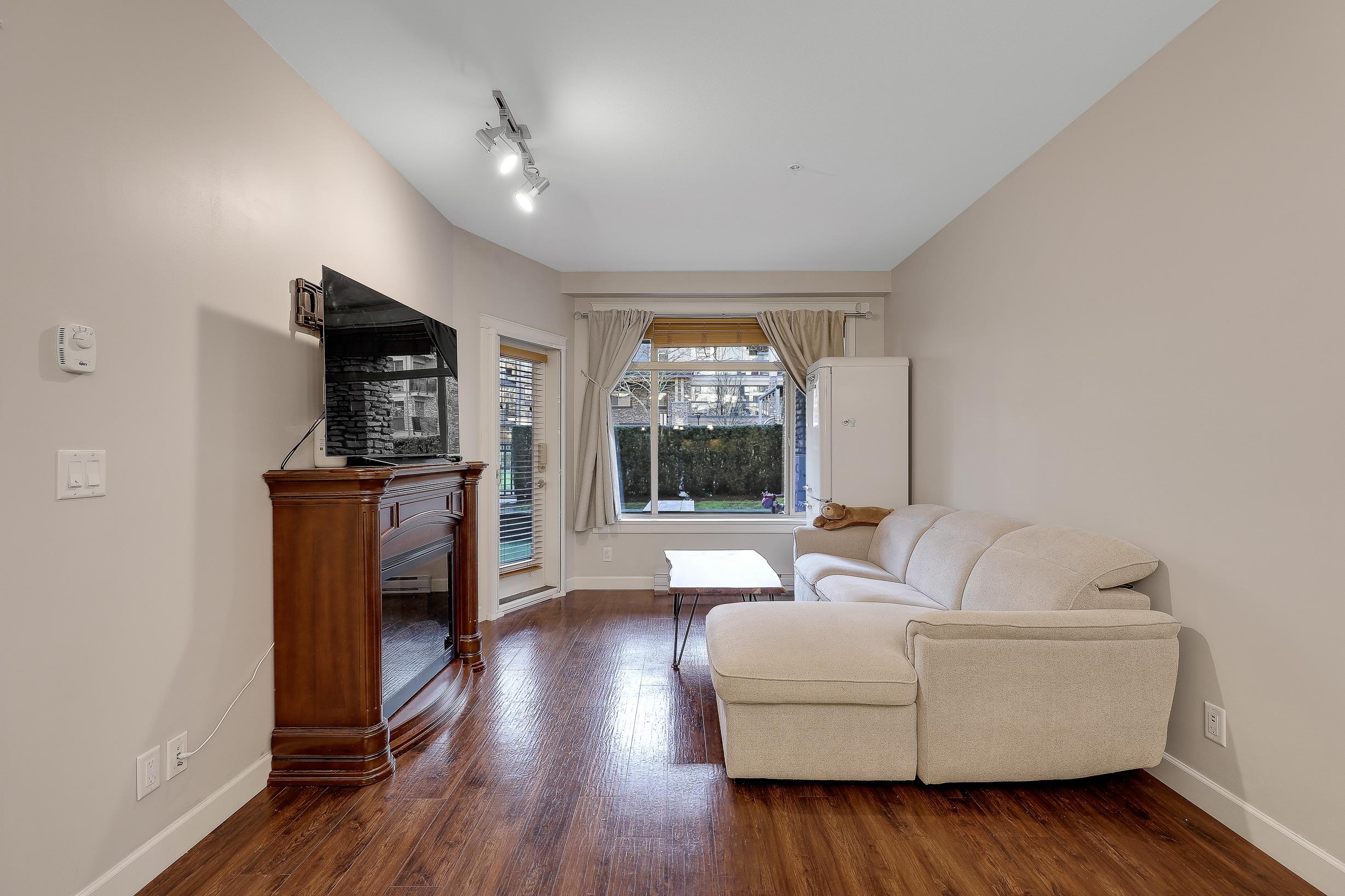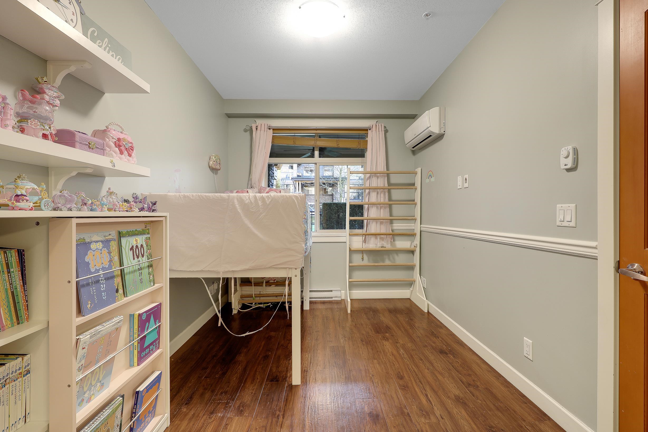 An ideal family home for young children, featuring direct access to a safe, fenced playground and a large patio! Spacious and bright south-facing ground-level 2 bedroom + DEN home (den can be used as a 3rd bedroom). Located in the fast-growing Willoughby Heights neighborhood, close to schools, shopping, restaurants, parks, Carvolth Rapid Bus, and easy highway access. Excellent layout with bedrooms on opposite sides for added privacy. Features include built-in A/C, laminate flooring throughout, granite count...