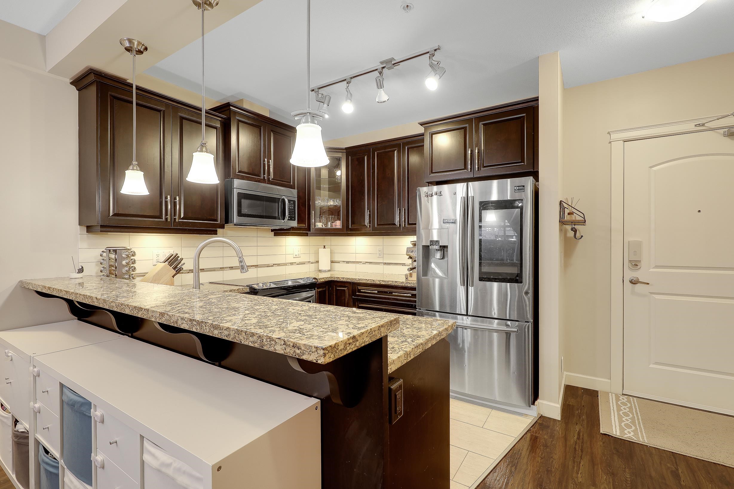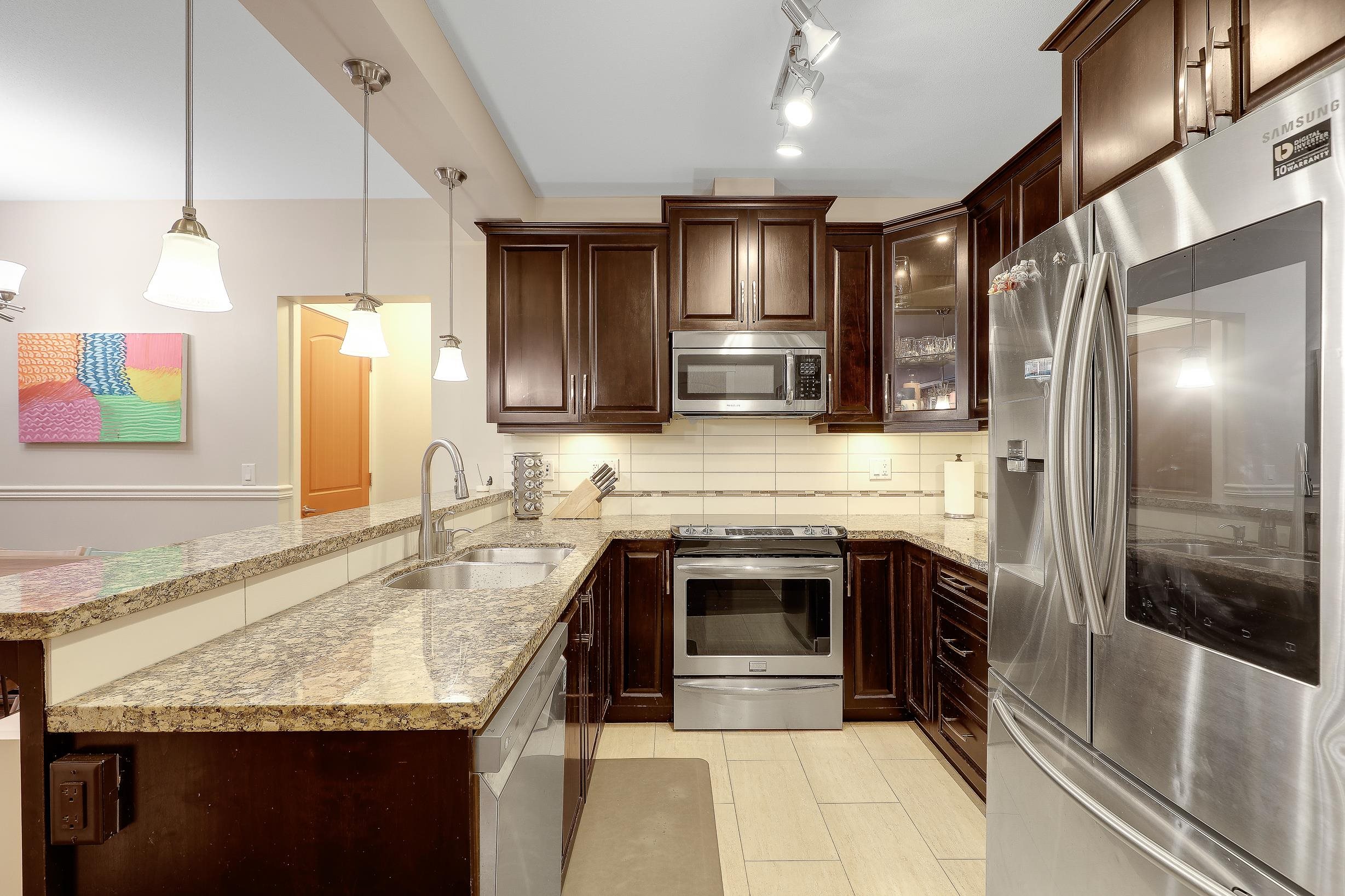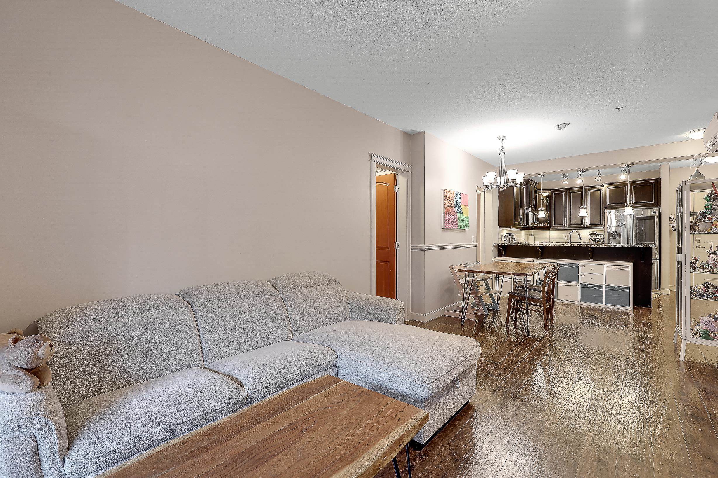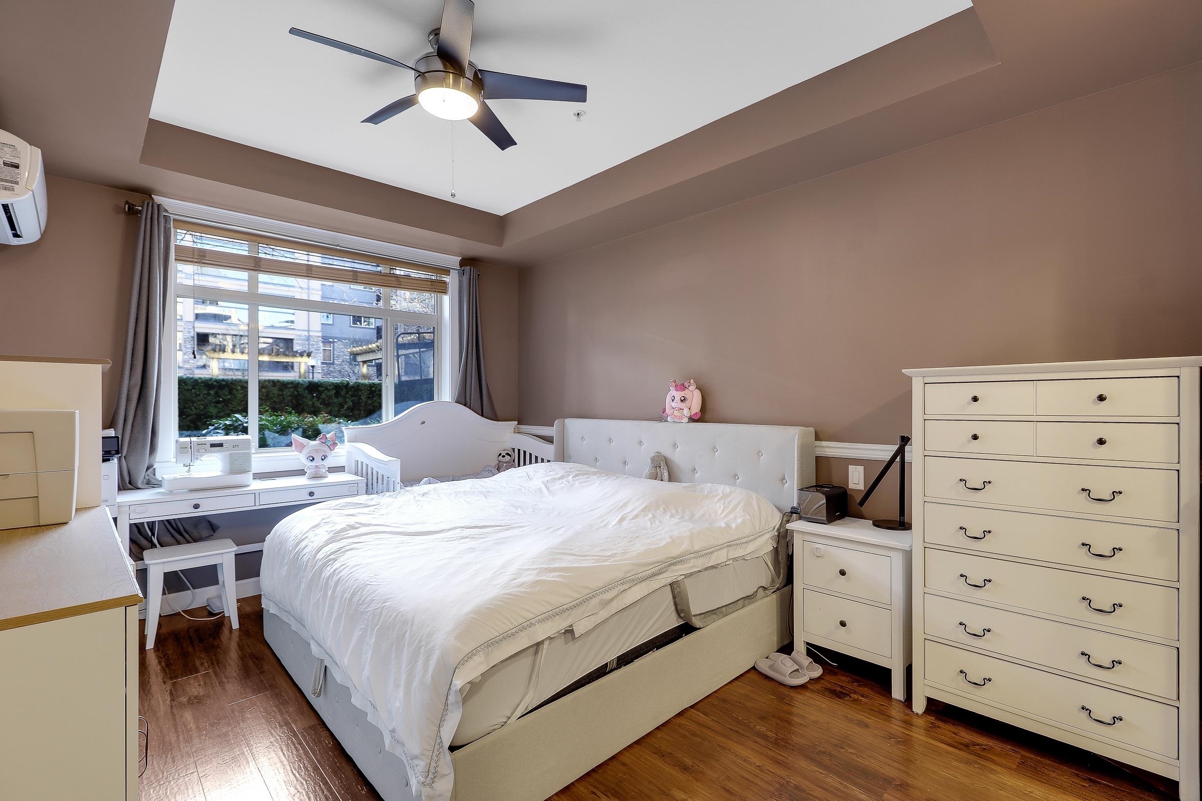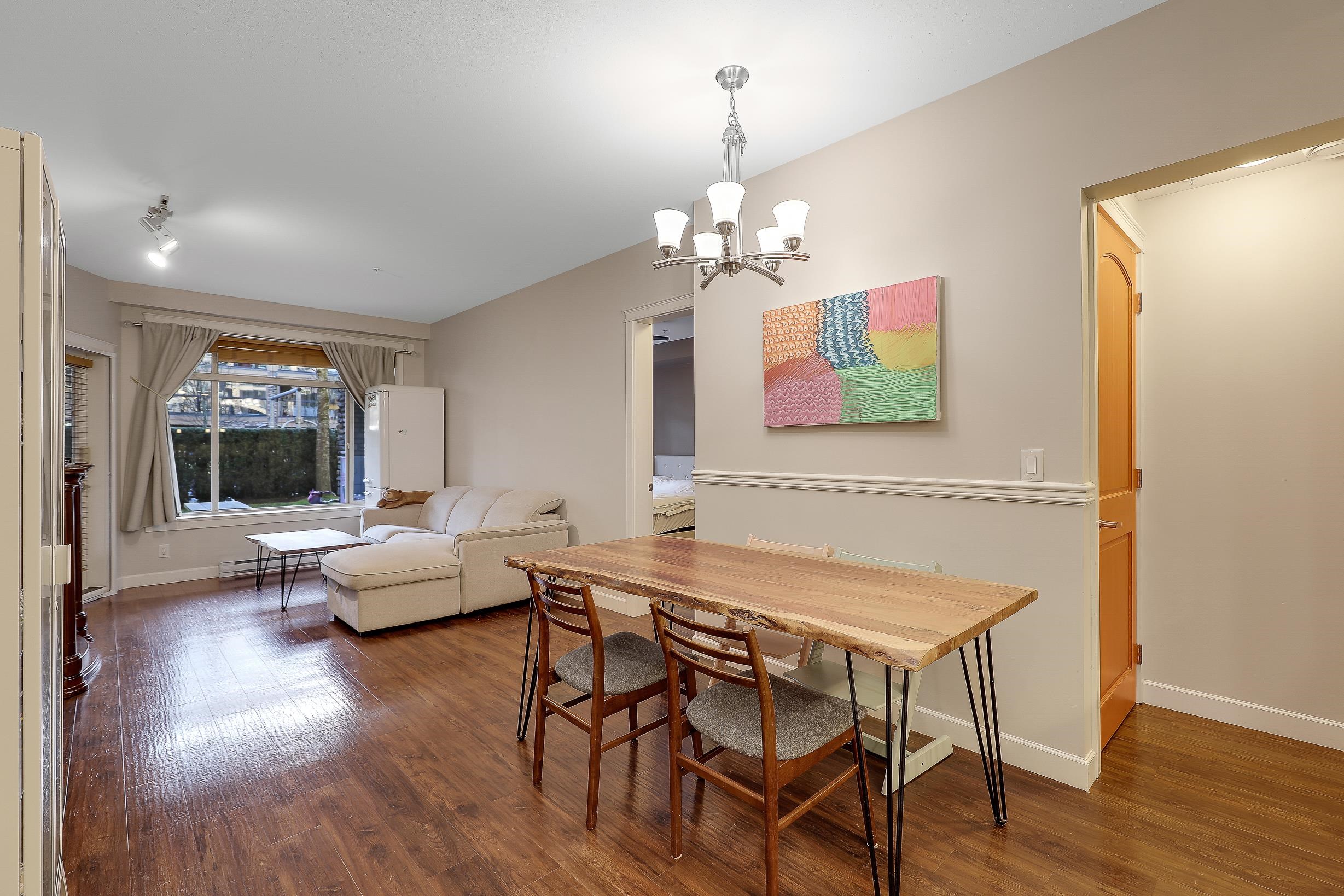 An ideal family home for young children, featuring direct access to a safe, fenced playground and a large patio! Spacious and bright south-facing ground-level 2 bedroom + DEN home (den can be used as a 3rd bedroom). Located in the fast-growing Willoughby Heights neighborhood, close to schools, shopping, restaurants, parks, Carvolth Rapid Bus, and easy highway access. Excellent layout with bedrooms on opposite sides for added privacy. Features include built-in A/C, laminate flooring throughout, granite count...