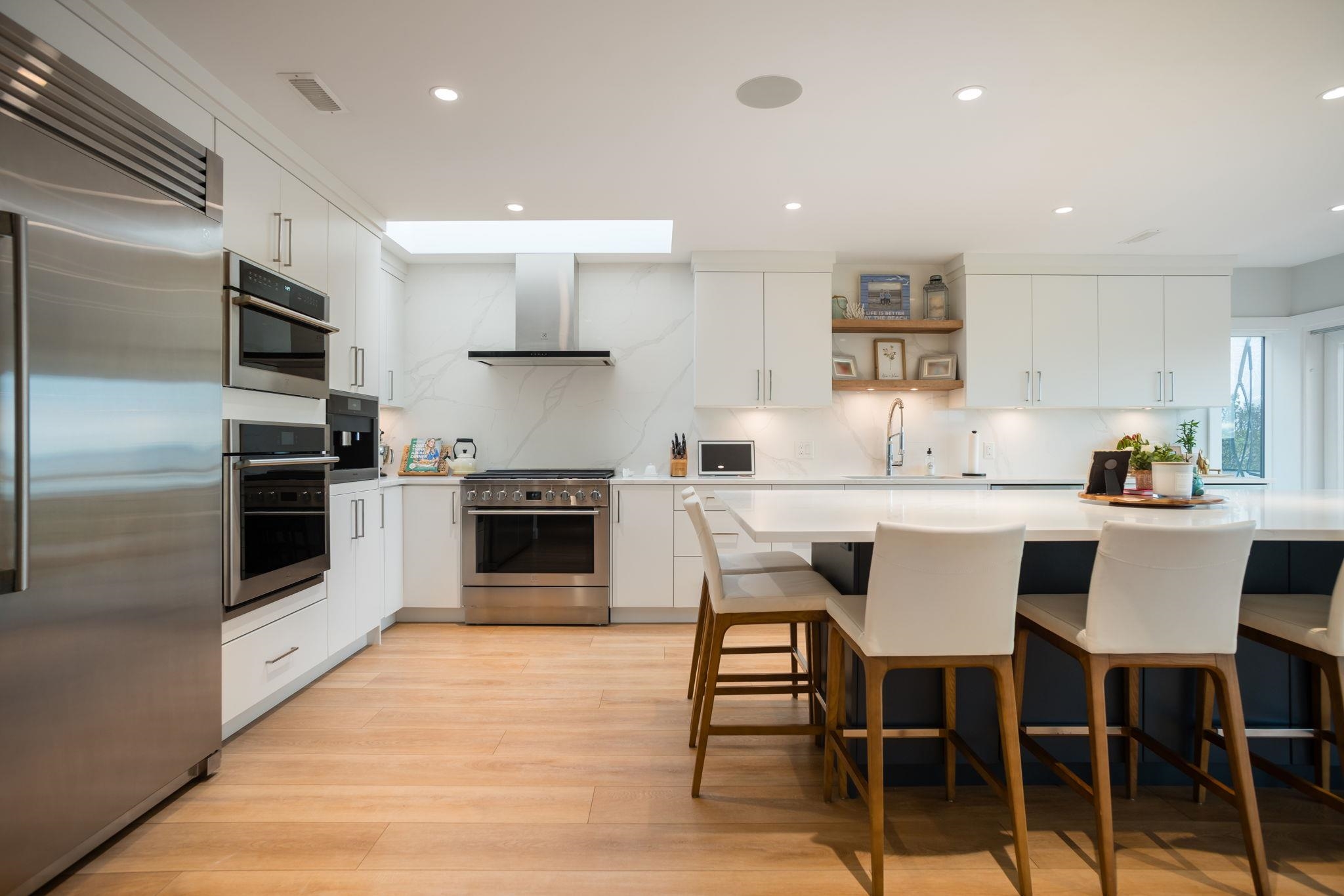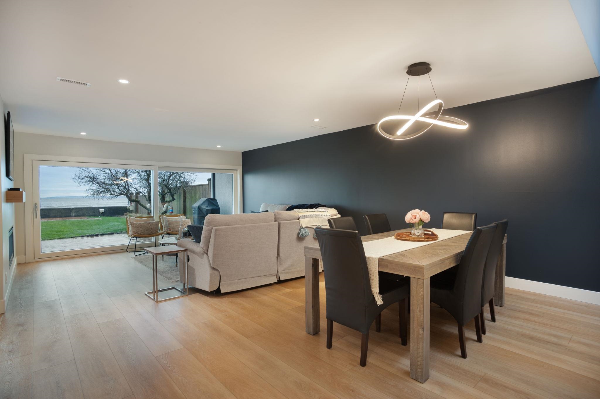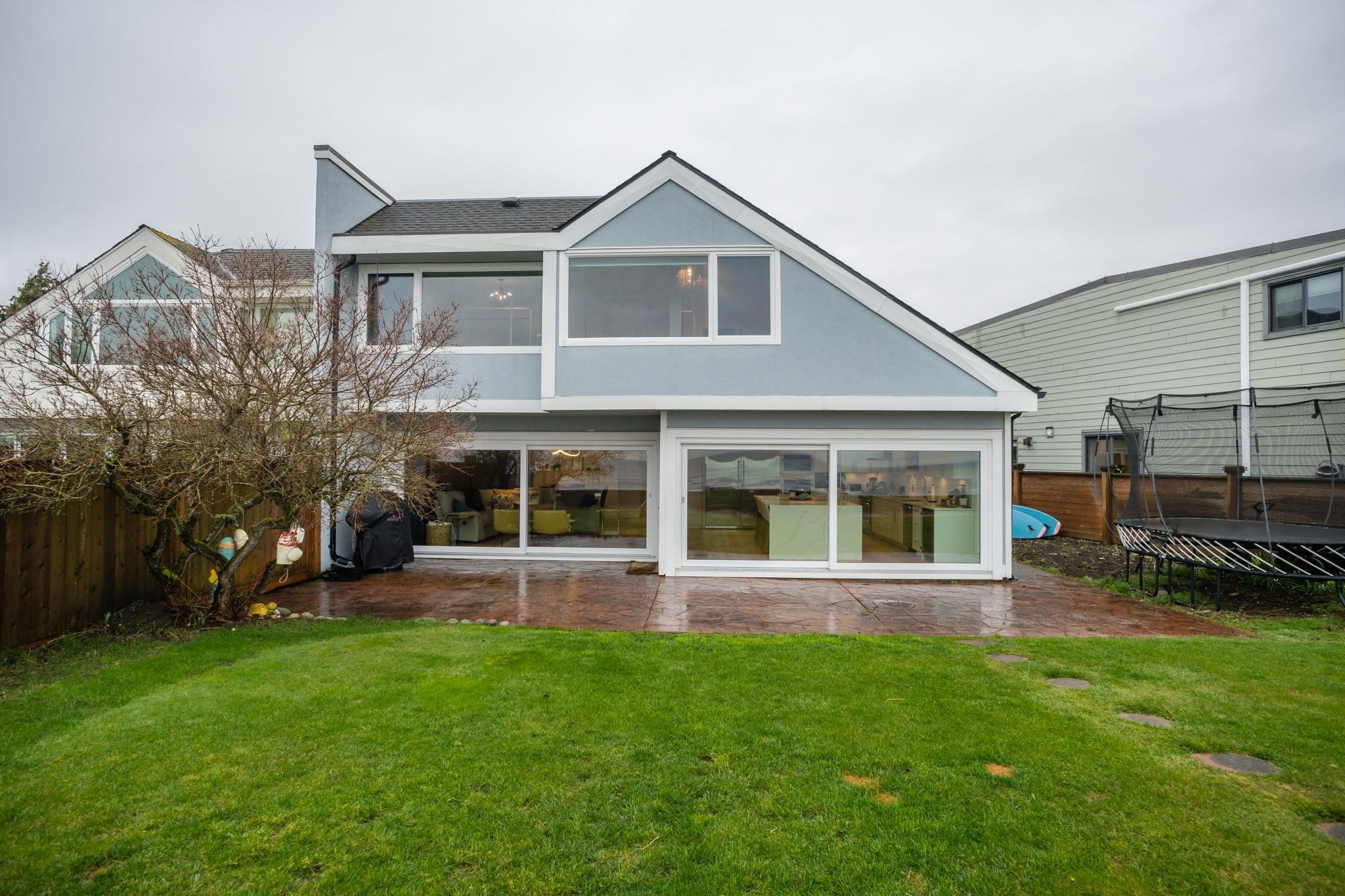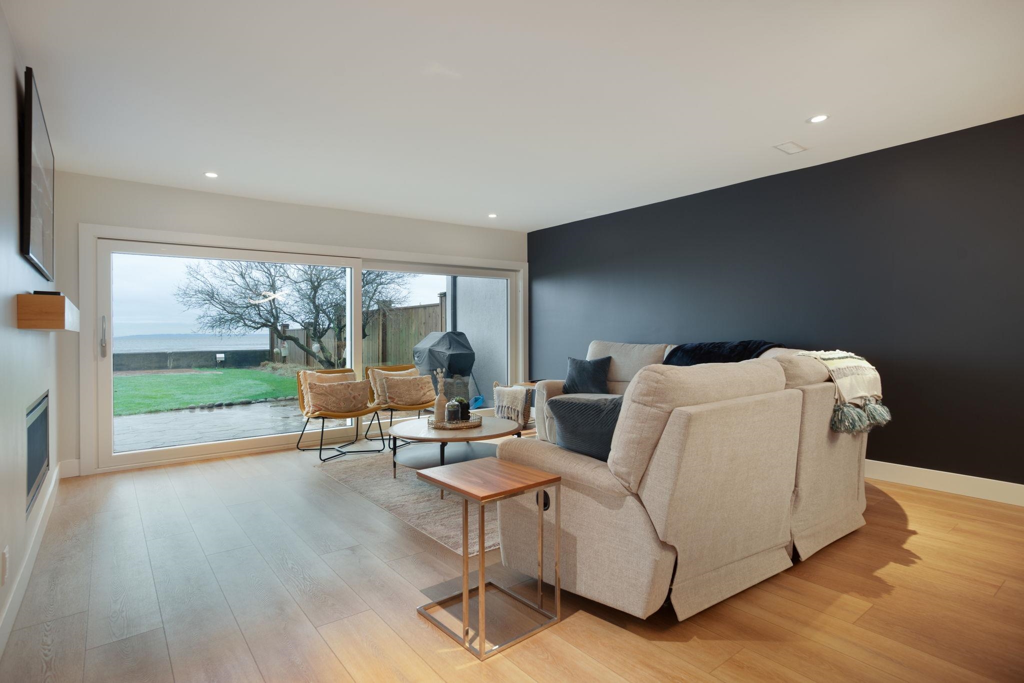 BEACH GROVE WATERFRONT! Welcome to this exceptional & rarely available semi-attached beachside residence offering 2947 sq ft of refined coastal living. This thoughtfully designed 3 Bed + Rec Room, 3 Bath home was tastefully renovated in 2022 allowing for full enjoyment of the unobstructed ocean & mountains views. Primary Bed on the main floor along w/ 2 Bedrooms & the Rec.Room upstairs, this home features a beautifully appointed brand new kitchen, double sided gas fireplace & massive soft close sliding glas...
