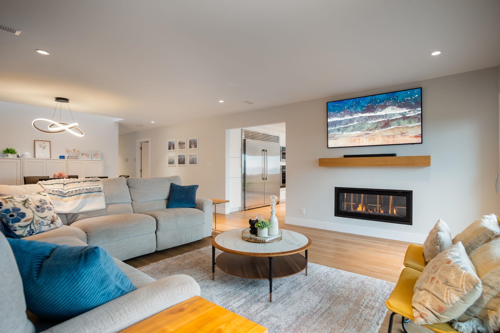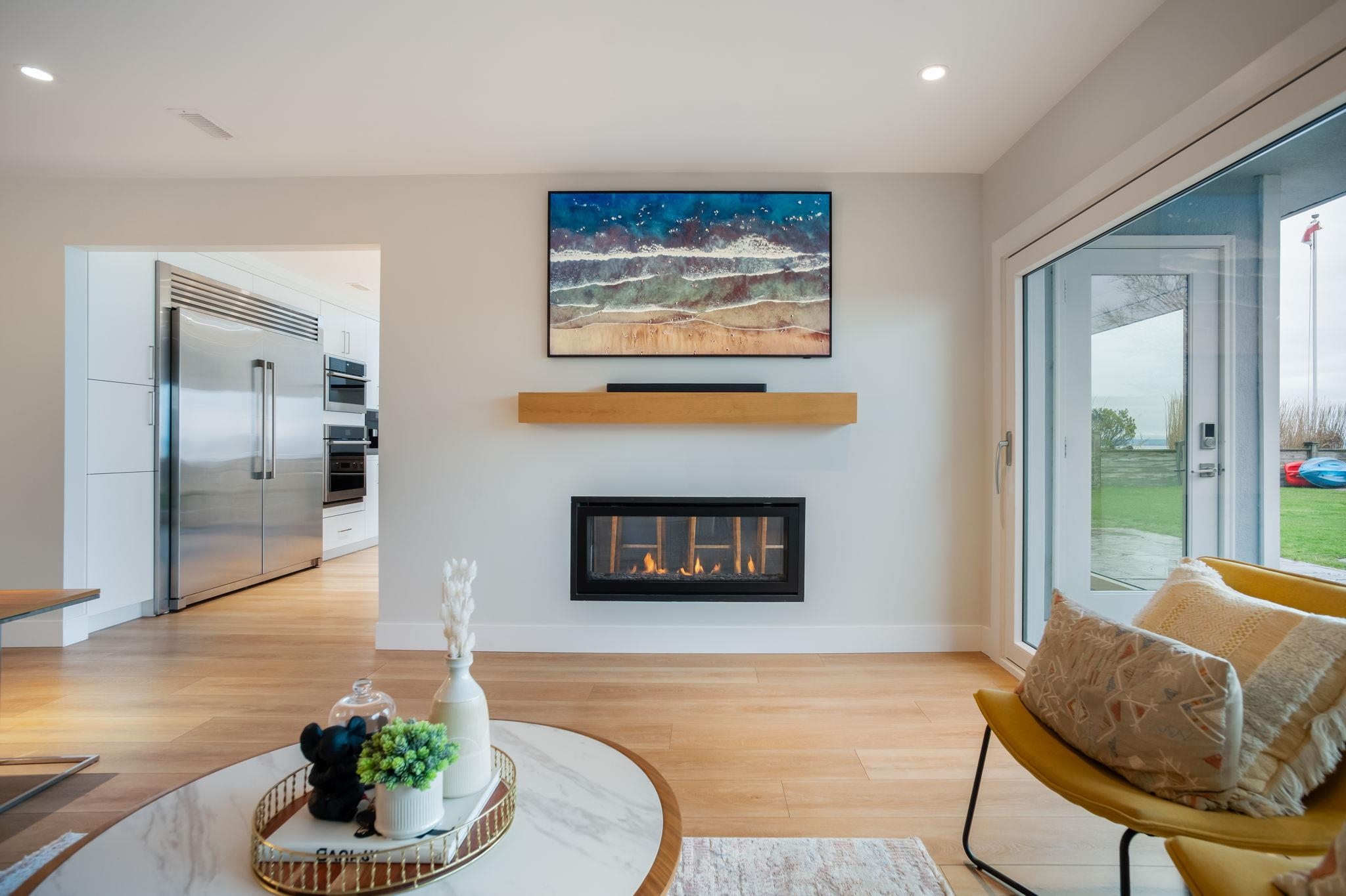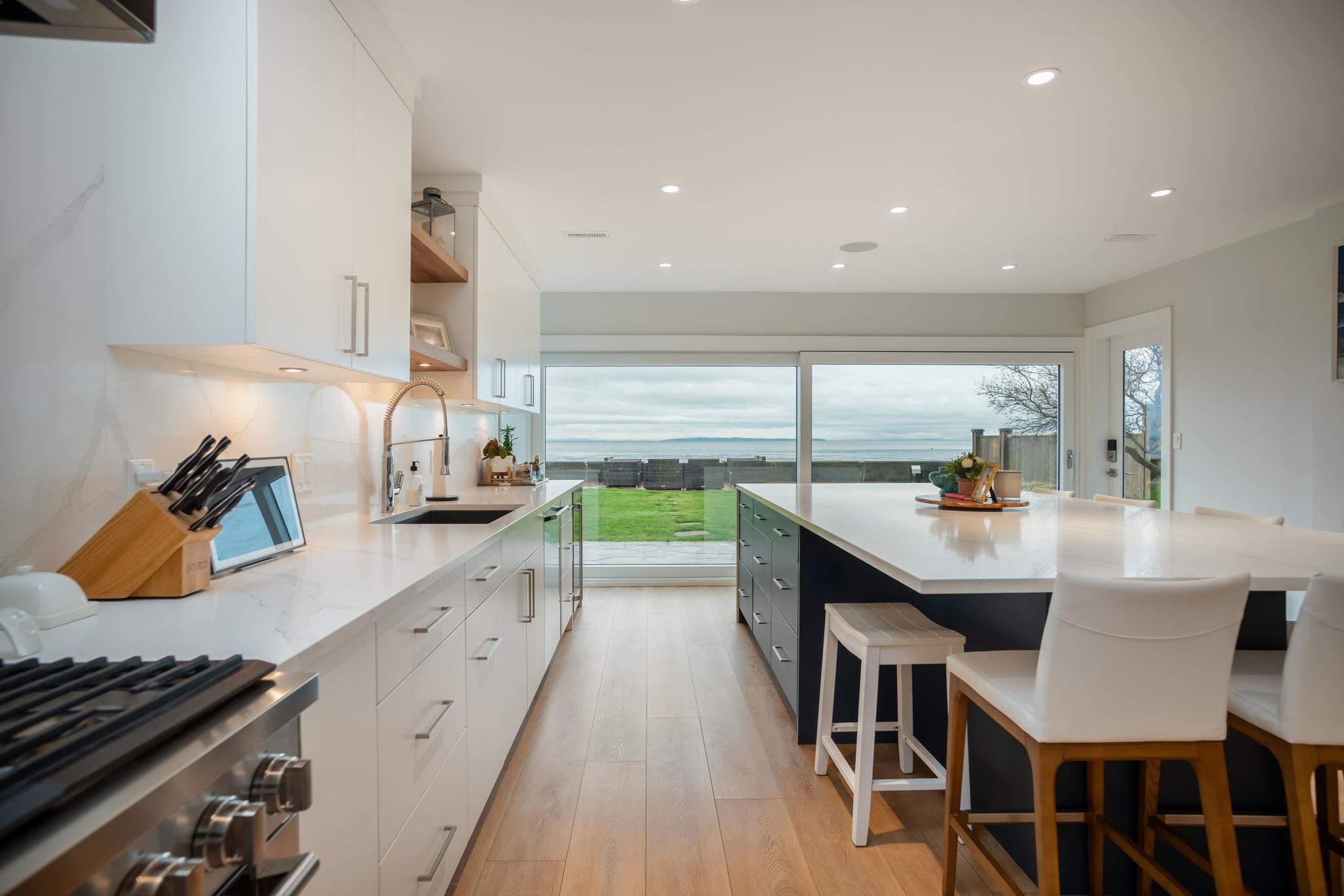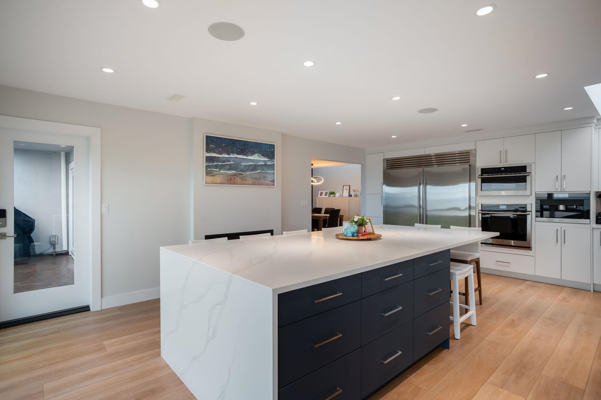BEACH GROVE WATERFRONT! Welcome to this exceptional & rarely available semi-attached beachside residence offering 2947 sq ft of refined coastal living. This thoughtfully designed 3 Bed + Rec Room, 3 Bath home was tastefully renovated in 2022 allowing for full enjoyment of the unobstructed ocean & mountains views. Primary Bed on the main floor along w/ 2 Bedrooms & the Rec.Room upstairs, this home features a beautifully appointed brand new kitchen, double sided gas fireplace & massive soft close sliding glas...