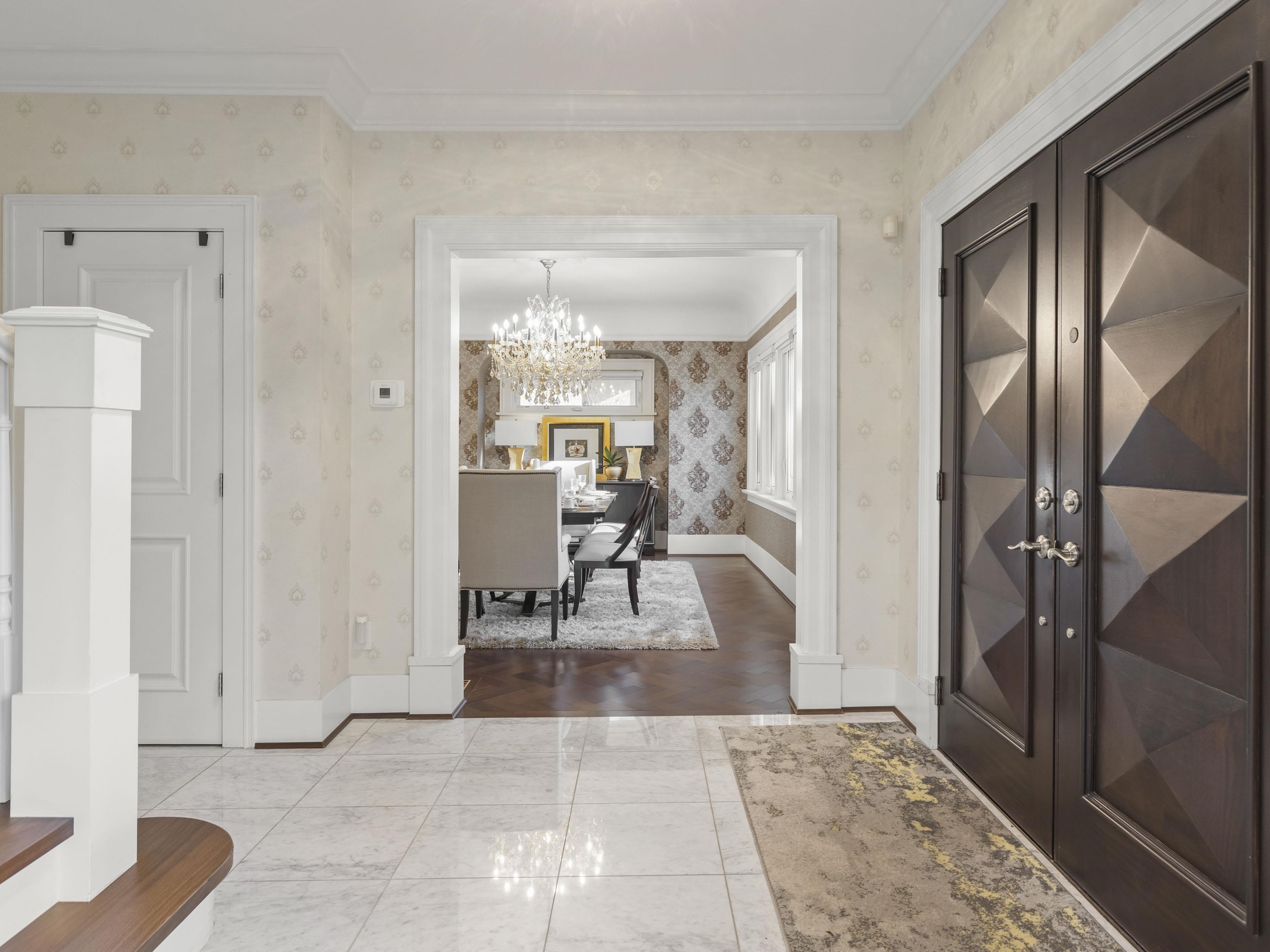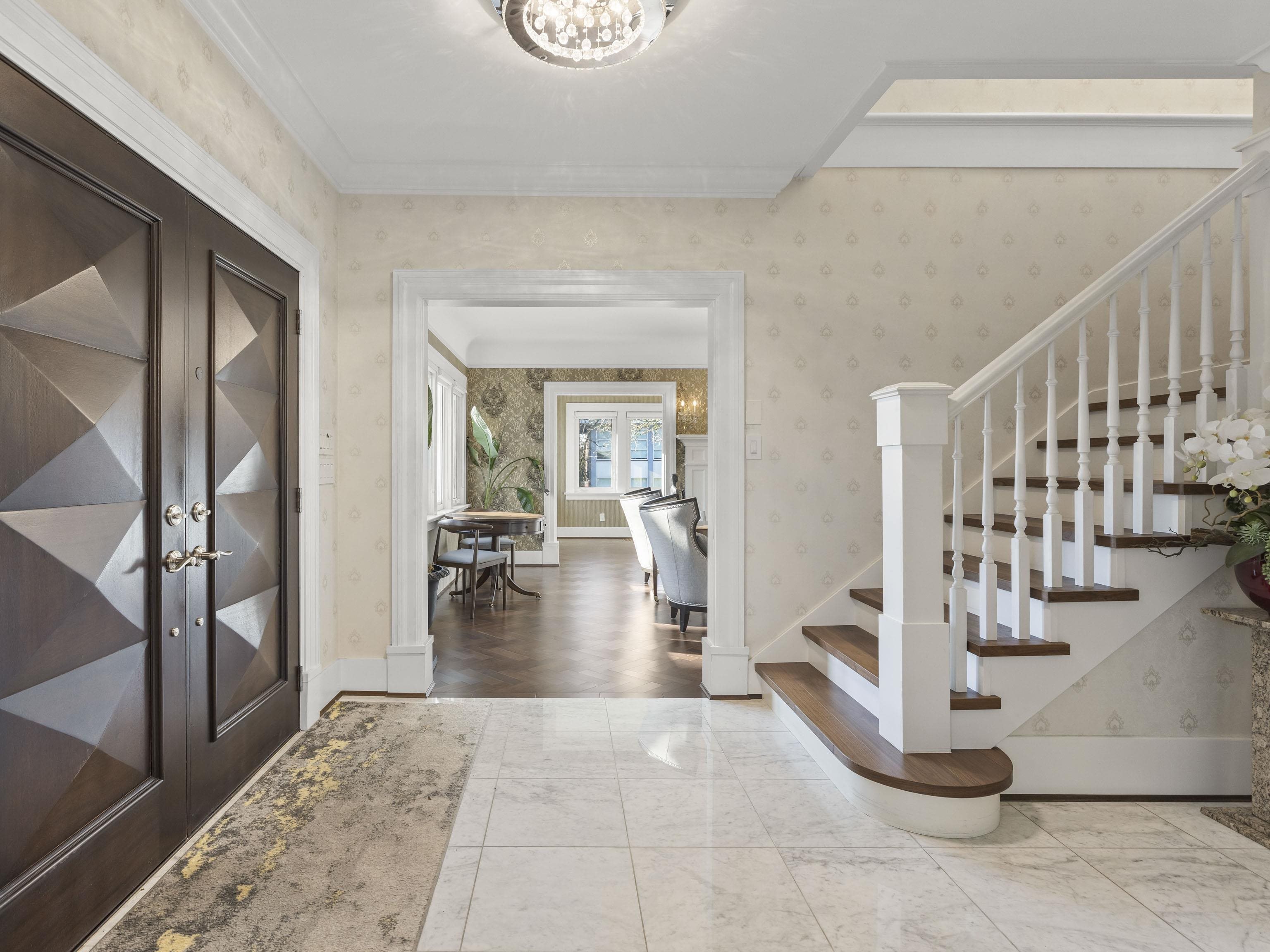 Nestled within the prestigious enclave of Shaughnessy, this magnificent Georgian-style residence boasts timeless architecture and contemporary sophistication. Meticulously renovated w/ Italian marble tiles, Herringbone floors, and designer light fixtures, A/C & more. This bright 4,867 sqft home has 6 beds and 5.5 baths, situated on a 8972.5 sqft CORNER lot. Main floor features spacious rooms w/designated living, family, dining rooms, arched piano hall, study, & den. Gourmet kitchen w/ SubZero & Miele applia...