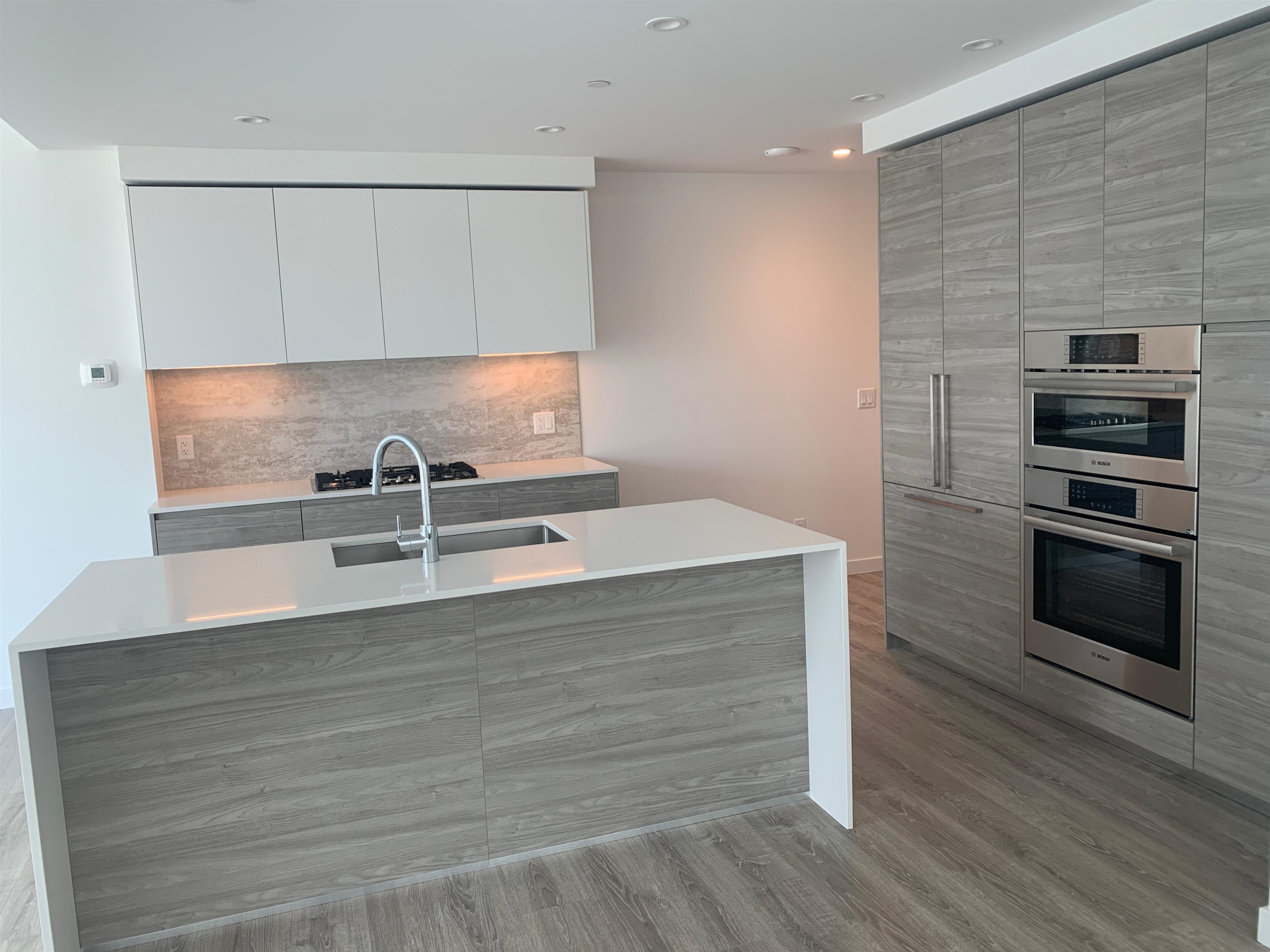 Welcome to this Iconic Waterfront Development. Stunning 2 Bed 2 Bath unit with unobstructed views of the Fraser River. This unit features floor-to-ceiling sound-proof windows, A/C, and premium finishes throughout. The kitchen is equipped with Bosch appliances including a gas cooktop stove & waterfall countertops. Both bedrooms offer generous closet space and natural light, including a walk-in closet in the master bedroom. The bathrooms showcase modern tiling, Nu-heat heated floors, and a beautiful glass-e...