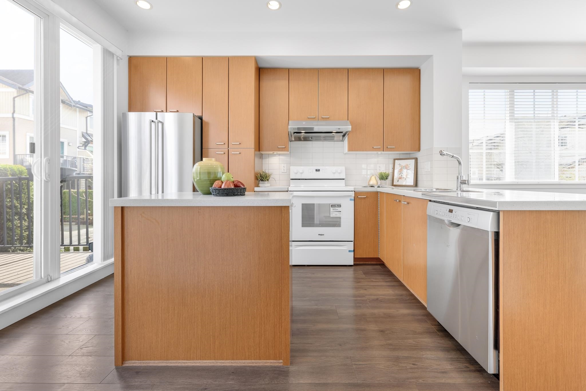 GLENMORE – Bright, spacious, 3bd/3ba 1,351sf corner unit in the heart of Morgan Heights. High ceilings and large south, east and west facing windows fill the home with natural light. Main level features a convenient powder rm, kitch w/ solid quartz cntrs, and newly updated stainless appl’s. Upstairs includes laundry and three bdrms, highlighted by a generous primary with spa-style ensuite. Relax on your private deck or in the fenced bkyd. Resort-style amenities include outdoor pool, hot tub, floor hockey ri...
