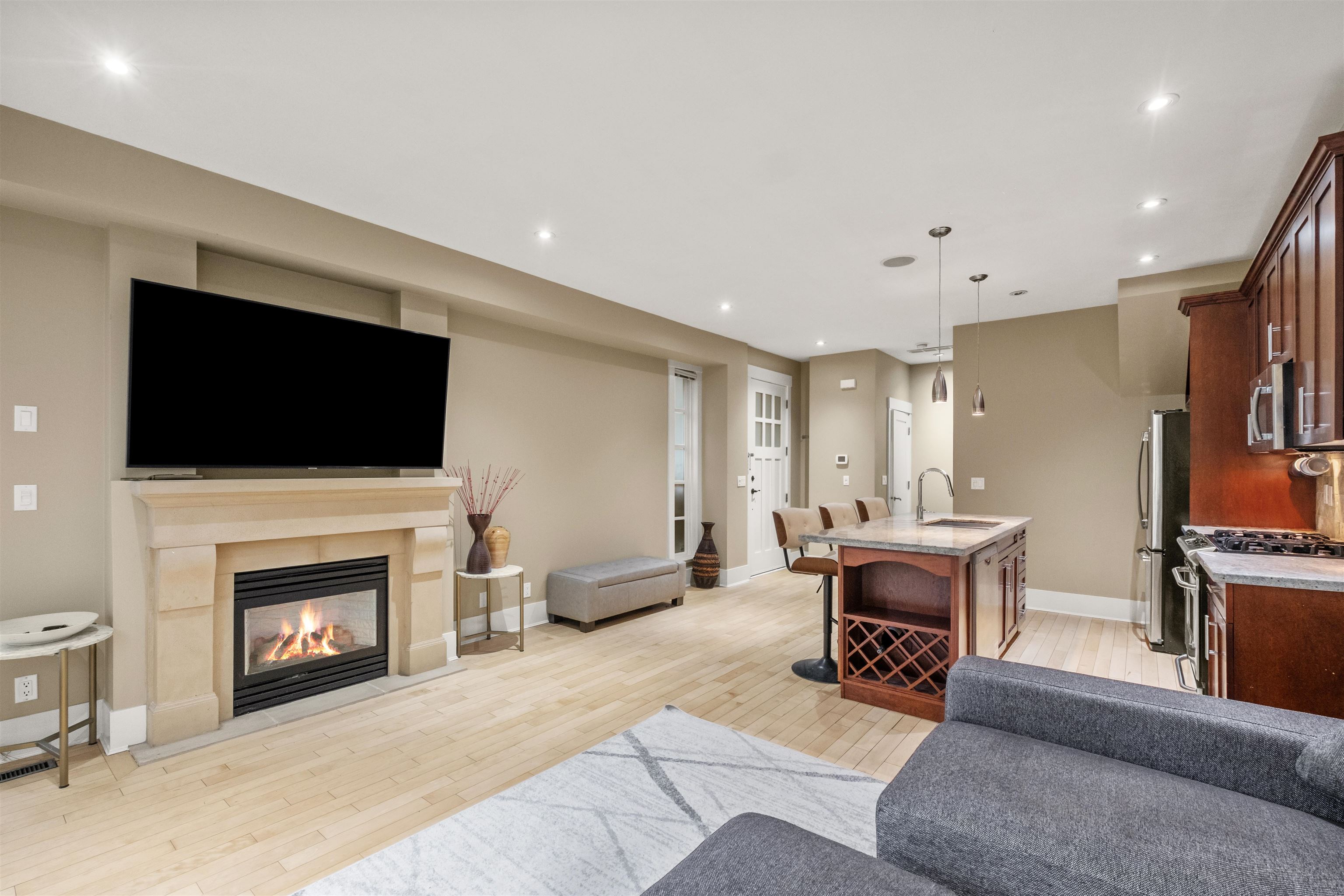 Non-conforming strata triplex with no strata fees! Built in 2007, this meticulously crafted Craftsman-style townhome in Central Lonsdale offers 1,552sqft across three spacious levels. The main floor features 9' ceilings, a gourmet kitchen with granite counters, breakfast bar, stainless steel appliances, and a gas stove, flowing into an open dining and living area with a cozy gas fireplace. A powder room and private patio with secure backyard, plus a single-car garage off a quiet lane. Upstairs, vaulted ceil...