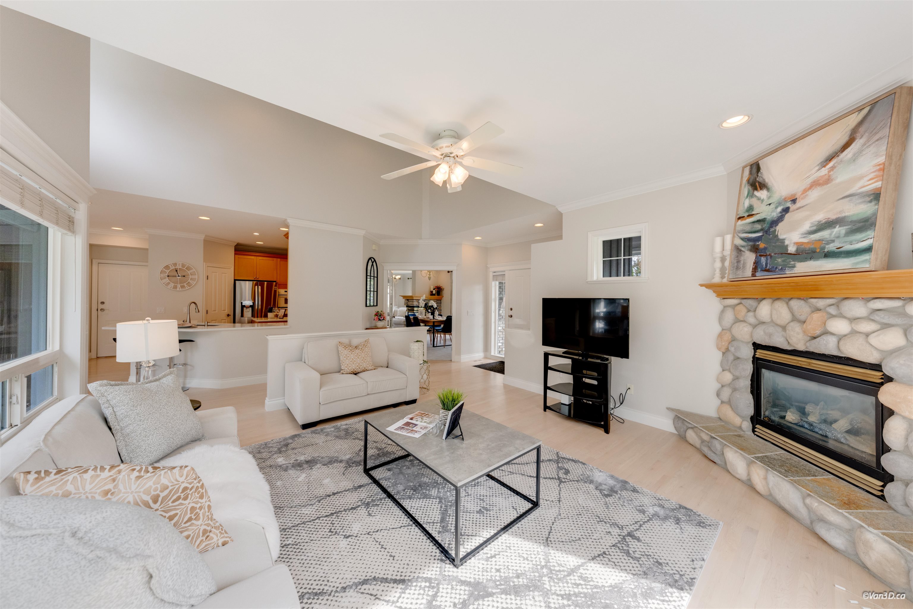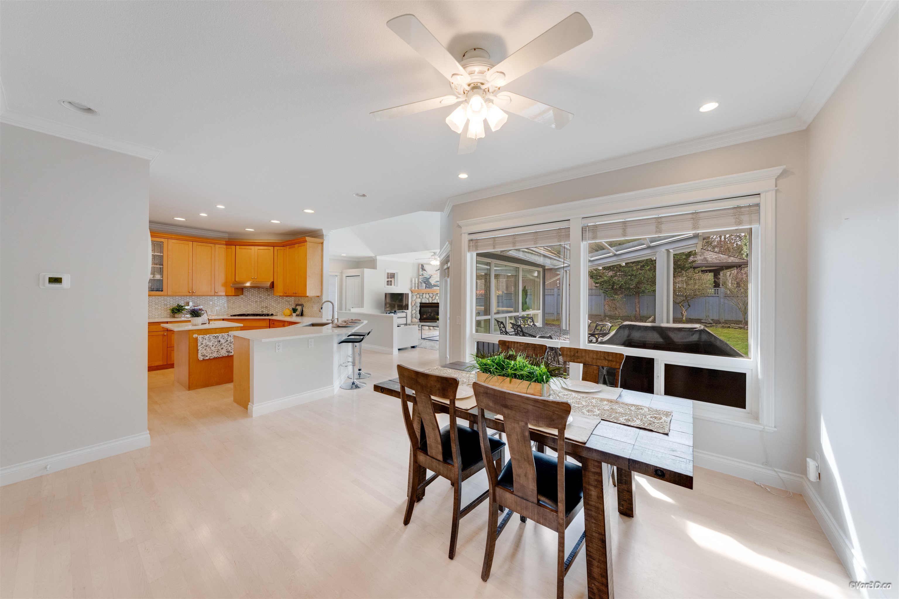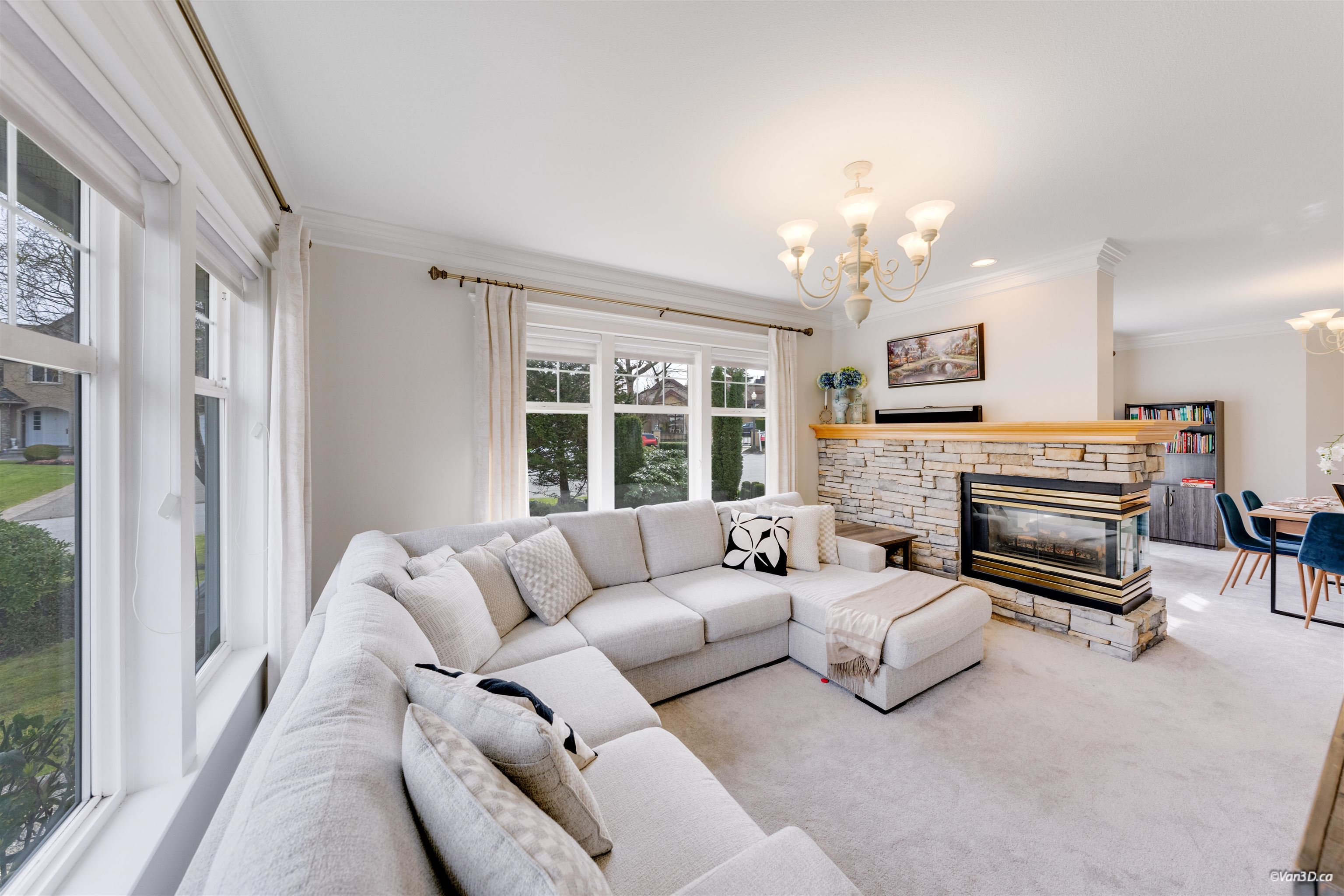 Welcome to this beautifully updated family home in prestigious Morgan Creek. Located on a quiet cul-de-sac corner lot, this home offers great curb appeal and a sunny south-facing, partially covered backyard. The main floor features 9’ ceilings, a bright living room with vaulted ceilings and gas fireplace, plus elegant dining and family rooms with a double-sided fireplace. The kitchen is upgraded with new countertops (2022)and marble backsplash. The main floor primary bedroom includes a walk-in closet and re...