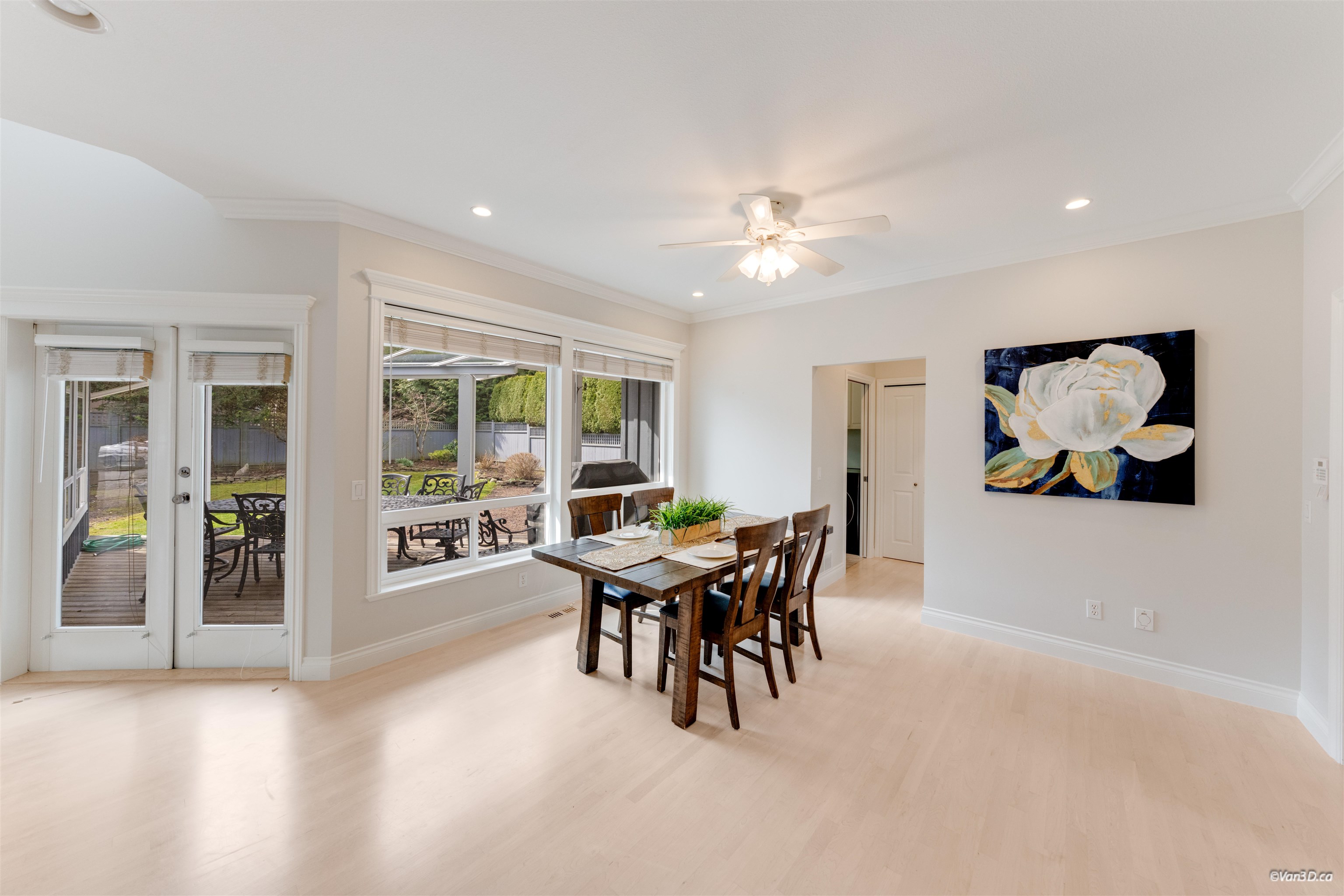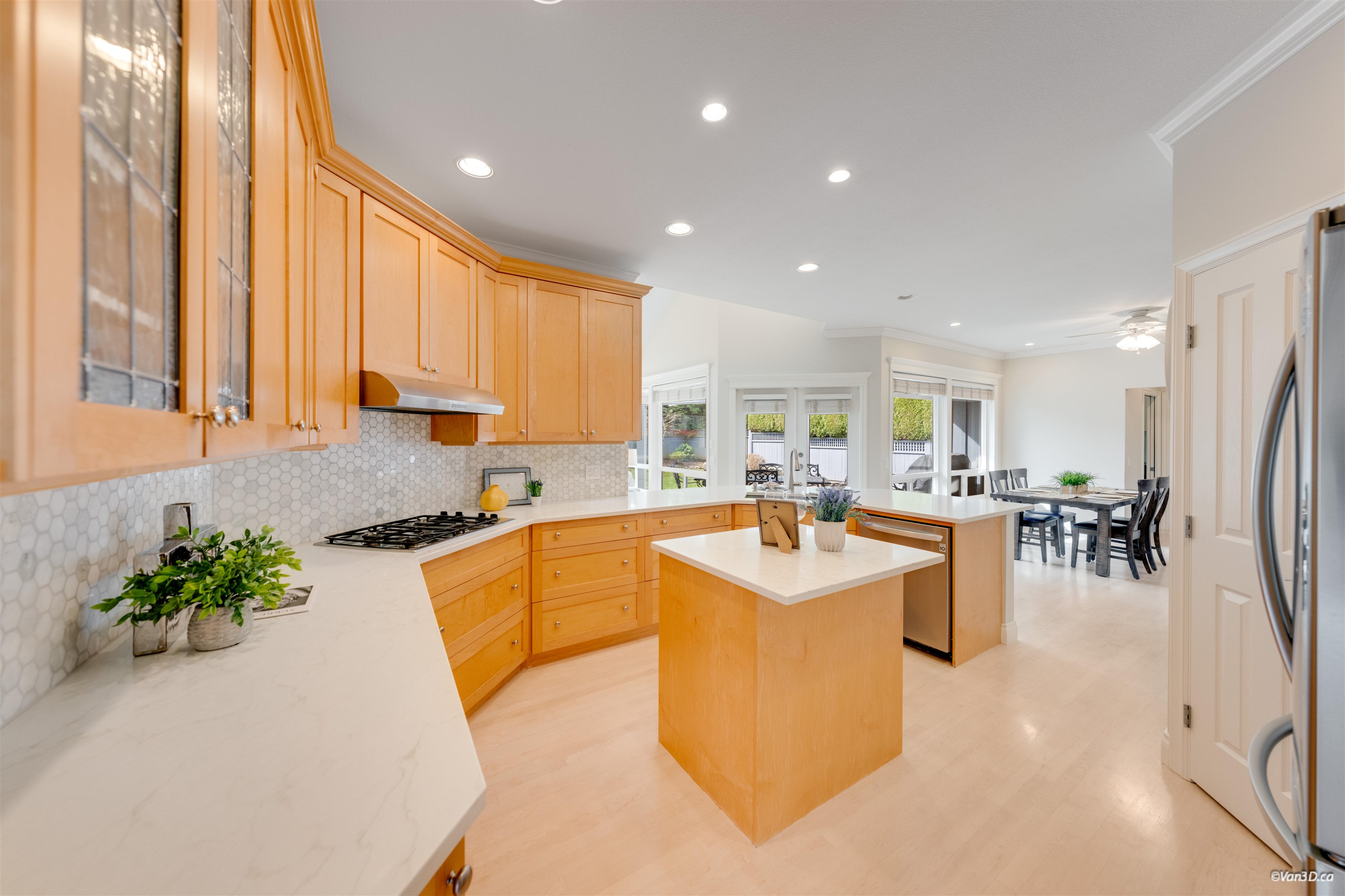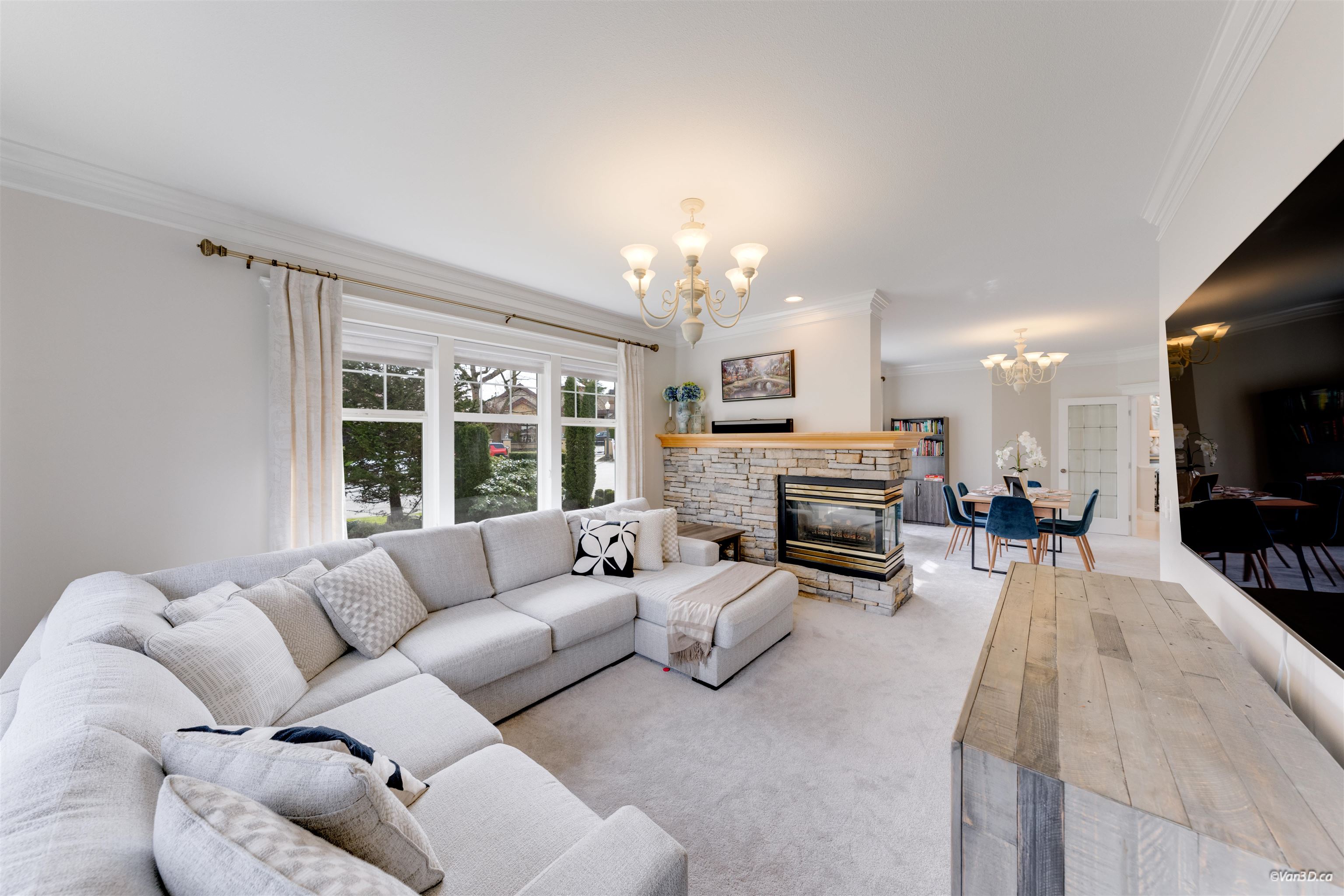 Welcome to this beautifully updated family home in prestigious Morgan Creek. Located on a quiet cul-de-sac corner lot, this home offers great curb appeal and a sunny south-facing, partially covered backyard. The main floor features 9’ ceilings, a bright living room with vaulted ceilings and gas fireplace, plus elegant dining and family rooms with a double-sided fireplace. The kitchen is upgraded with new countertops (2022)and marble backsplash. The main floor primary bedroom includes a walk-in closet and re...
