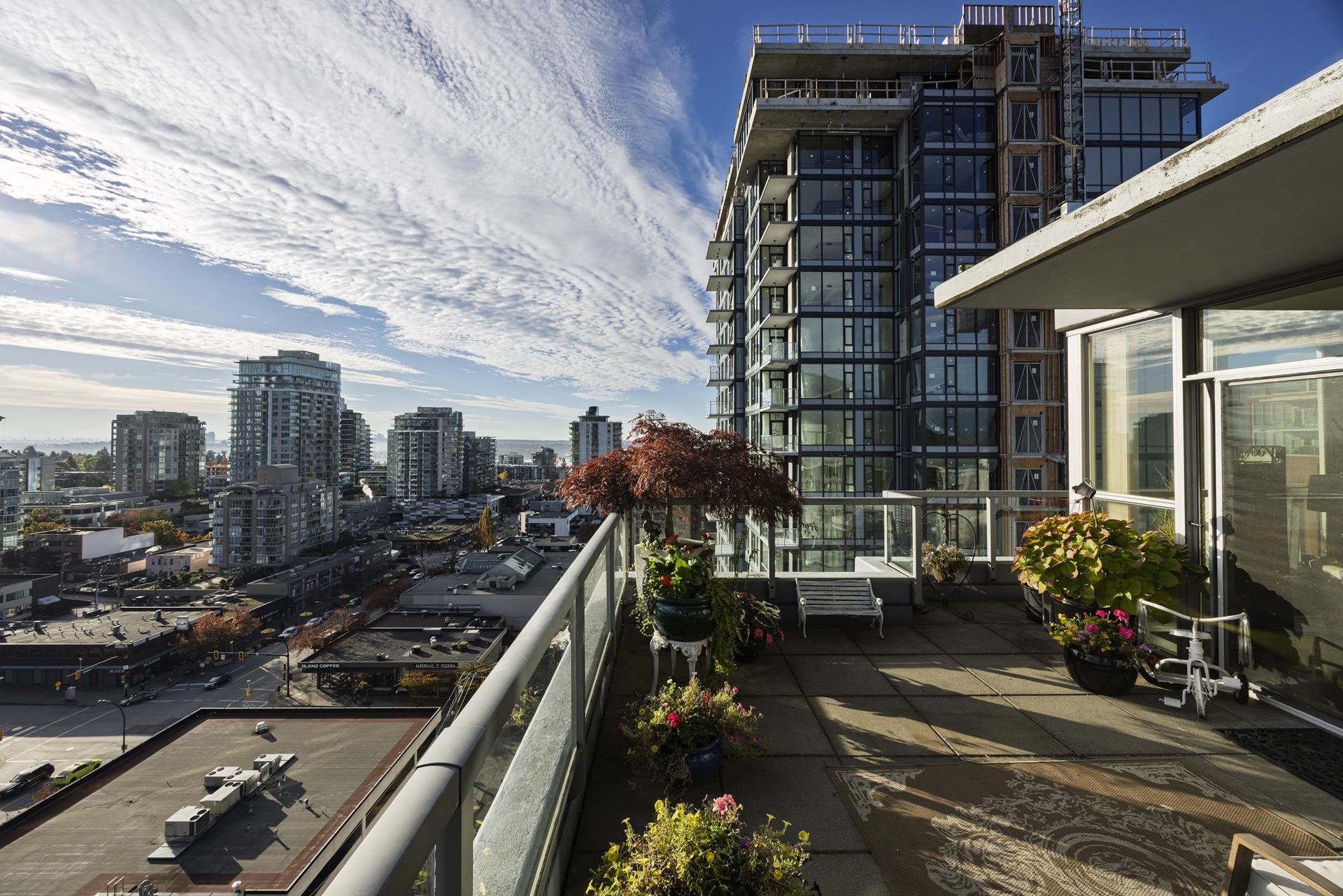 Centrally located penthouse with amazing VIEWS, is a fabulous 1,744sqft, 2 bedroom and den, 3 bathroom rare offering! A corner suite whose innovative design includes wide plank hardwood floors, cozy gas fireplace and floor to ceiling Low E, Smart glass thermal windows. Enjoy an expansive 700sqft roof top patio perfect for summer b-b-q or relaxation while taking in awesome SW views. The kitchen features granite counters, textured glass upper cabinets, ceramic tile backsplash, stainless appliances and an eati...