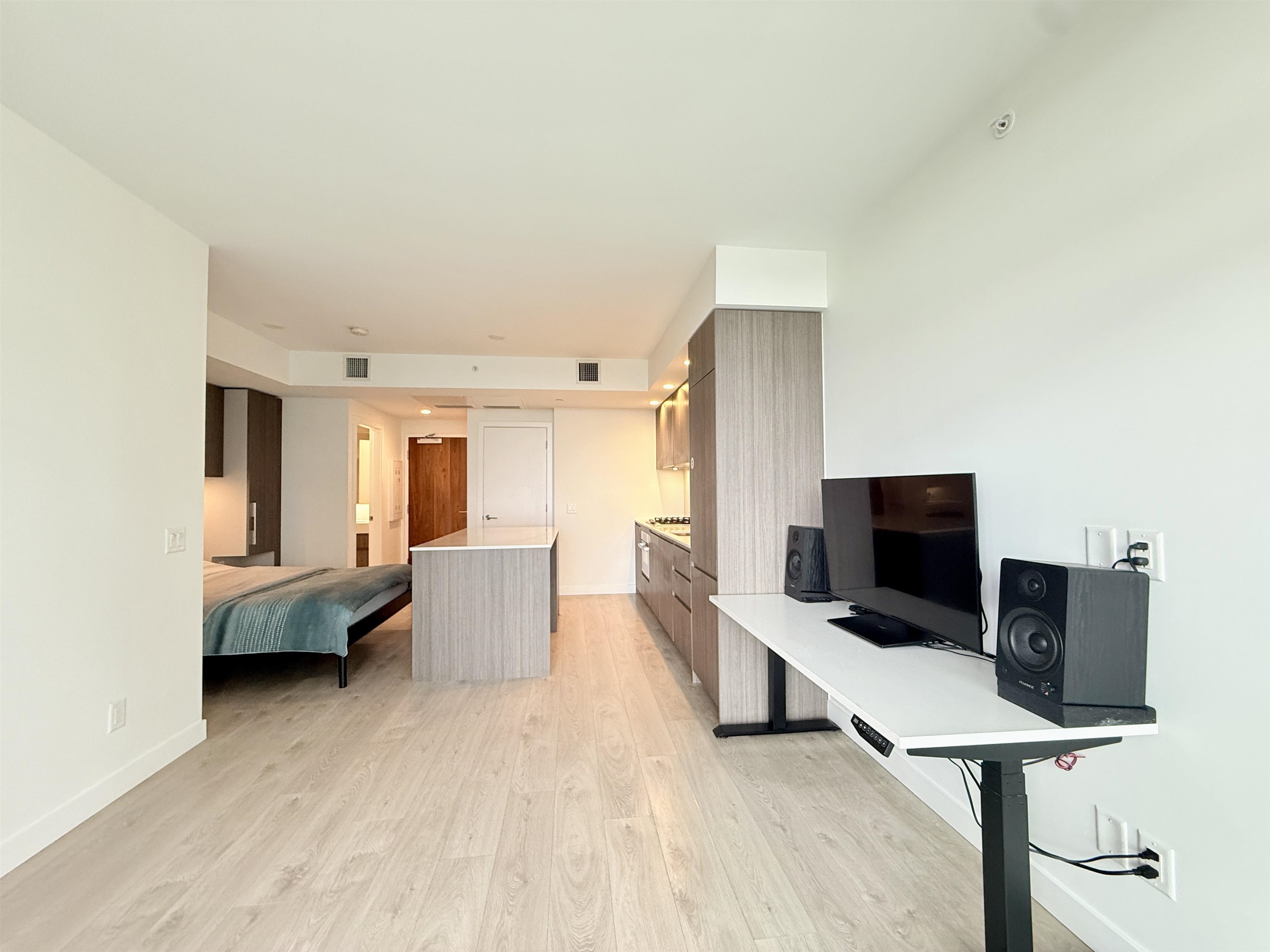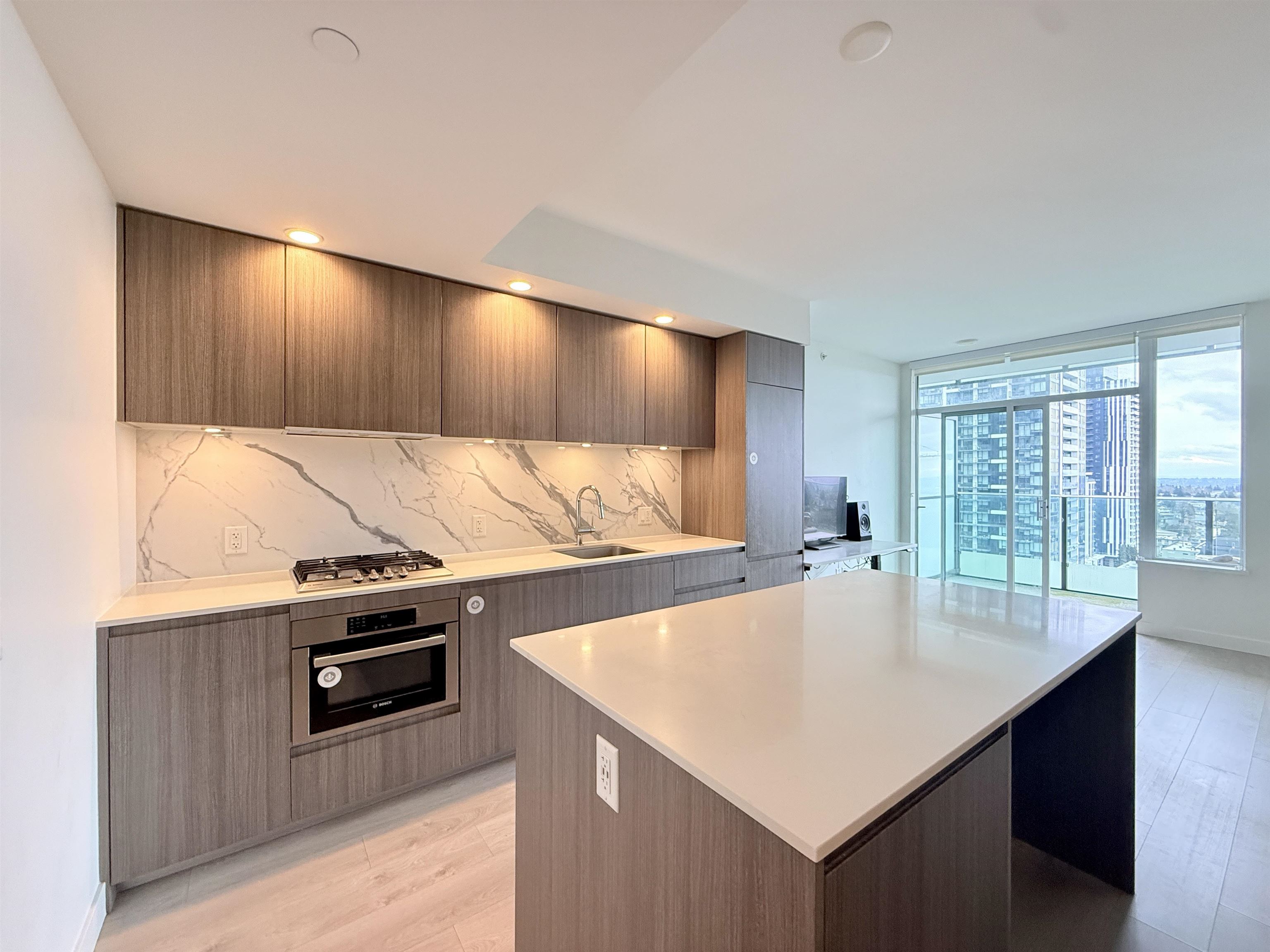 Studio with large-size balcony at Maywood on the Park by Intracorp. Open layout, contemporary finishes, air conditioning, Bosch appliances, stone countertops, spacious kitchen island with storage, laminate flooring throughout, custom millwork closets in bedroom, floor to ceiling windows and roller shades with black out shade, great city views. Amenities: 24-hour concierge, study room, gym, lounge area with kitchen, outdoor area with BBQ. Amazing location, in the heart of Metrotown, just few steps from Metro...