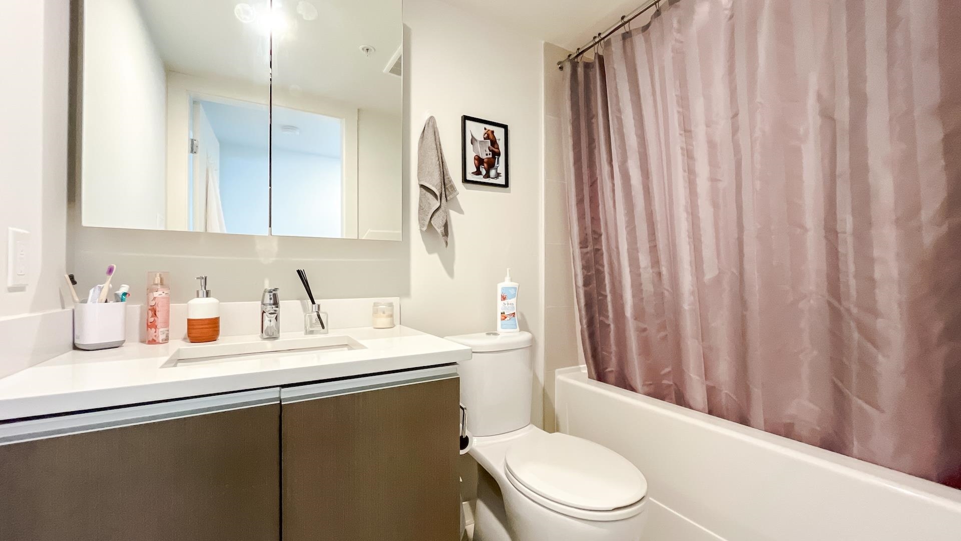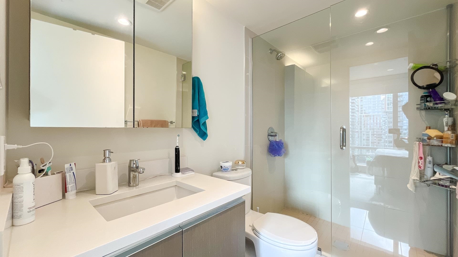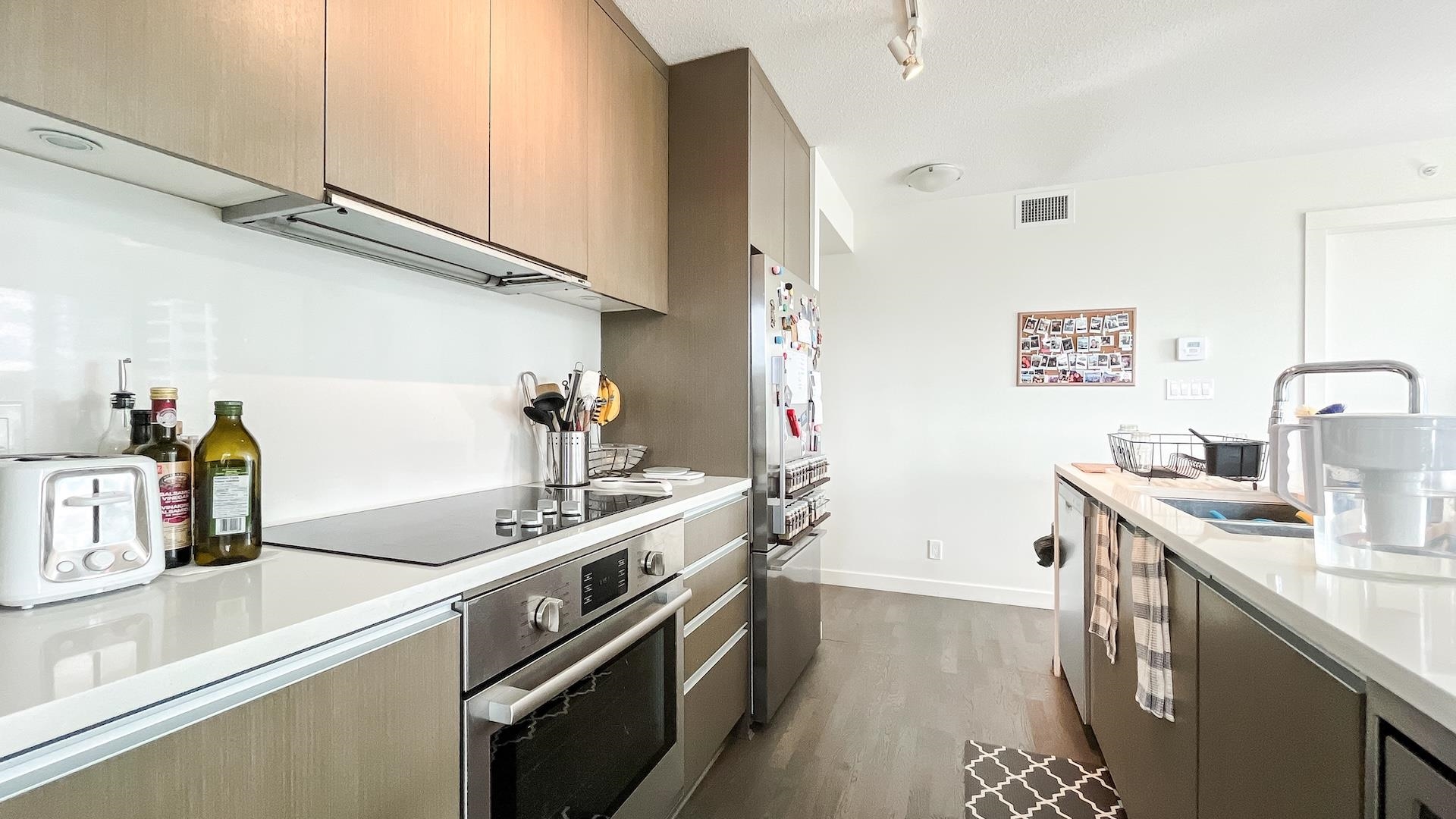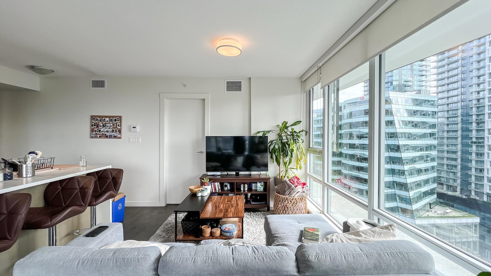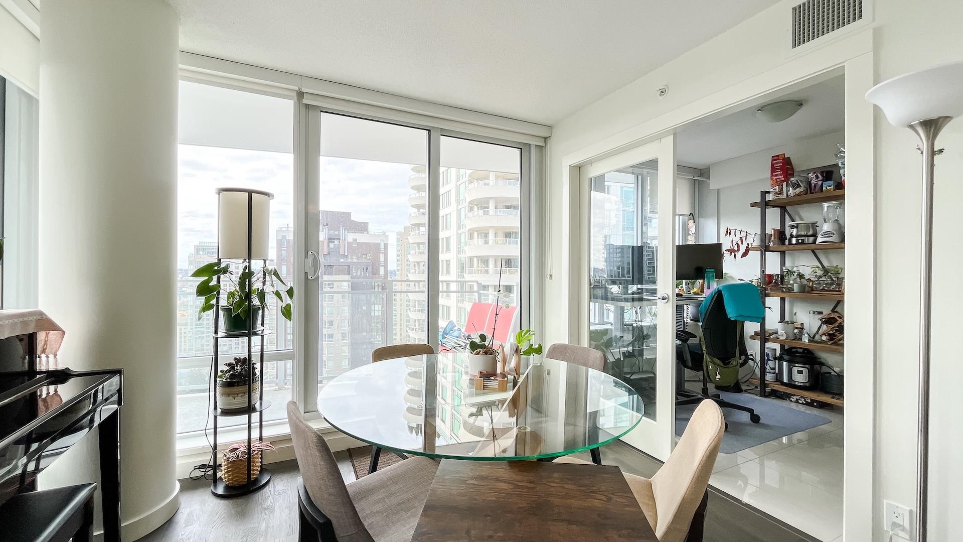 Bright Corner sub-penthouse w/180-degree South-East-West breathtaking panoramic view of city & Ocean. MODERN by Amacon situated in the heart of the highly sought-after community of West End. Spacious 2-bedroom & den (can be a guest 3rd bedroom). Intelligently designed for maximizing space. L-sharp balcony wrapped around the dining room. Floor-to-ceiling windows. Polished stone countertops, engineered-hardwood throughout the living room, high end S/S appliances from Fisher & Paykel & Bosch. The building well...