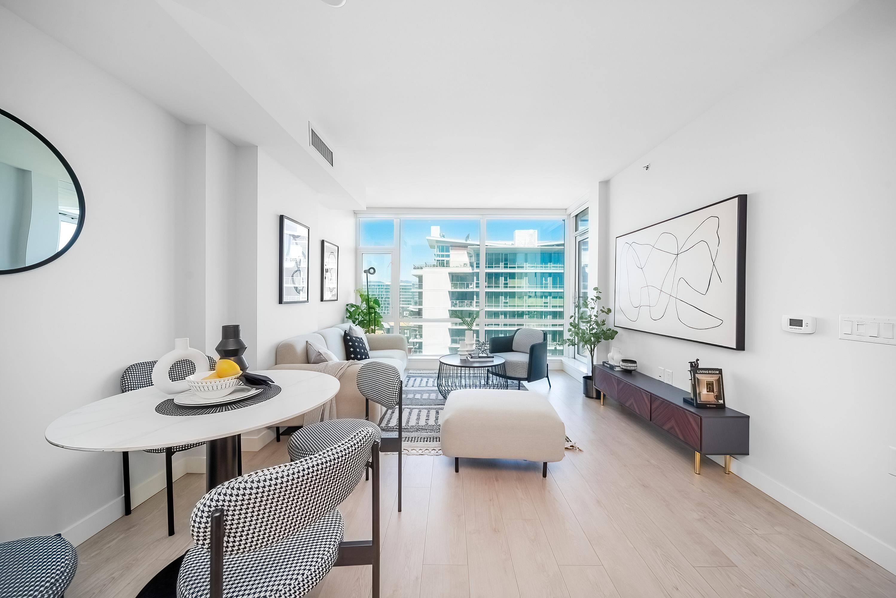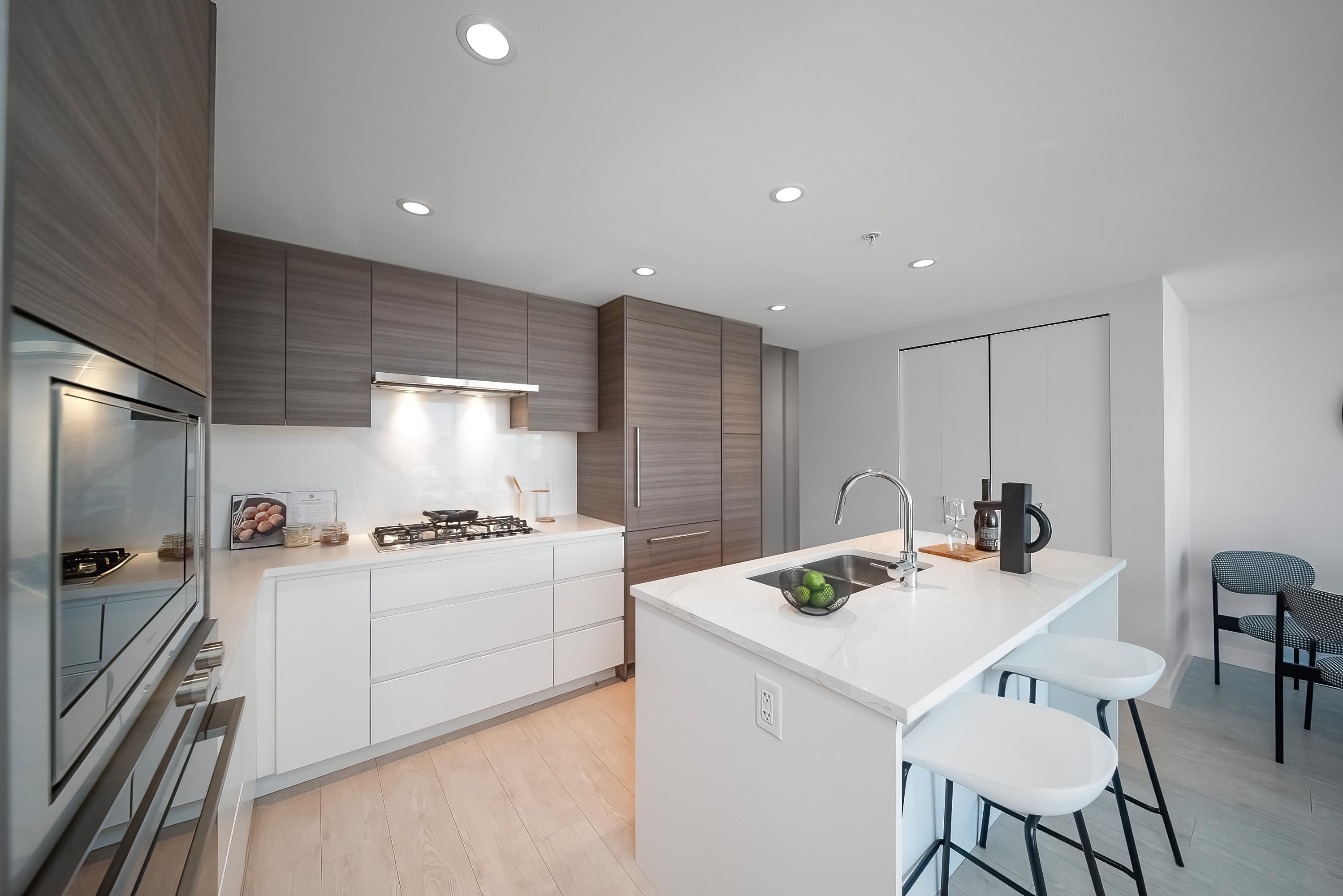 Welcome to PRIMA built by Robert Bosa's Quorum Group, high quality brand new 2 beds+2 full bath + 1 large den, north facing, floor-to-ceiling window, bright, open lay-out with air conditioning, good size bedrooms, modern kitchen design with many storage space, high end kitchen appliance. EV parking, just steps to Richmond Centre, bus and Skytrain Station, the best location in Richmond, easy to show.
