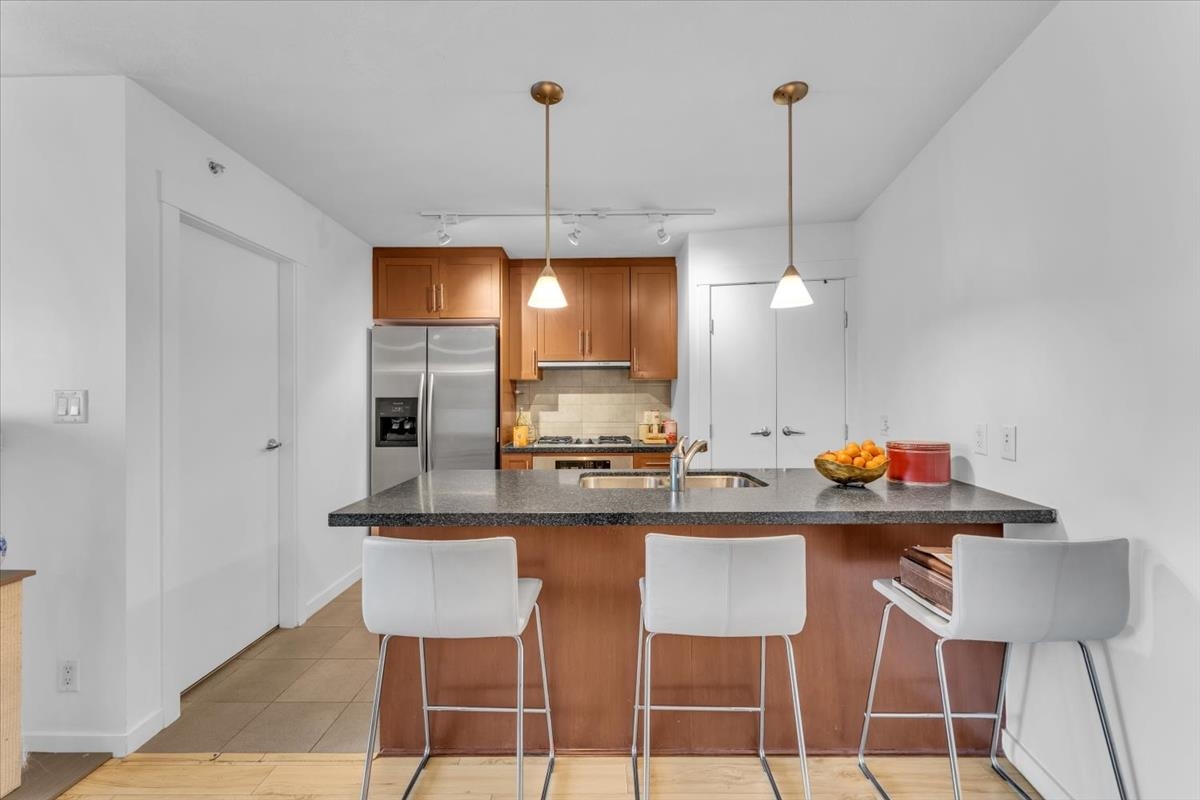 Rarely available Junior 2 Bedroom at The Melville in the heart of Coal Harbour. Enjoy city views with a peek-a-boo glimpse of the water, full size appliances, and an efficient open concept layout that maximizes every inch of the home. Ideally situated just steps to the seawall, Stanley Park, the marina, and some of Vancouver's best dining and cafes, this is downtown living at its finest with a true waterfront feel. Superior building services and amenities include a 24 hour concierge, rooftop patio, outdoor ...
