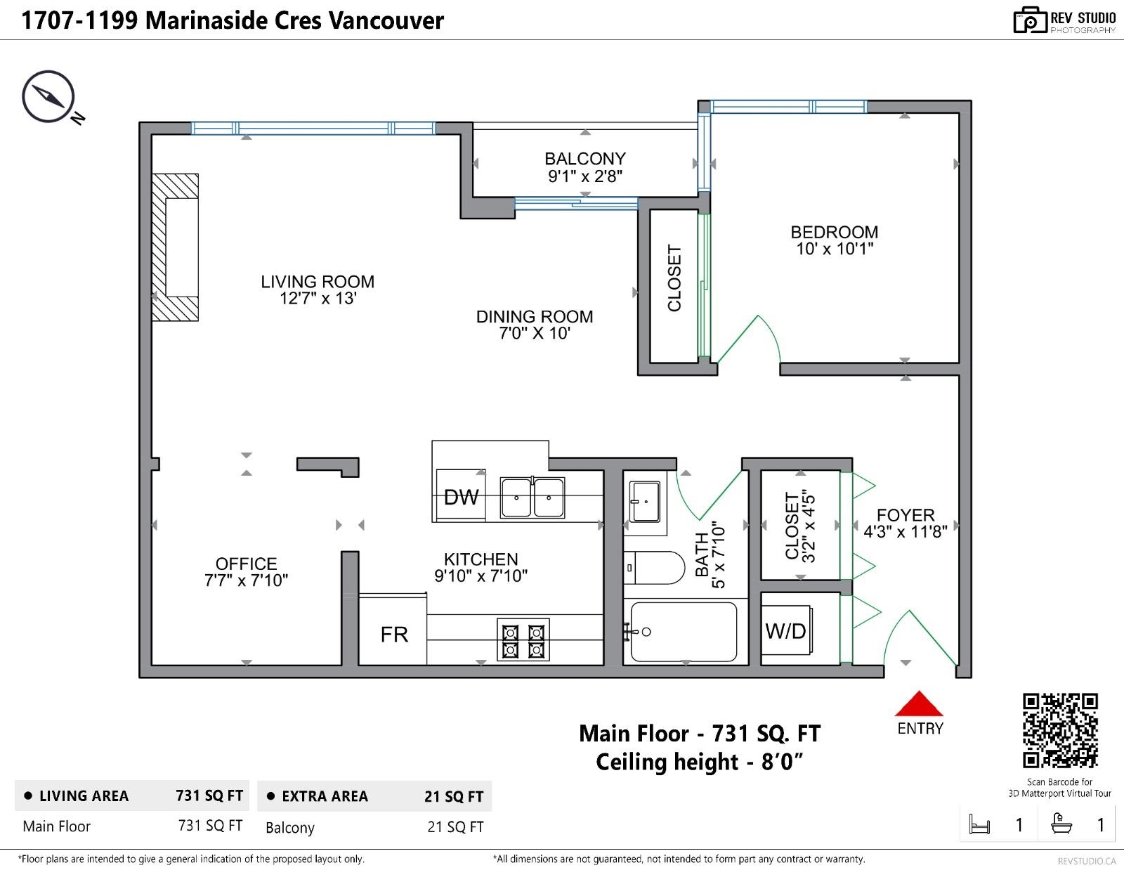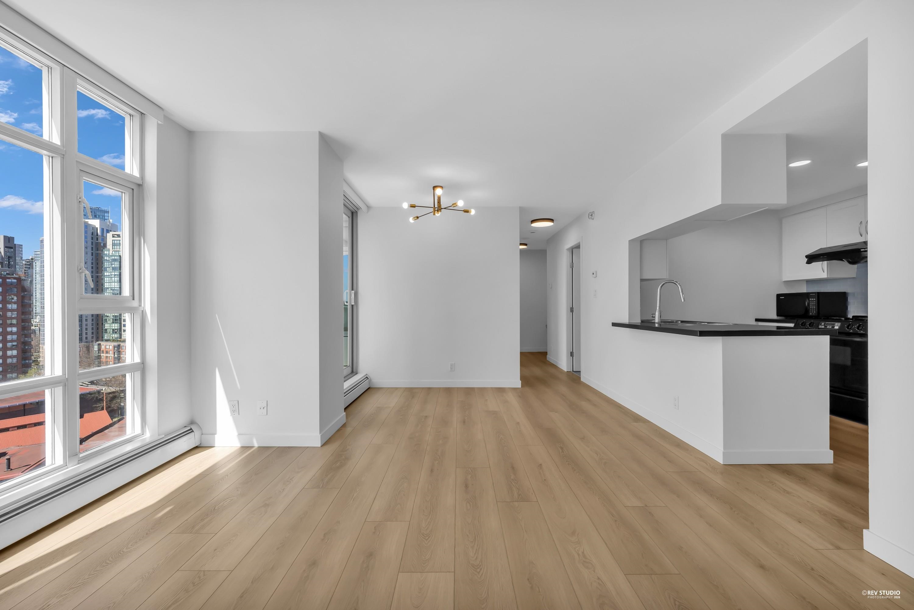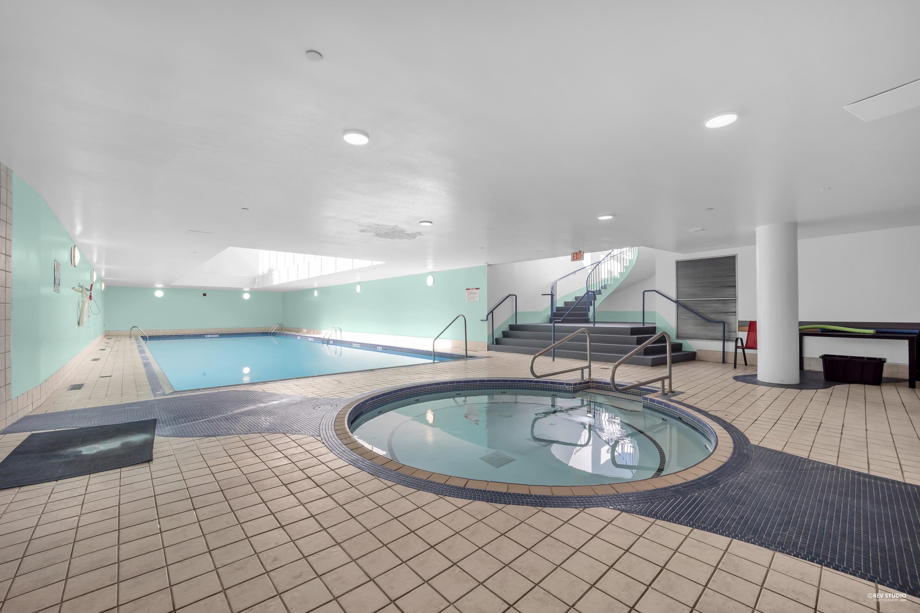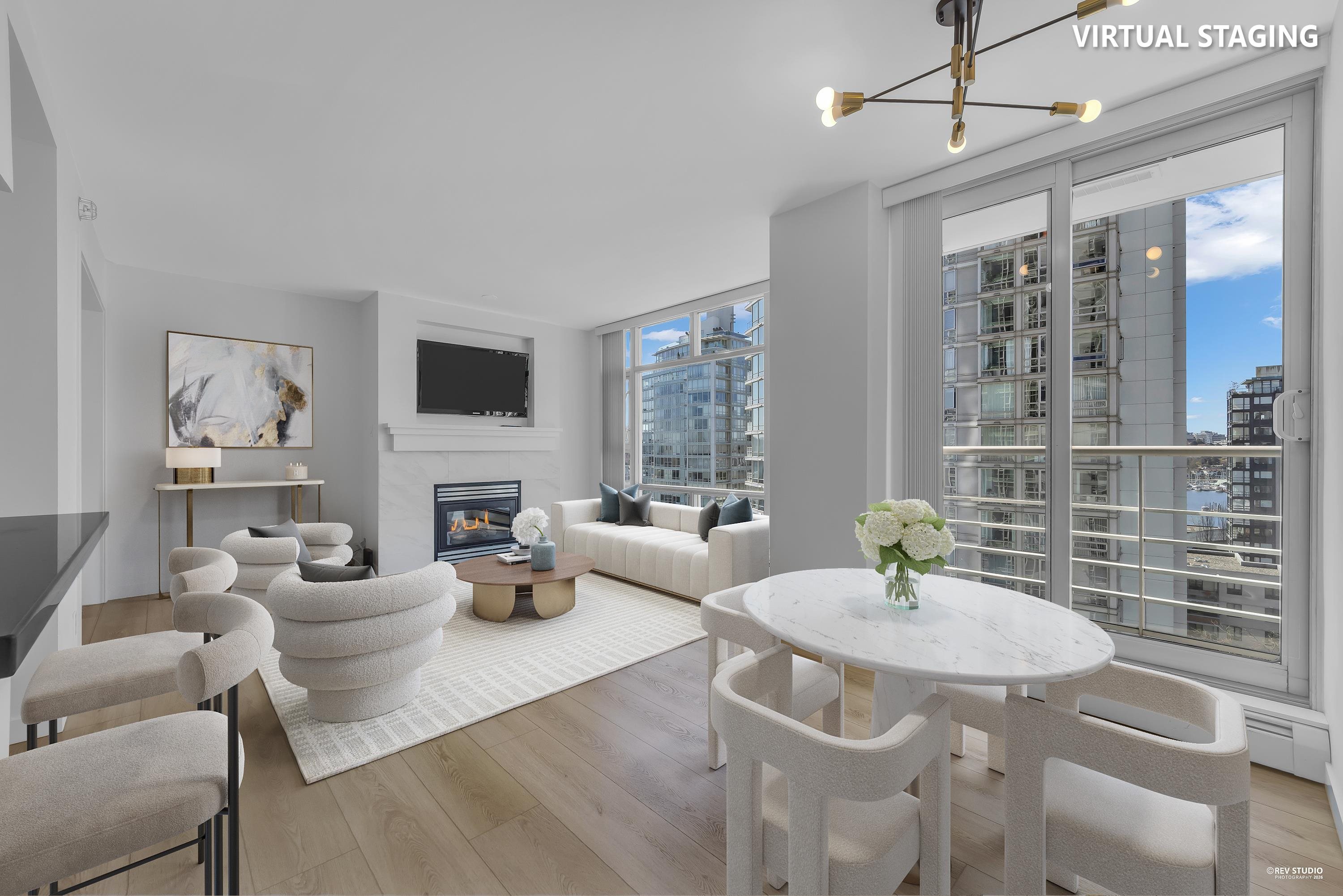 Bright and beautifully updated, this south-facing 731 sf one bedroom + den boasts floor-to-ceiling windows & balcony with sweeping south views of the city, parks and marina. The open layout features a cozy gas fireplace, gas range, and efficient comfy hot water heating - all included in your strata fees! Enjoy resort-style amenities like 24-hour concierge, newly equipped gym, full size indoor pool, hot tub, and steam room. Includes one secure parking stall and a BONUS 70 sqft storage locker! Ample visitor p...