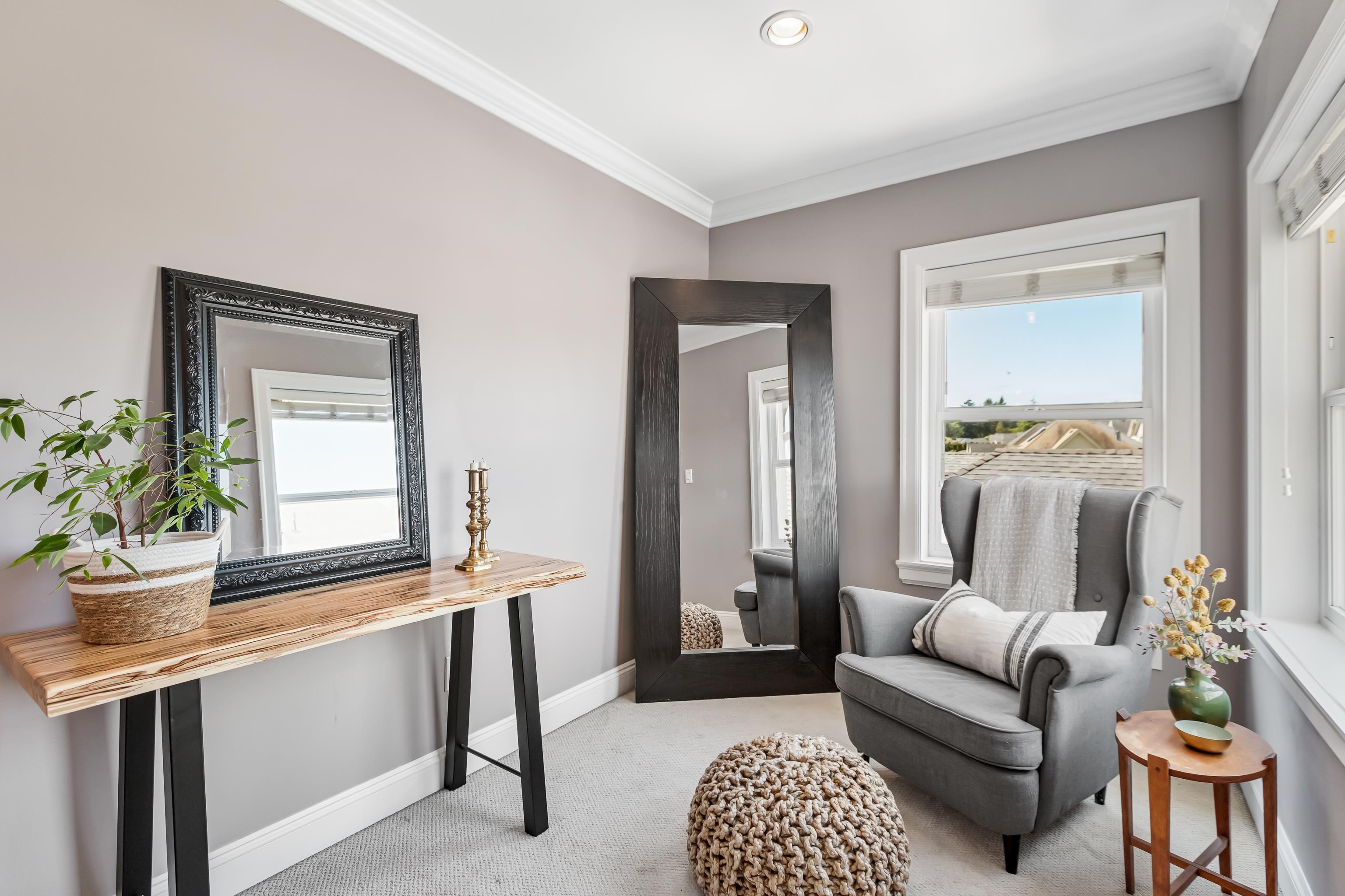 South Surrey Family Home with Private Income Suite — Minutes to White Rock! Over 3,500 sq.ft. and far larger than it appears from the outside — must be seen inside to appreciate the scale. Includes a self-contained 1-bedrm suite for valuable mortgage-helper income. The ATTACHED dbl garage is accessed from the rear lane w/ add’l parking, creating charming curb appeal while the spacious interior feels private & tucked away. Main flr offers 10' ceilings, chef’s kitchen w/ custom pantry, den/office, custom laun...
