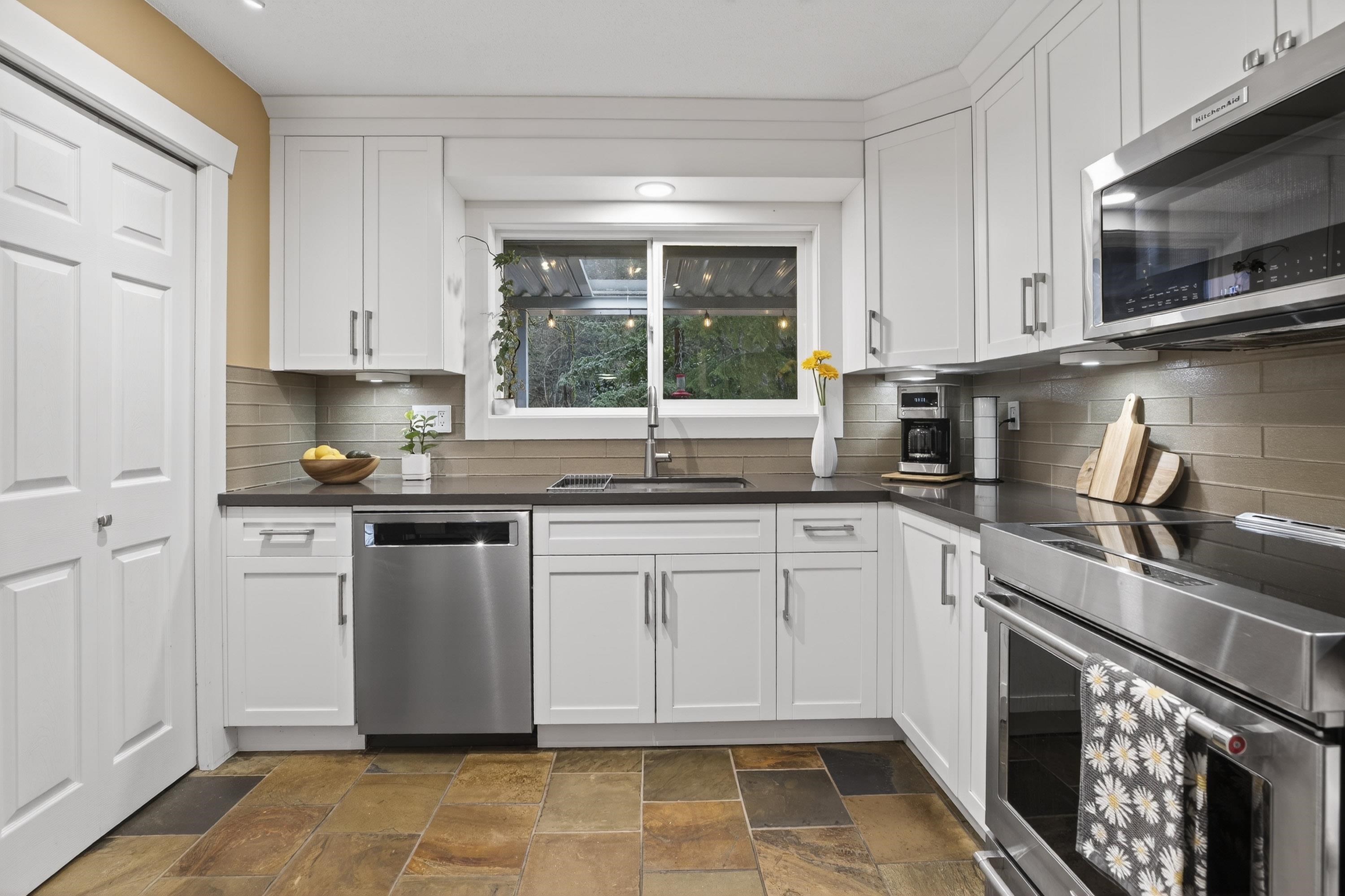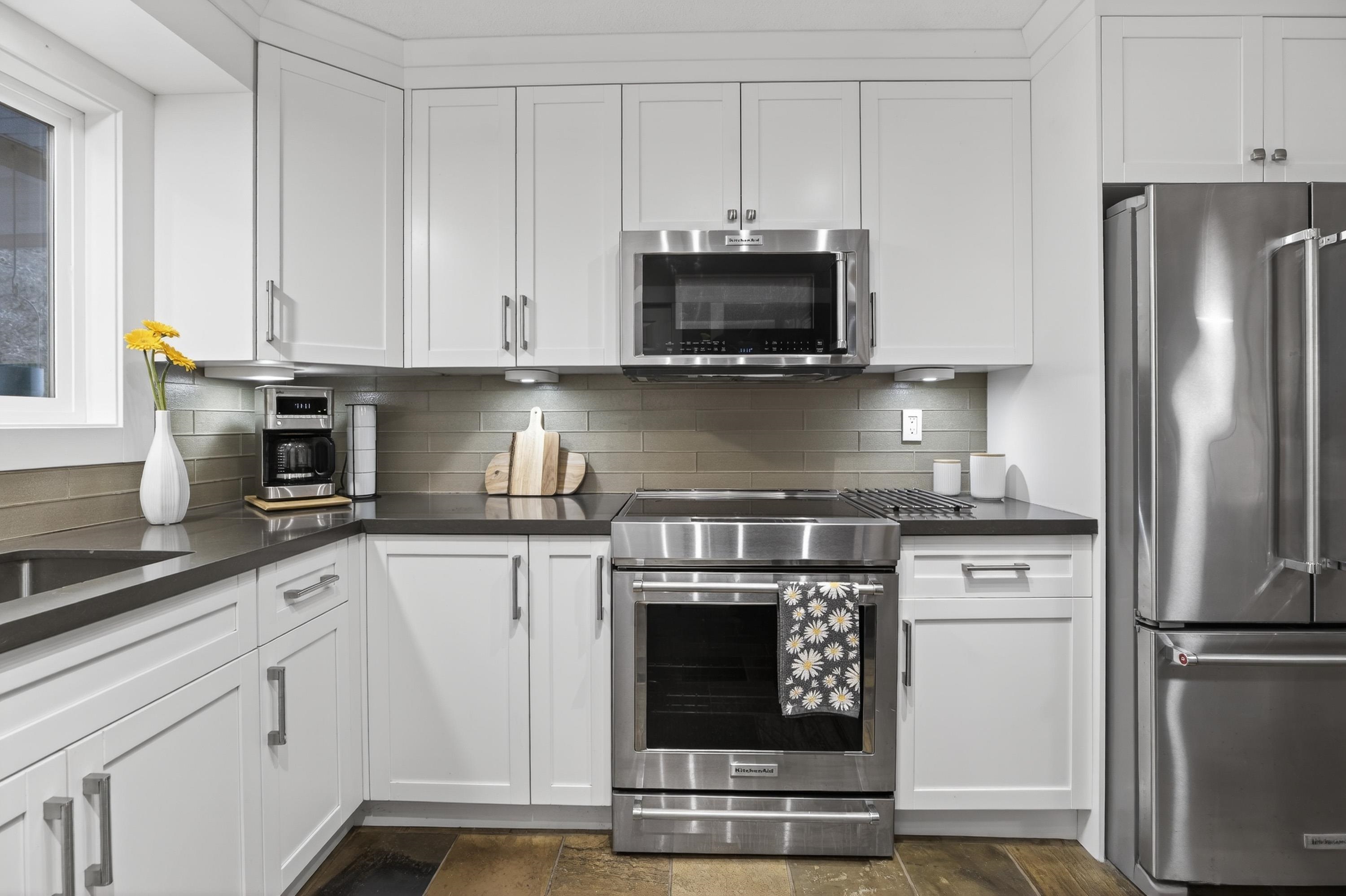 Beautifully renovated family home on a quiet street with central A/C, featuring 3 bedrooms up and a bright 2-bedroom basement suite-ideal for extended family or a mortgage helper. Spacious recreation room offers potential for a third bedroom down. Extensively updated with newer furnace, A/C (2021), hot water tank (2025), new washer/dryer (2025), New siding and paint (2023), newer gas fireplaces up and down, plus kitchen, bathrooms, and more! Enjoy a private backyard oasis backing onto a serene greenbelt wit...
