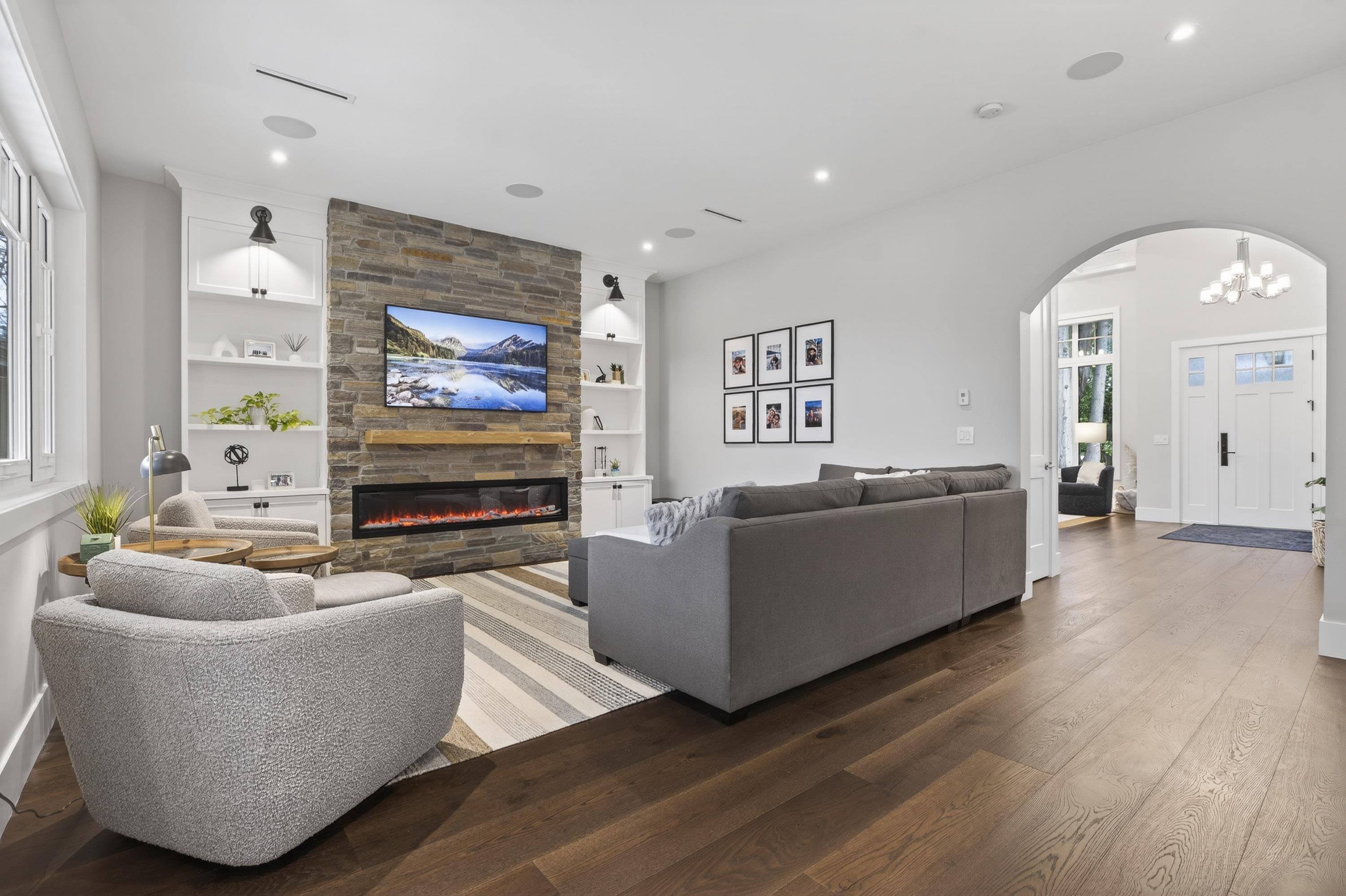 Beautifully appointed 2938 sqft Burkeville home offers a refined yet welcoming family atmosphere. The chef inspired kitchen features quartz countertops, top of the line S/S appliances & a built-in wine fridge. The open-concept layout, with rich hardwood flooring throughout, effortlessly unites the kitchen, dining, & family areas. The fully fenced back yard & deck is perfect for relaxing summer barbecues. Upstairs, the primary bedroom impresses with a beautifully finished 5 piece spa-themed ensuite, an expan...