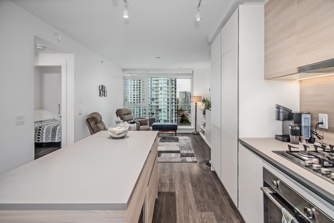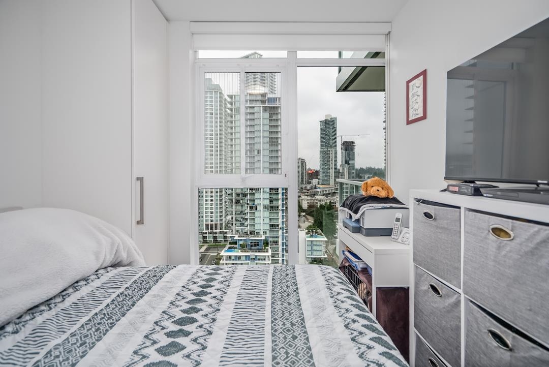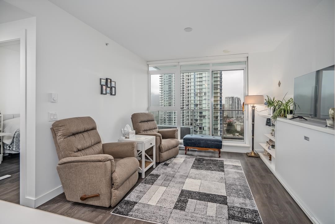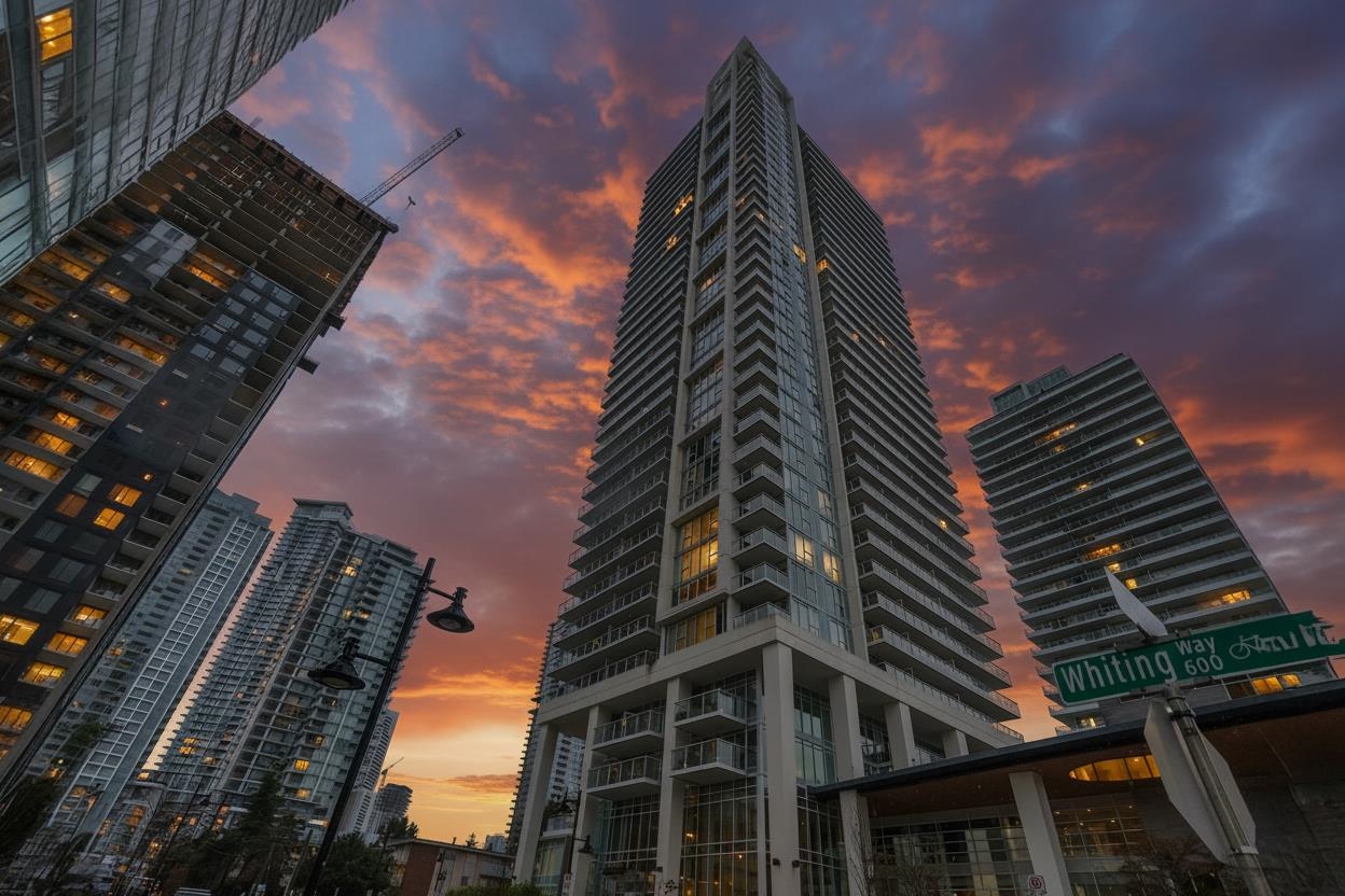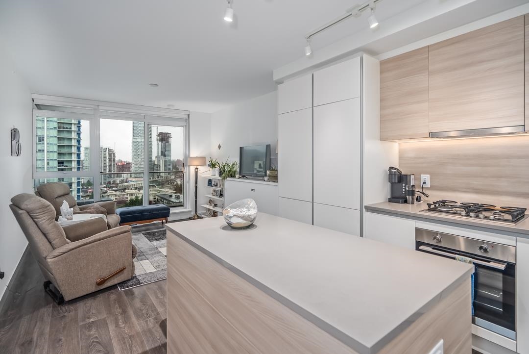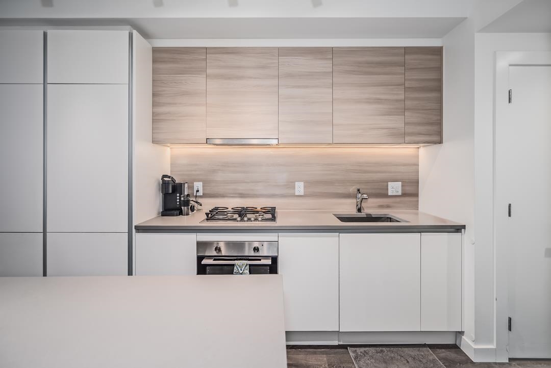 Presenting Lougheed Heights by Bosa, a modern 1-bed + den unit on the 18th floor perfect for investors or those seeking urban convenience. Enjoy panoramic city & mountain views from an open-concept layout featuring a gourmet kitchen with Euro-inspired stone countertops, premium KitchenAid appliances & high-end fixtures. Thoughtful cabinetry & built-in closets add practicality, while the TV wall doubles as a sofa or spare bed. Amenities include a heated outdoor pool, gym, sauna, sports courts, theatre, libra...