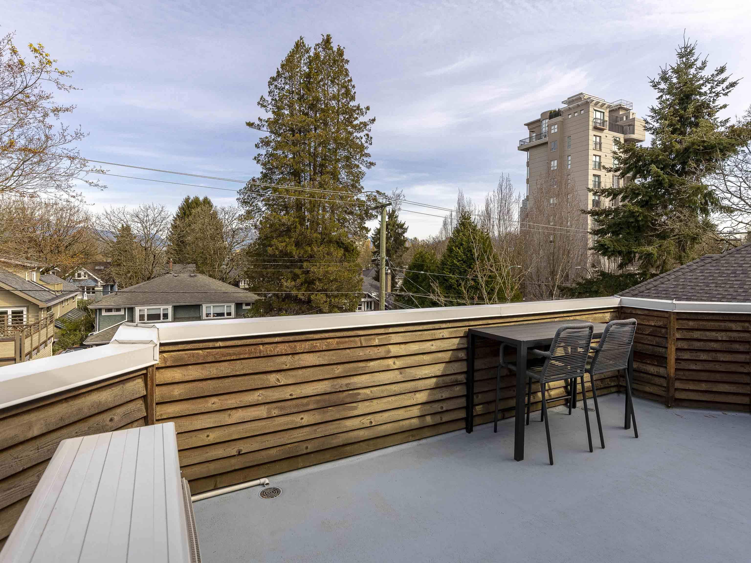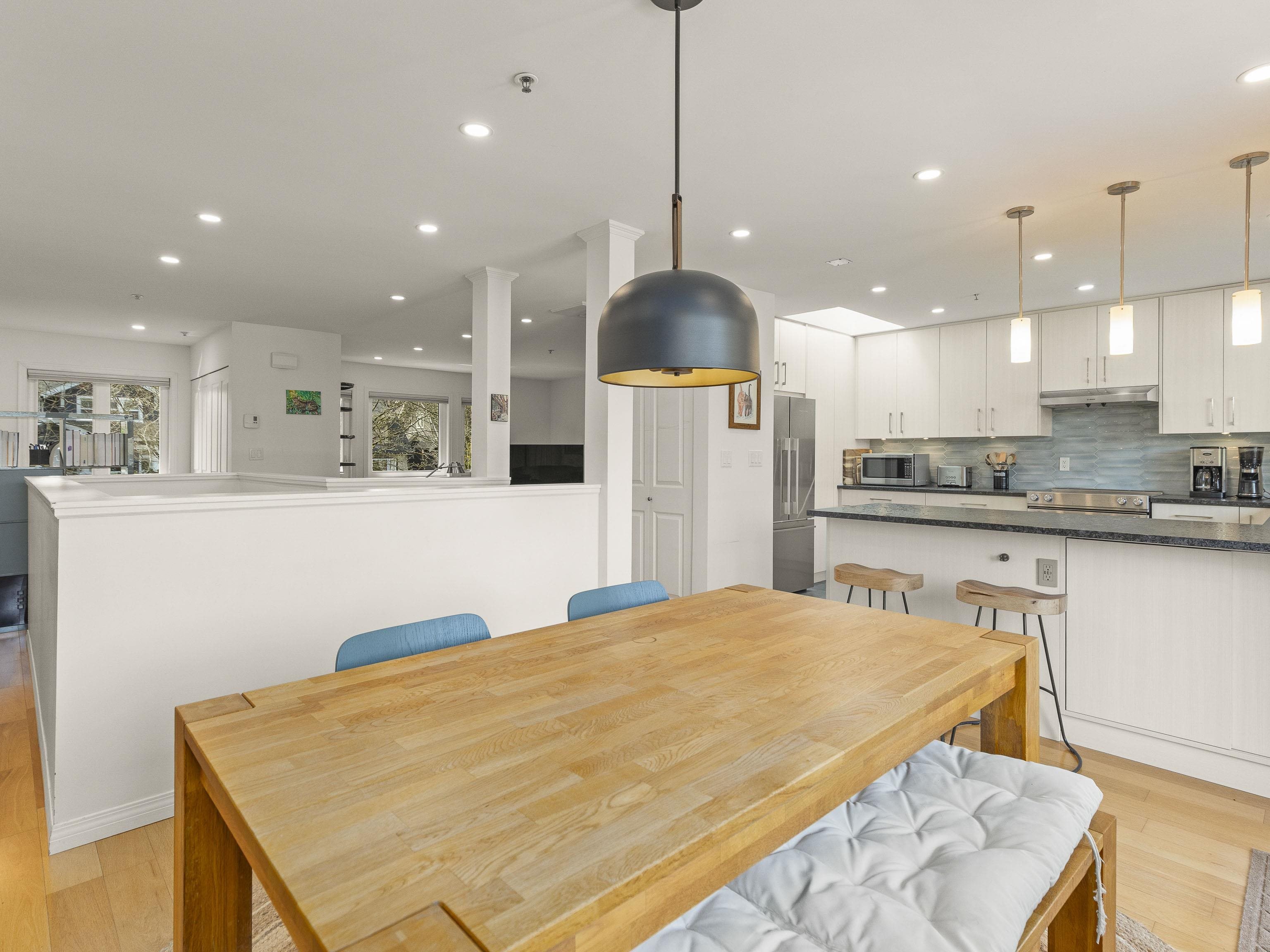 Situated on a lovely tree-lined street in the heart of Kitsilano, this top-floor, spacious 2-bedroom plus den townhome is fully renovated and move-in ready. With north and south exposure and three skylights, the home is filled with natural light. The kitchen features stainless steel appliances, custom cabinetry, a stylish tile backsplash, and excellent pantry and counter space. The generous living room includes a cozy wood-burning fireplace, while the dining area opens onto a private rooftop deck with mount...