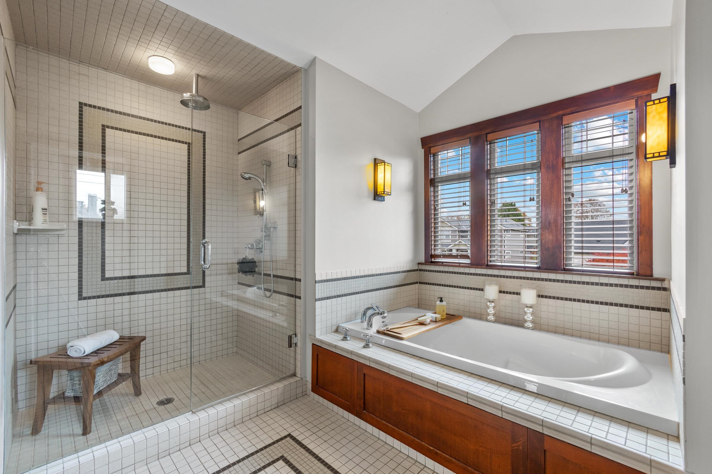Discover a luxury Residence located in North Bby's Finest Neigbourhood 'THE HEIGHTS!' This One-of-a-Kind Home was European Built w/ the Extensive use of Solid Cherry Wood Floors + Fir Milwork Finishing. Magnificent Foyer w/ Expansive Floor Plan offers Executive Living with a Formal Dining Room adjacent to a Chef Inspired Kitchen + Family Room perfect for Entertaining. Above feat's 2 Large Beds w/ a Jack-n-Jill Bath + Stunning Primary Bedroom adorned w/ a Massive Hotel Style Ensuite w/ a Luxurious Soaker Tub...