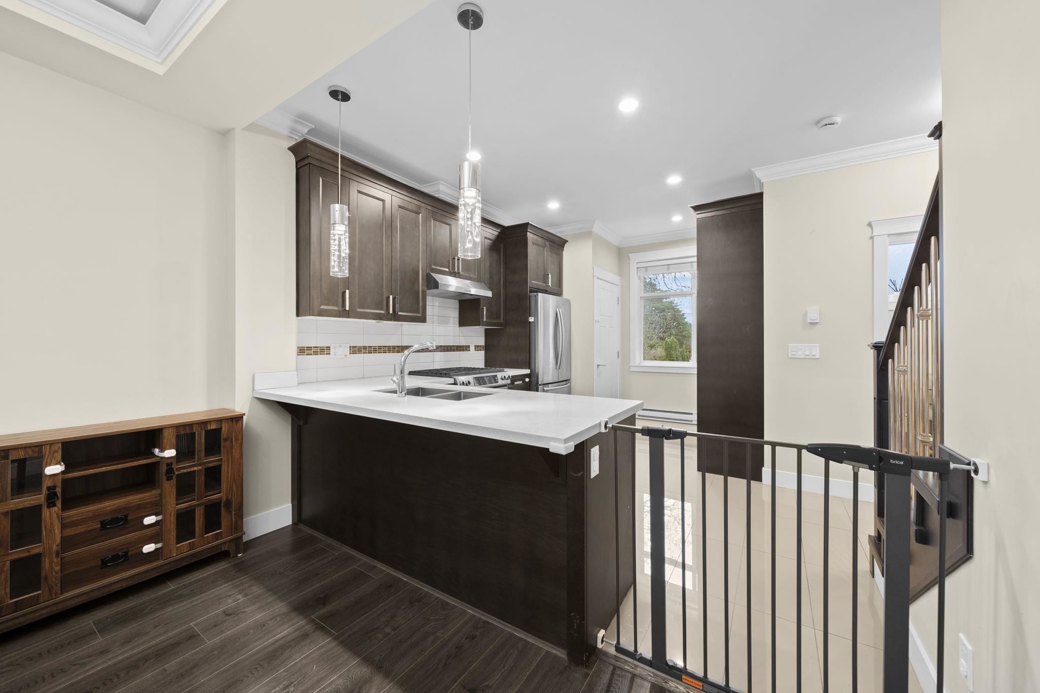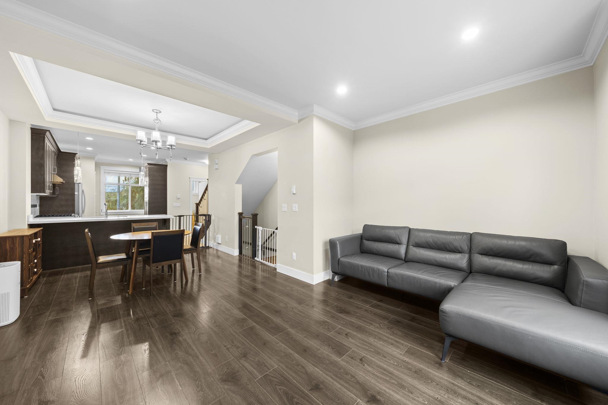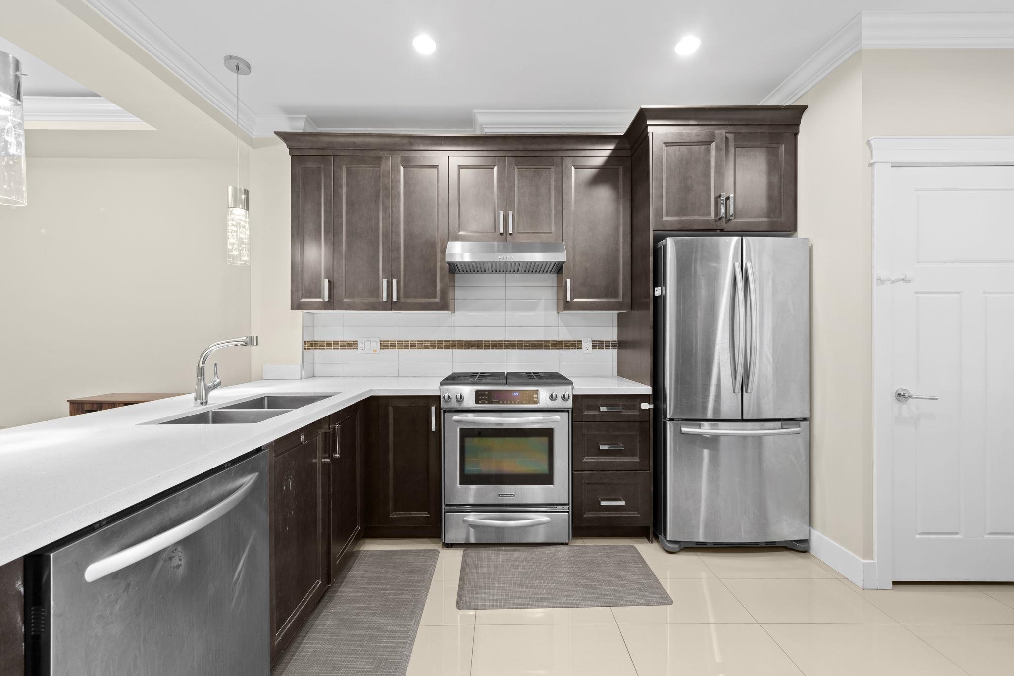Welcome to Woodwards Pointe in the desirable Woodwards neighbourhood, offering an excellent school catchment. This south-facing 3 bed 2.5 bath, 3-level townhome features a functional open-concept main floor with a spacious kitchen offering solid maple cabinetry, stainless steel appliances, and abundant natural light. Includes a double garage and is set in a quiet residential community with low strata fees. Steps away from parks, shopping, and transit. Excellent school catchments: 5-min walk to Steveston-Lon...