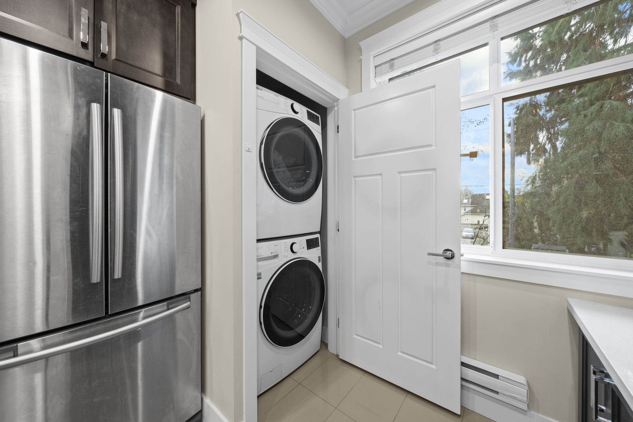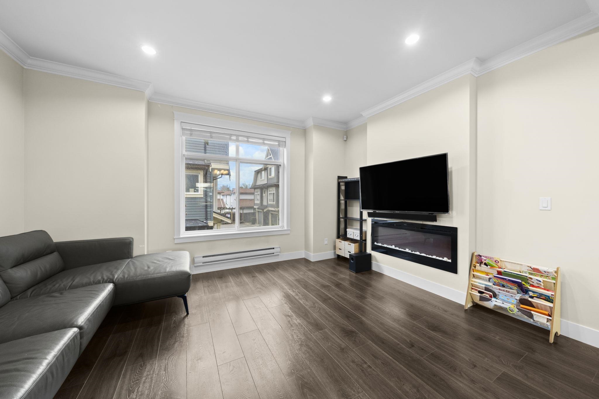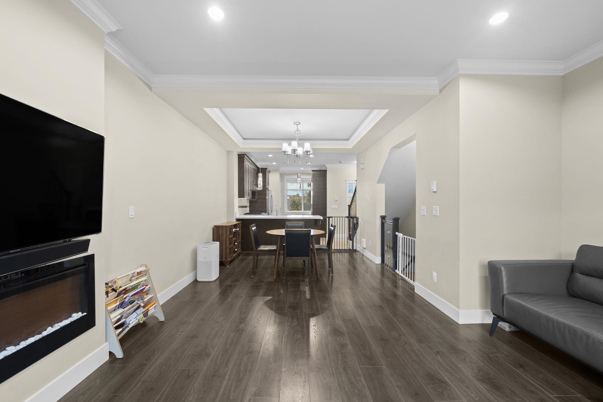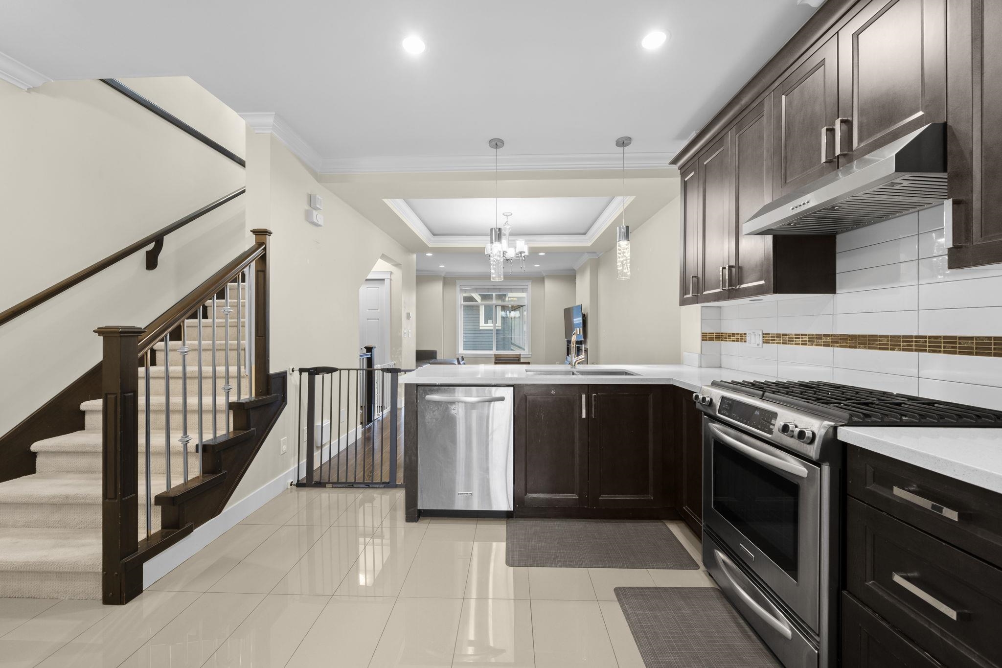 Welcome to Woodwards Pointe in the desirable Woodwards neighbourhood, offering an excellent school catchment. This south-facing 3 bed 2.5 bath, 3-level townhome features a functional open-concept main floor with a spacious kitchen offering solid maple cabinetry, stainless steel appliances, and abundant natural light. Includes a double garage and is set in a quiet residential community with low strata fees. Steps away from parks, shopping, and transit. Excellent school catchments: 5-min walk to Steveston-Lon...