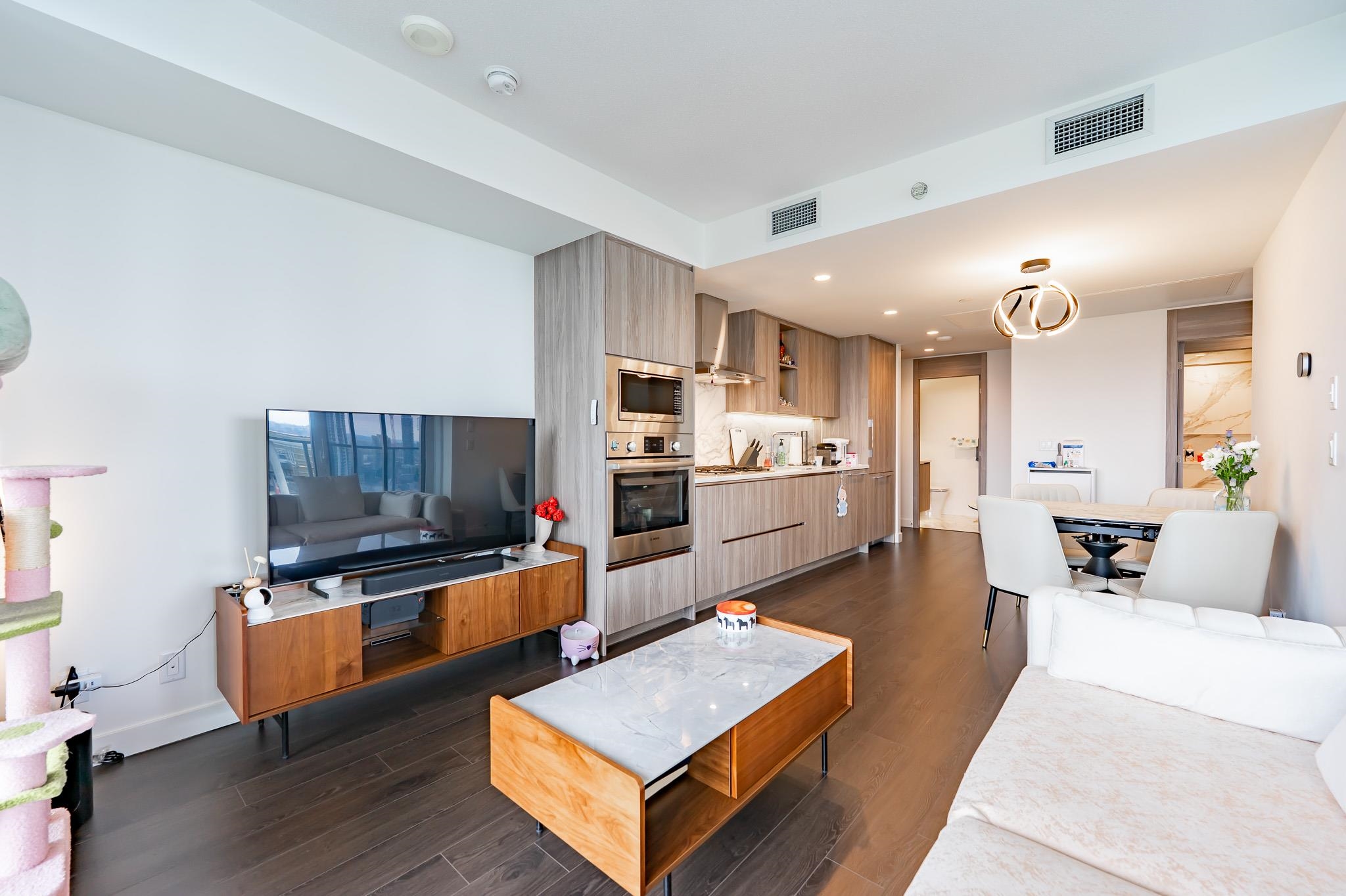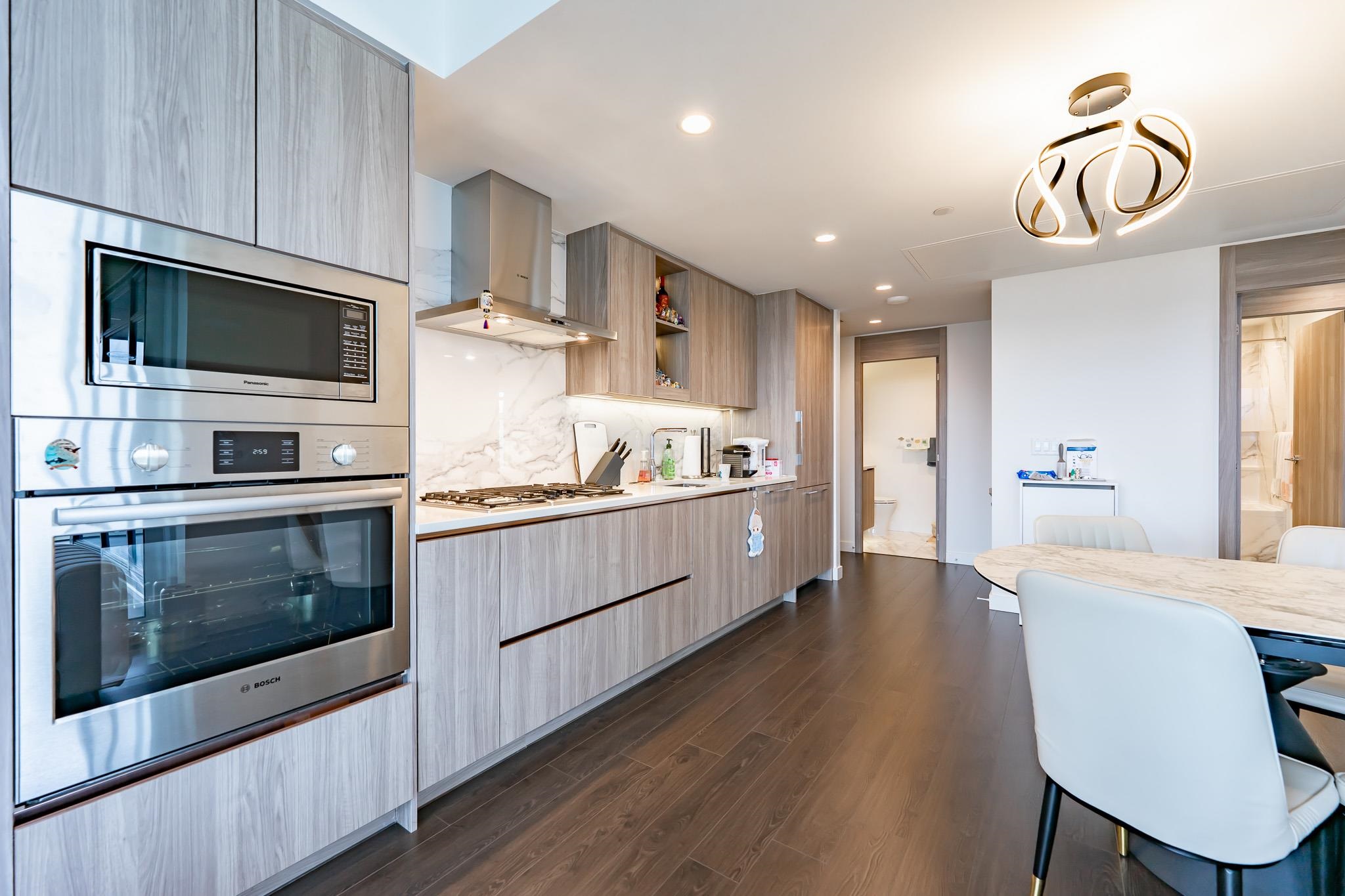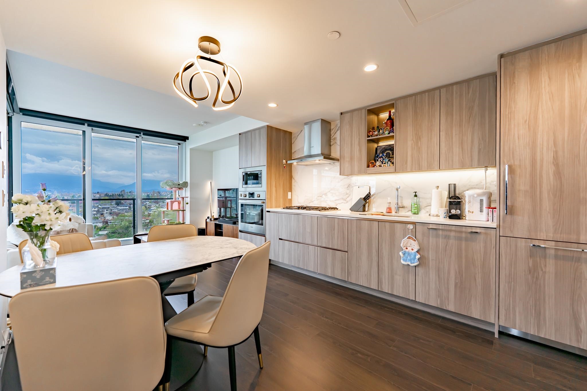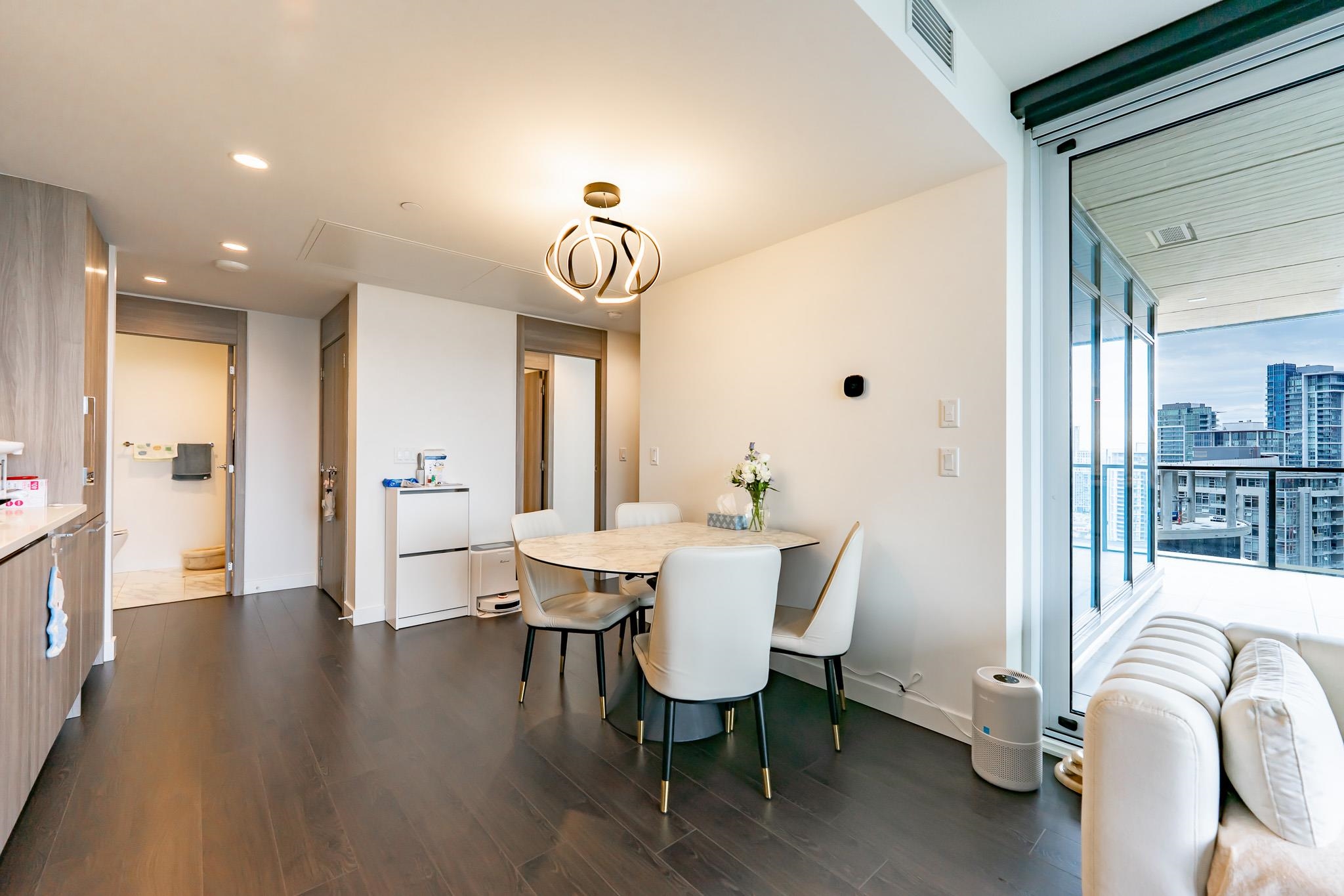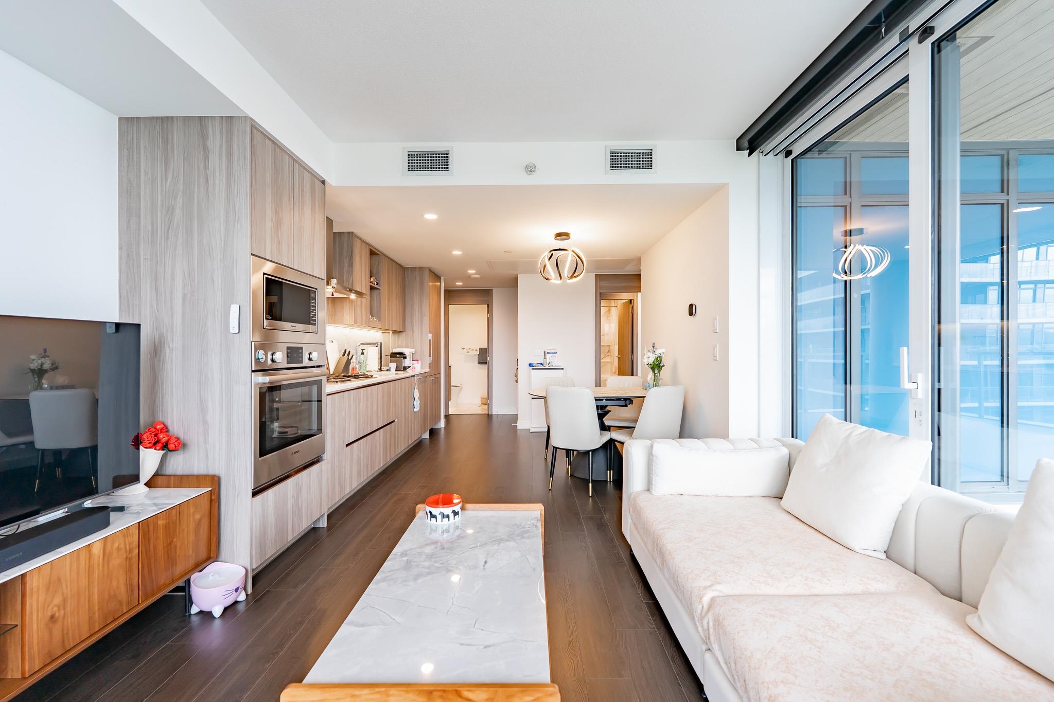 Welcome to this luxurious NW corner unit with stunning city and mountain views at Concord Brentwood Hillside East! Built by Concord Pacific, this 2-bed, 2-bath unit includes high-end integrated Bosch appliances, floor-to-ceiling windows, wide plank laminate flooring, central A/C, and closet organizers. Enjoy seamless indoor/outdoor living with an oversized 525 sq ft covered wrap around balcony with a ceiling heater. Amenities include 24/7 Concierge, fitness centre, car wash, party room, games room, pet room...