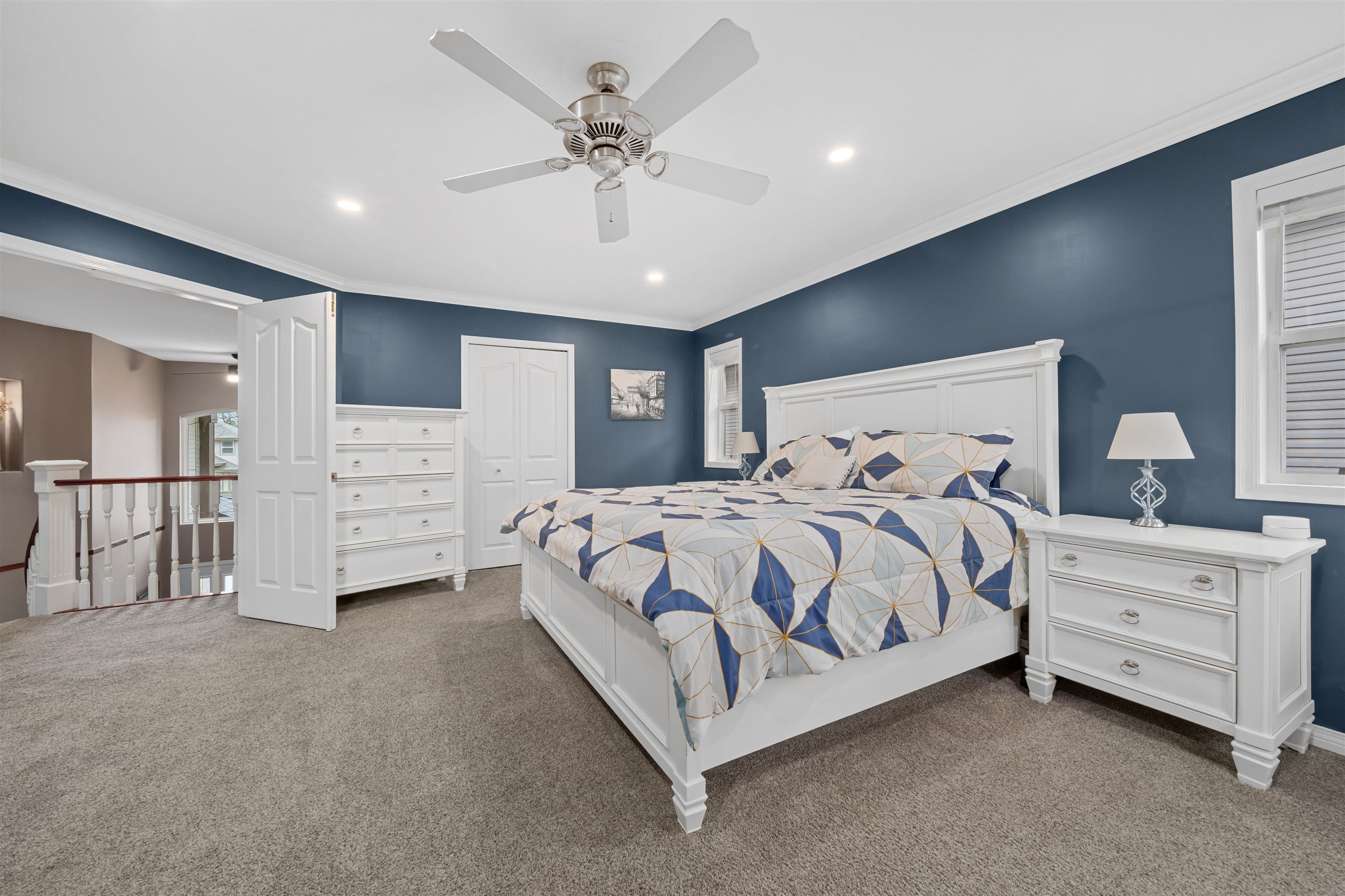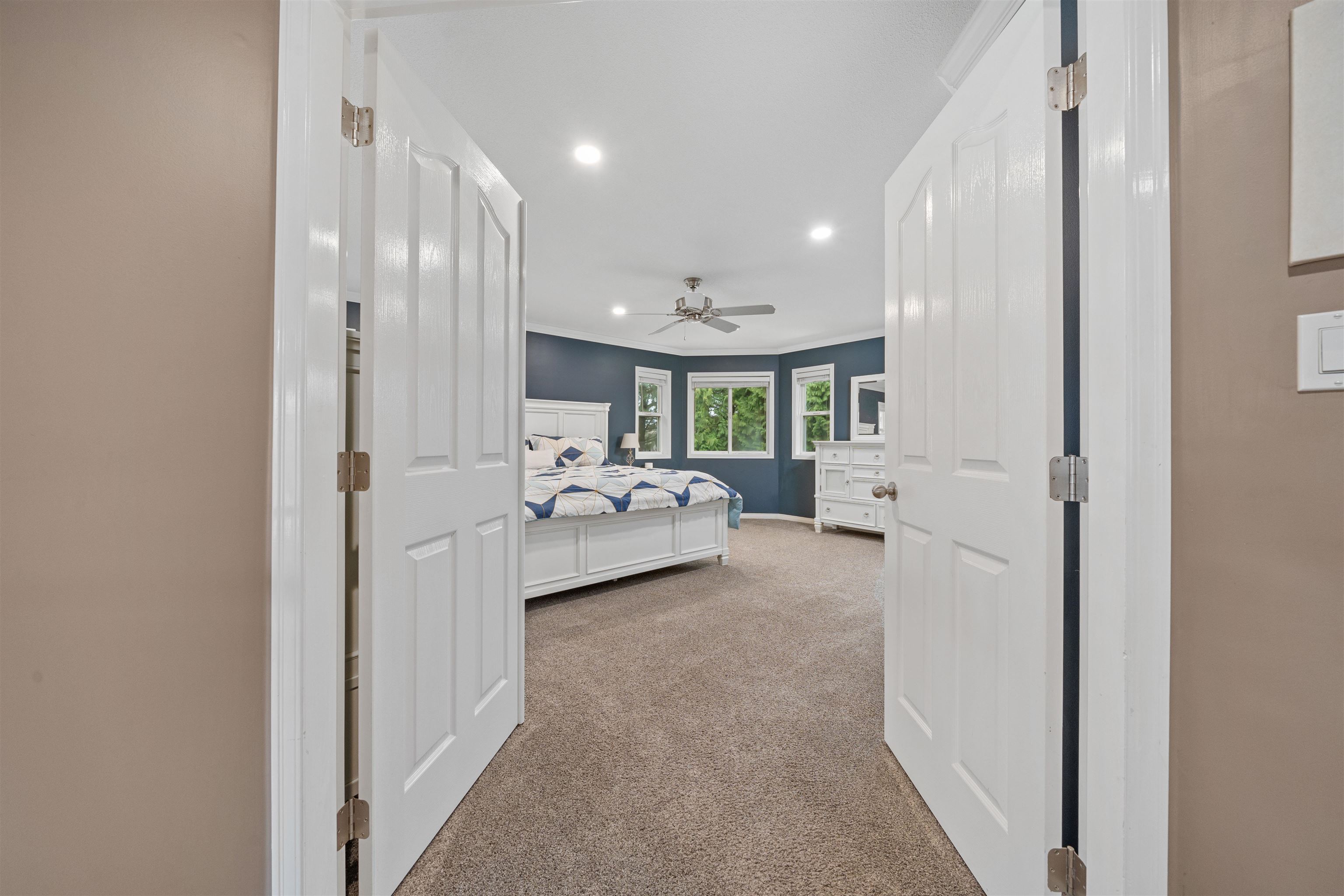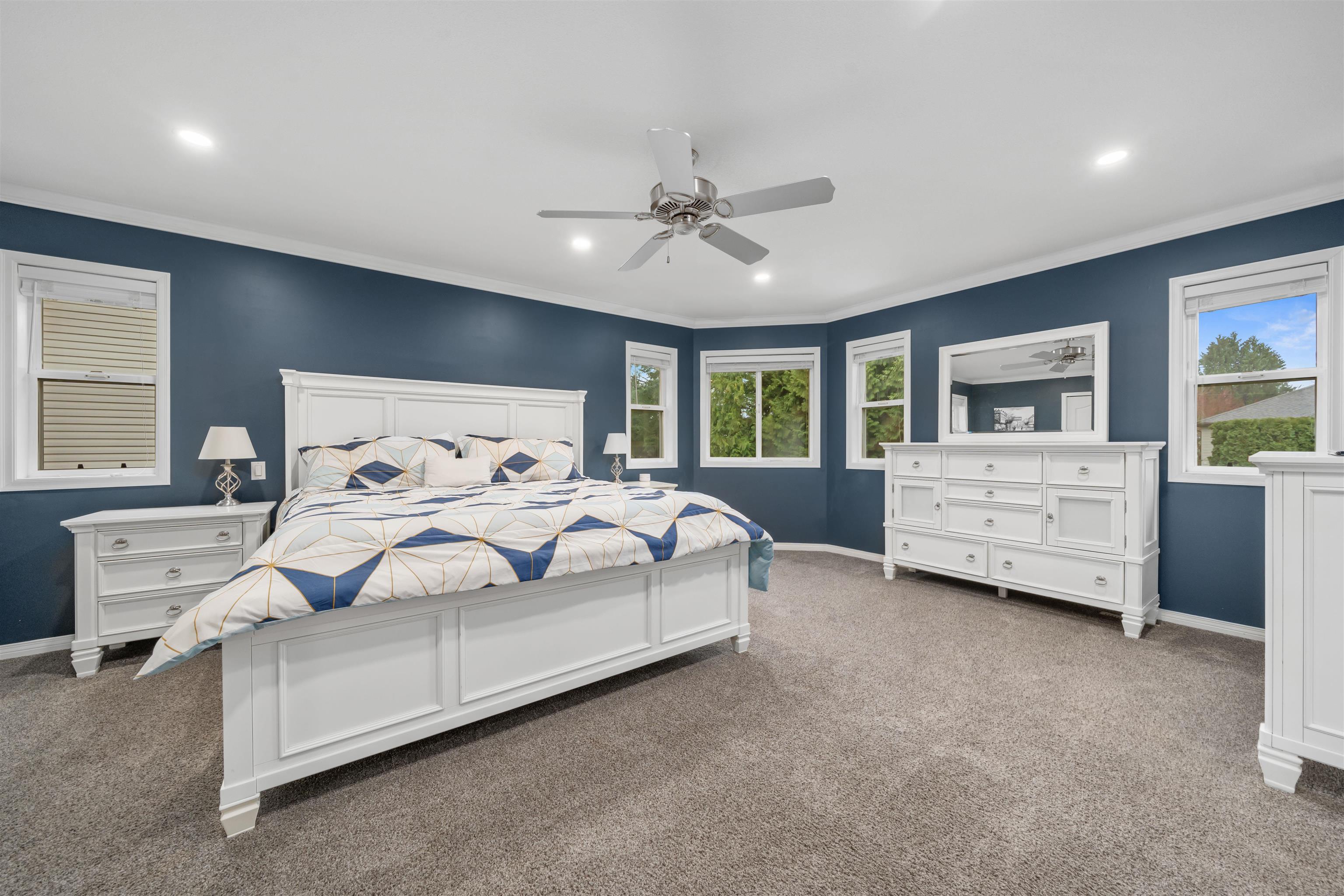 Welcome to this stunning 2,570 sq.ft, 5 bdrm/3 bath home in the sought after Steven's Meadow. The grand foyer w/ 18ft ceilings lead to the formal living & dining rooms. The open concept kitchen boasts quartz countertops, cherrywood cabinetry, tiled floors, and seamlessly flows into the family room with patio access. A main floor bdrm, powder room & laundry add convenience. The four spacious upper bdrms include a luxurious primary suite with a spa like ensuite featuring double sinks, a soaker tub, a separate...