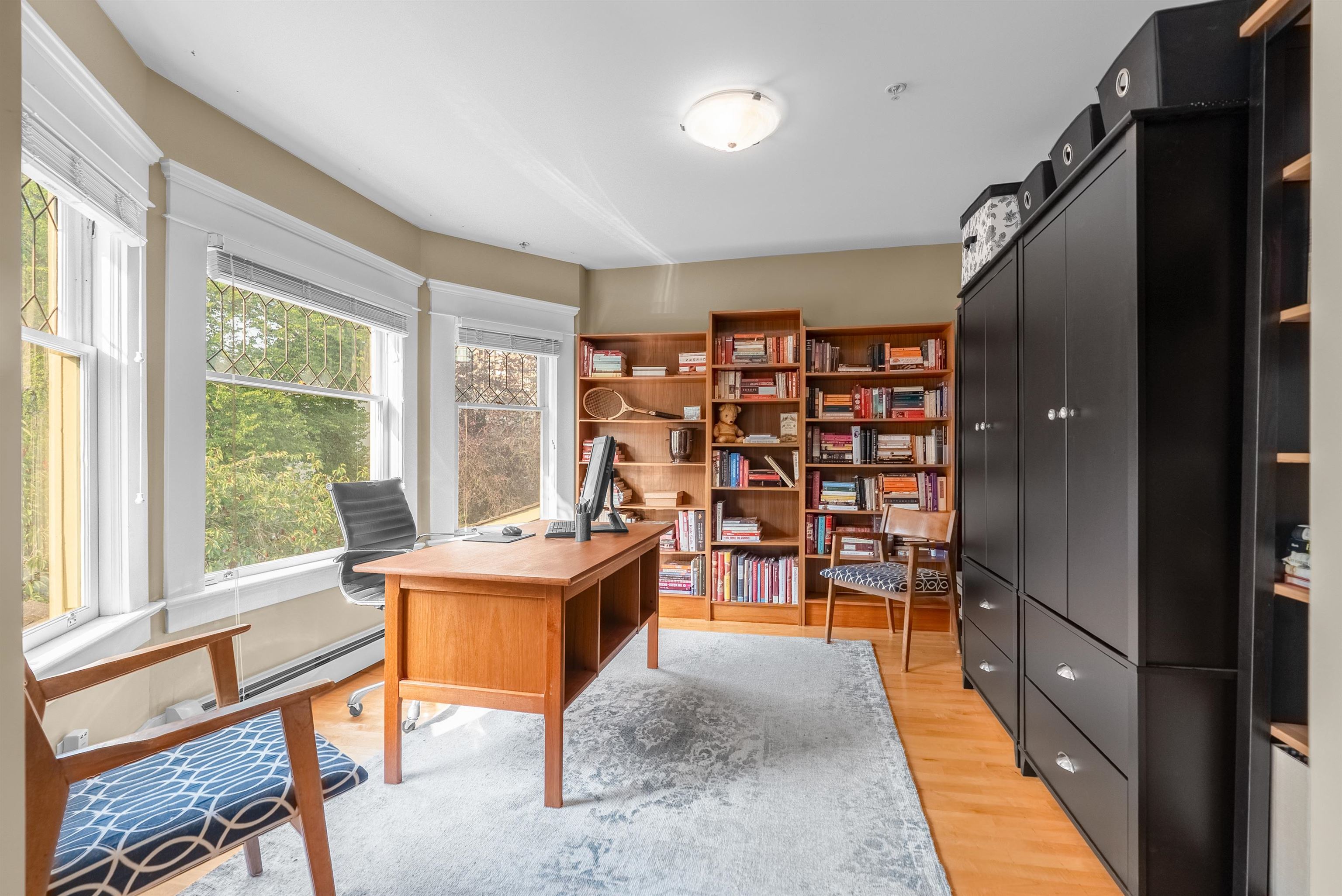 Beautiful Mole Hill Edwardian style designed character home, originally built in 1908 & painstakingly restored in 2004. This Heritage & private two bedroom and large den (easy third bedroom option) upper level townhome has a spacious & open floor plan featuring maple hardwood flooring, maple kitchen & bathrooms w/ granite counters, stainless appliances and beautiful millwork throughout including original fireplace mantel. Loads of leaded glass throughout along with three bay windows providing natural light ...