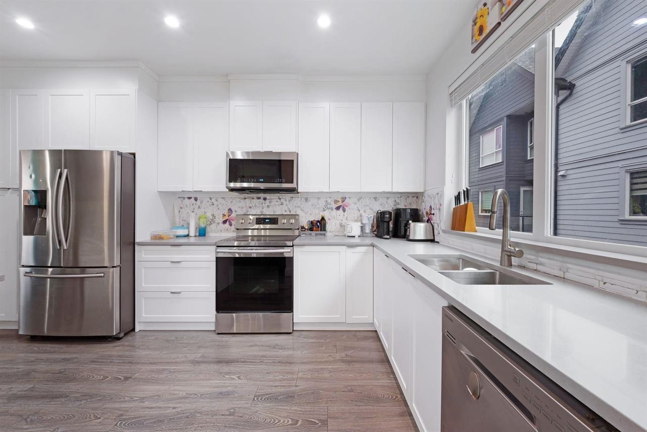 Like-new 3-bed + den townhouse in the heart of Strawberry Hill! This spacious home features 2.5 baths, an open-concept living/dining area, a gourmet kitchen, and a king-size primary bedroom with walk-in closet and ensuite. Two additional large bedrooms plus a flex/den on the lower level. Enjoy a fenced yard, side-by-side double garage, and roomy laundry area. Centrally located - steps to shopping, restaurants, Cineplex, schools, parks, transit and Scottsdale Exchange.