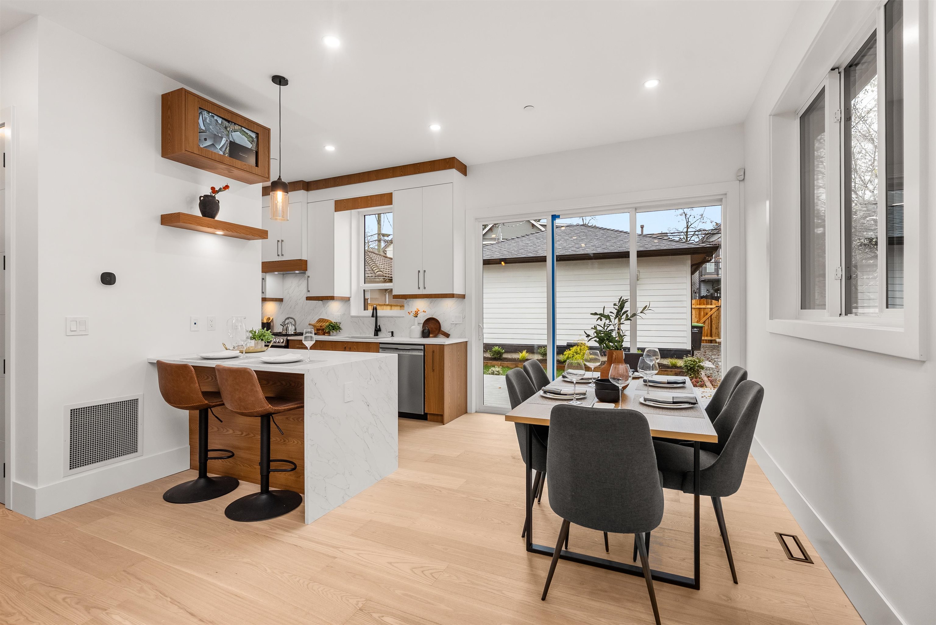 Charming new Craftsman style duplex. Luxurious 3 story modern duplex with 4 bedroom and 4 bathroom offers open concept, gorgeous interior design and lots of natural light. Spacious main floor has 10' high ceiling with beautiful Gas fireplace and wide plank Hardwood floor throughout. BOSCH appliances inside a European style kitchen with Quartz counter top. A/C, Security camera, HRV, Gas fireplace . Top floor offers great balcony where you can sit and enjoy The View. In addition to floor area an extra 610 SQF...