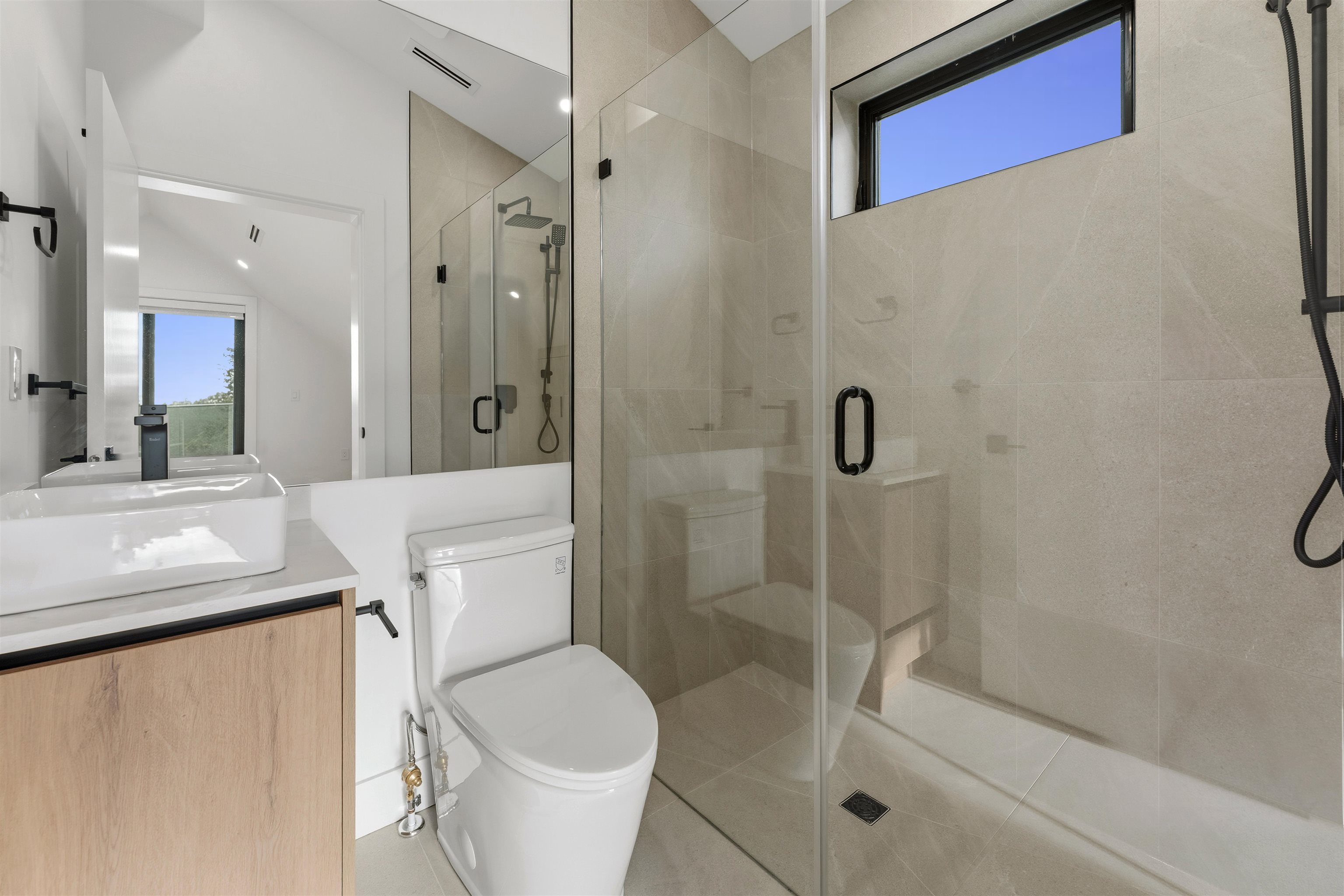 REAR UNIT — A stunning new duplex in Kerrisdale offering 1624 sq. ft. of modern living over three levels. The open-concept design connects the living, dining, and kitchen spaces with sleek, high quality finishes throughout. Three bedrooms each include a private bathroom, complemented by an additional powder room. Located close to shops, dining, and schools, this home combines contemporary luxury design with everyday convenience.