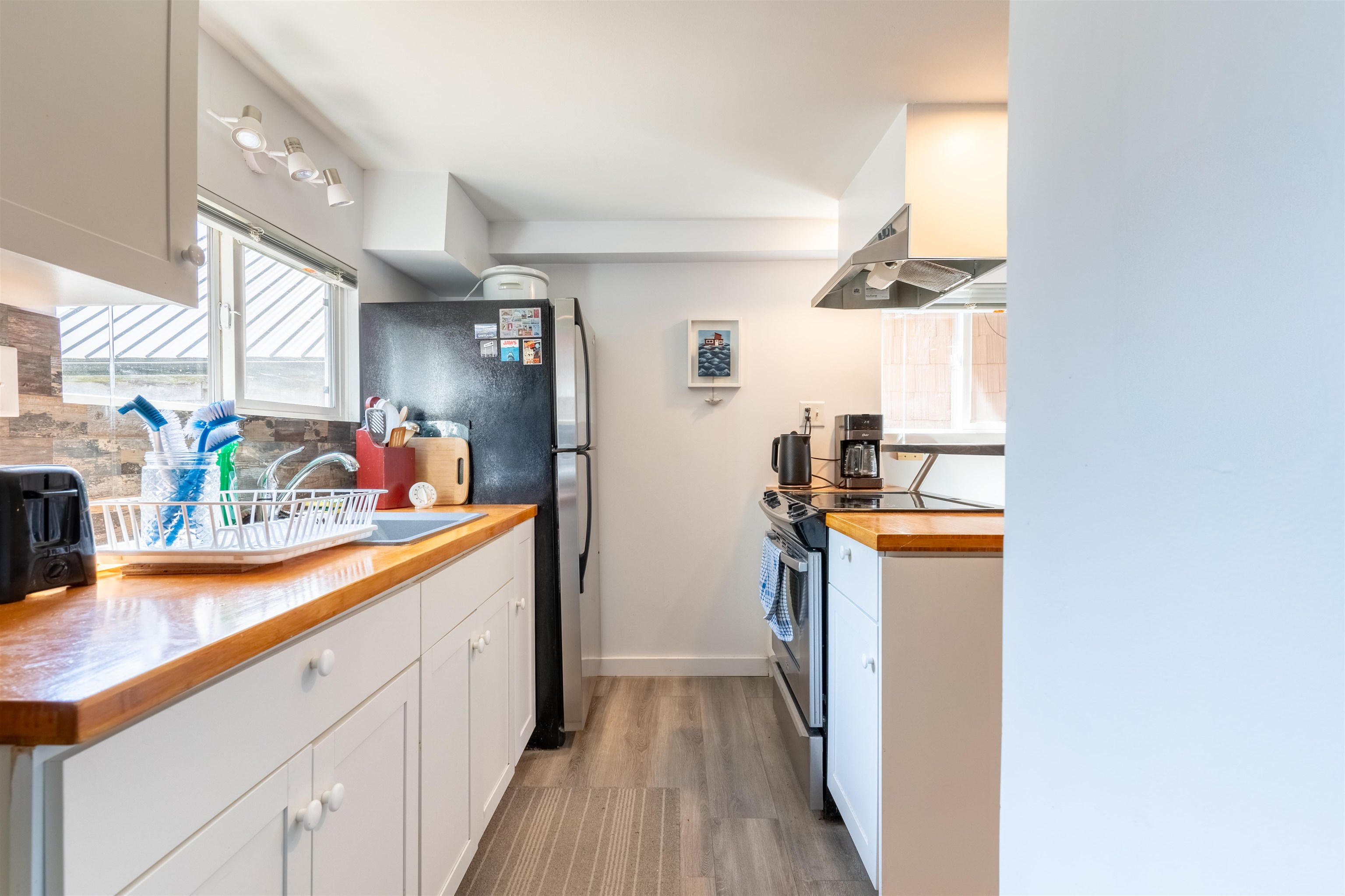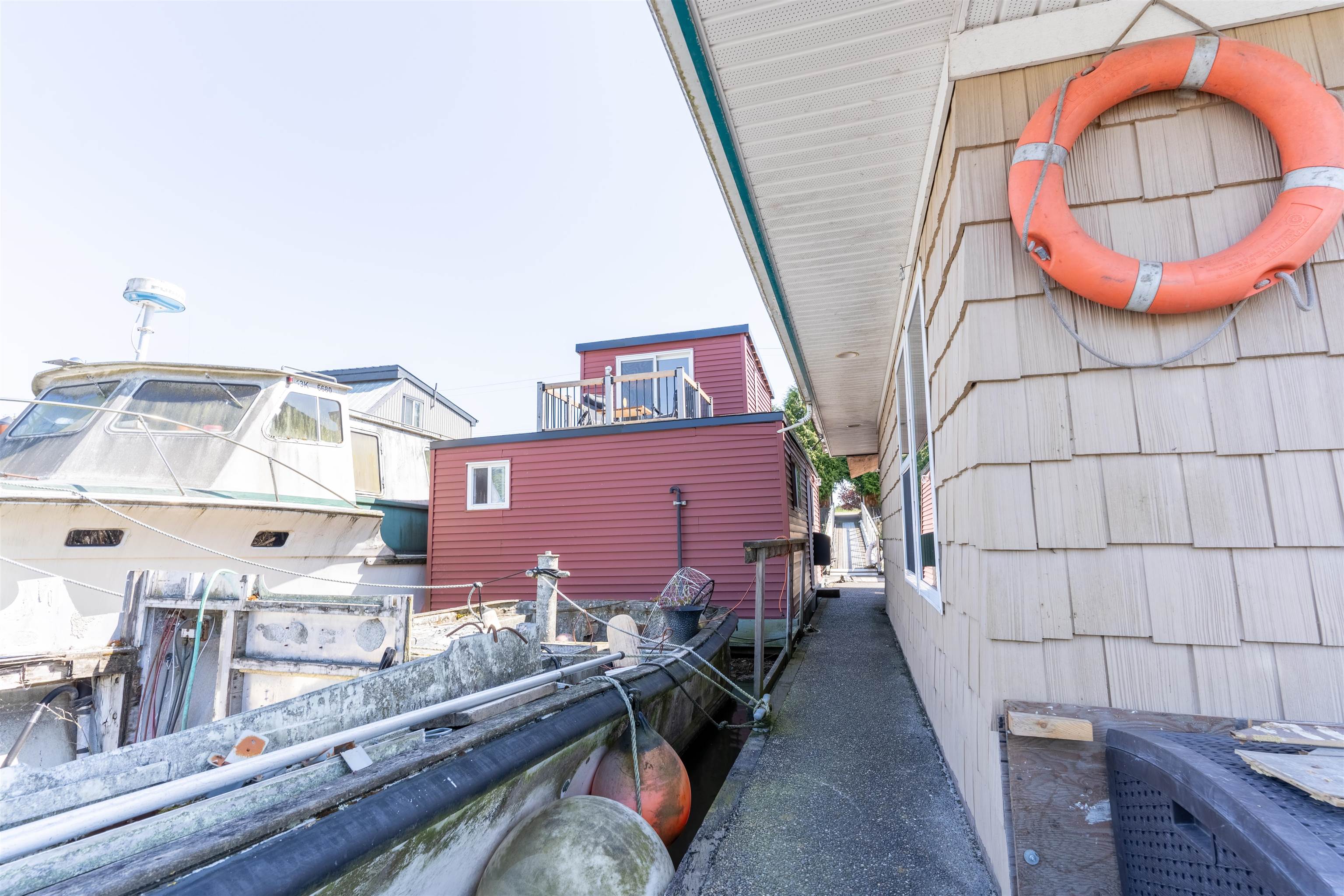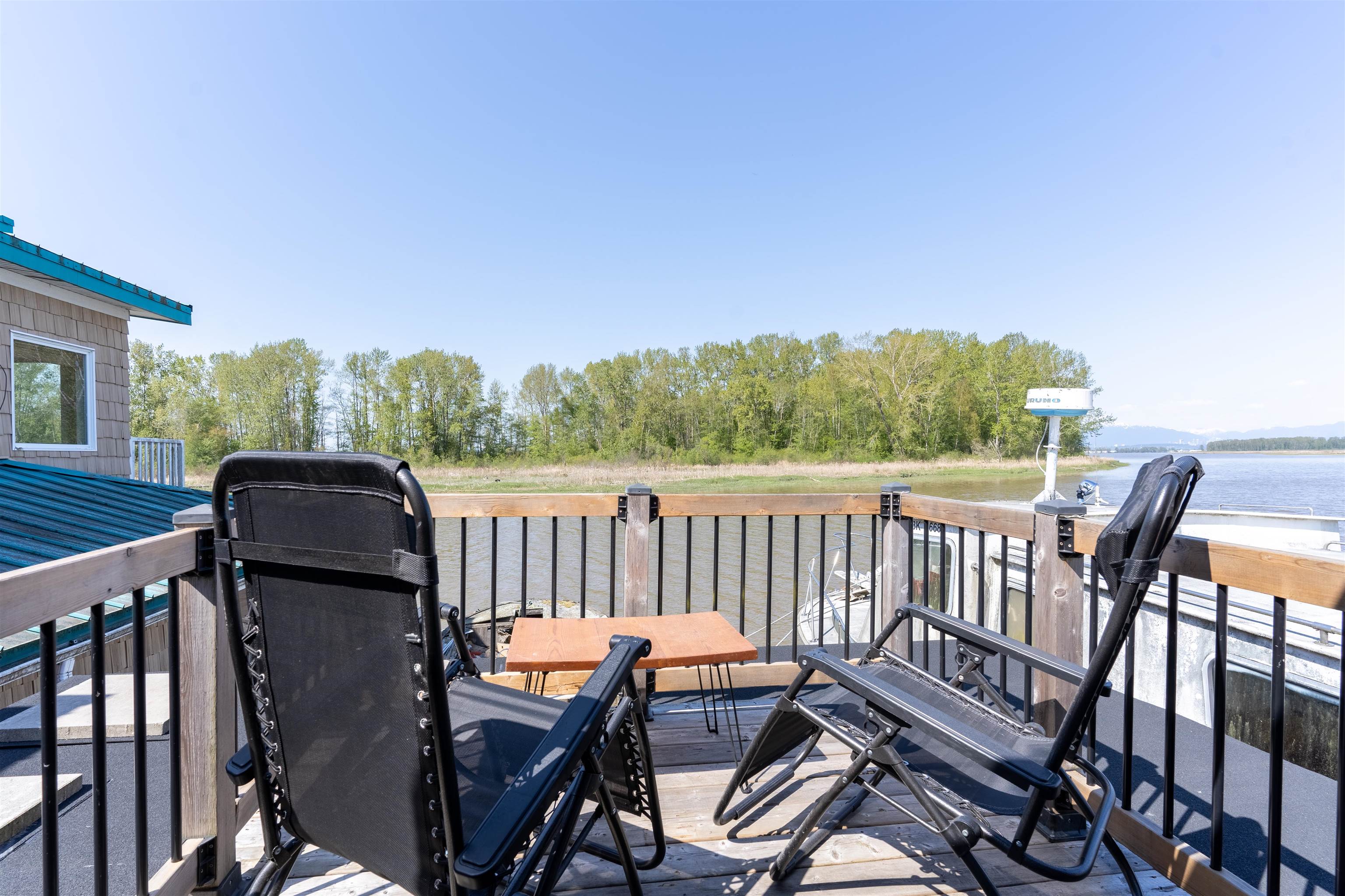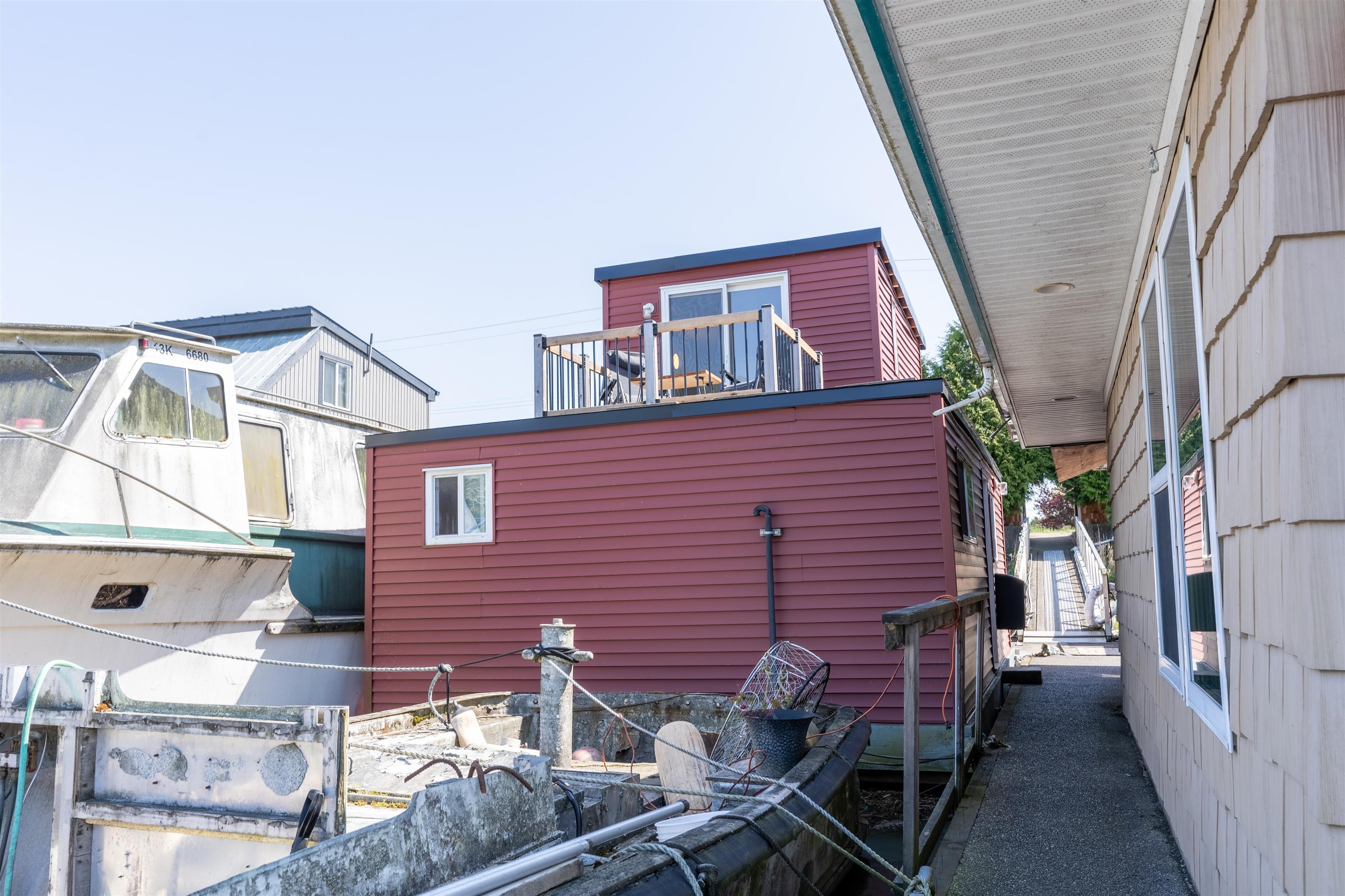 Live a unique waterfront lifestyle in the charming town of Port Guichon, Ladner. This updated float home is moored in a private marina with only 2 homes, with a charming roof top patio where you can watch the wildlife against a backdrop of the city and mountains in the distance. City services are connected and this 1 bedroom 1 bathroom home has been updated with a new roof, roof top patio, hard surface flooring throughout, and a new hot water tank in 2022. Monthly moorage $1000.