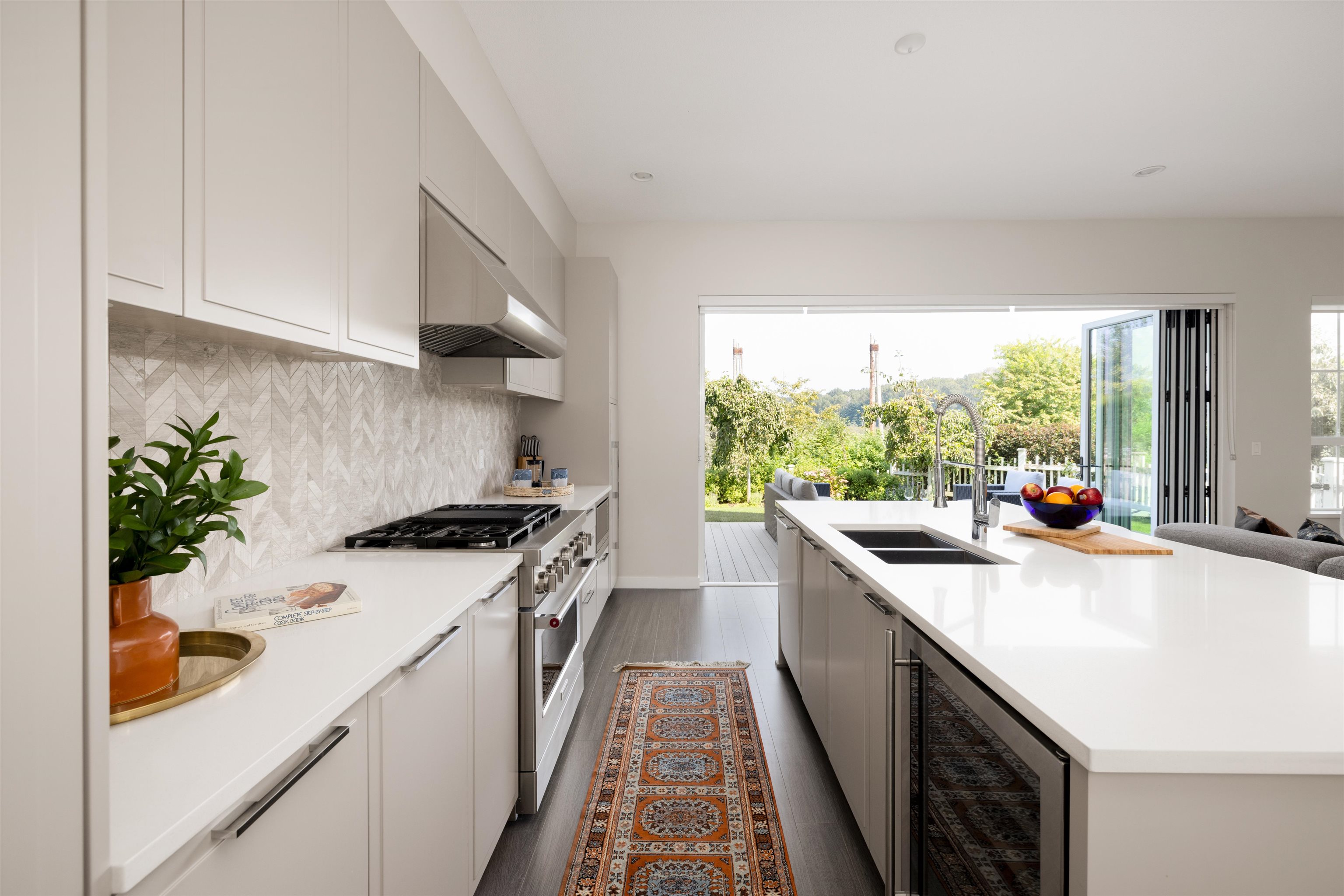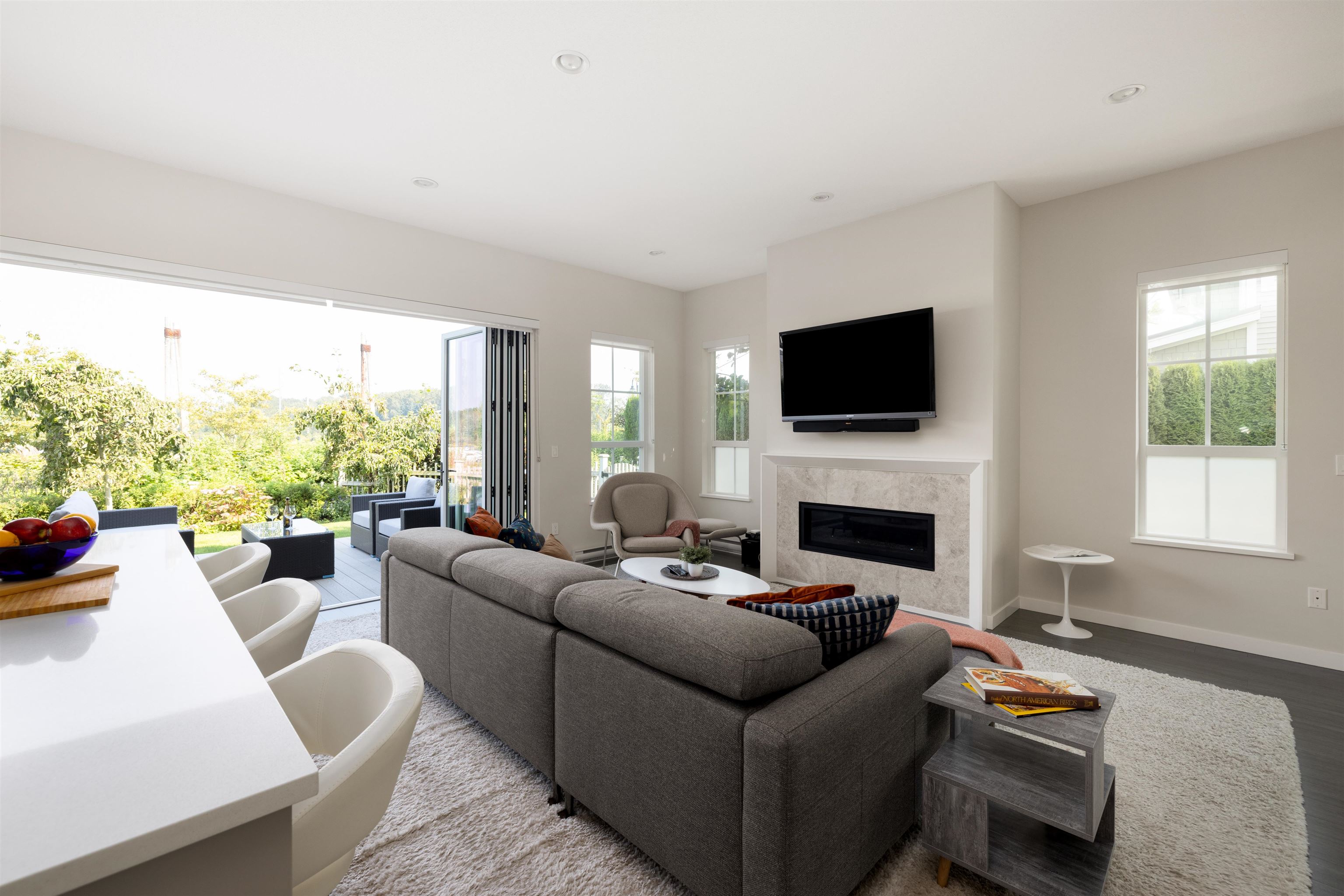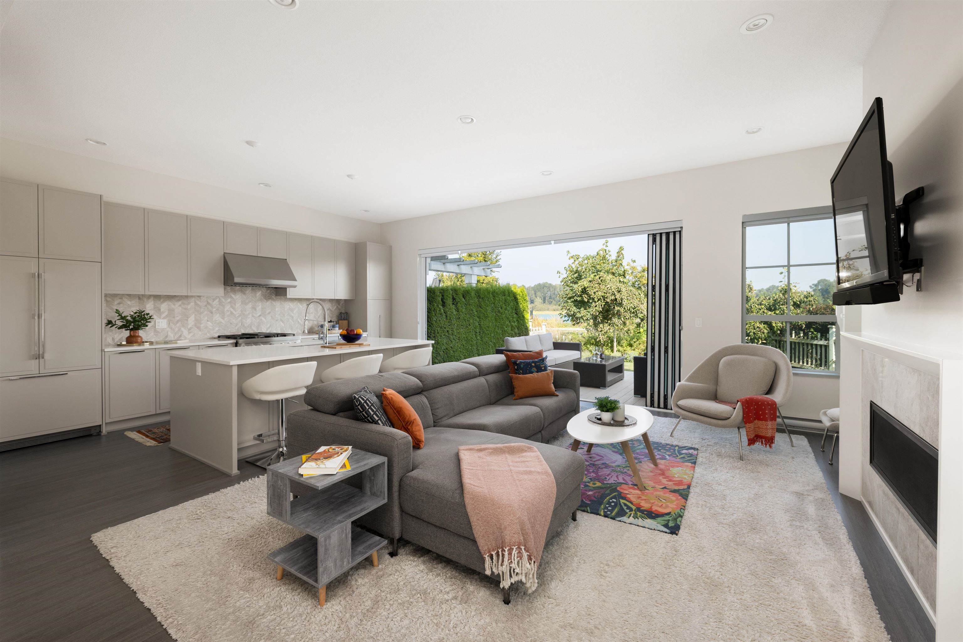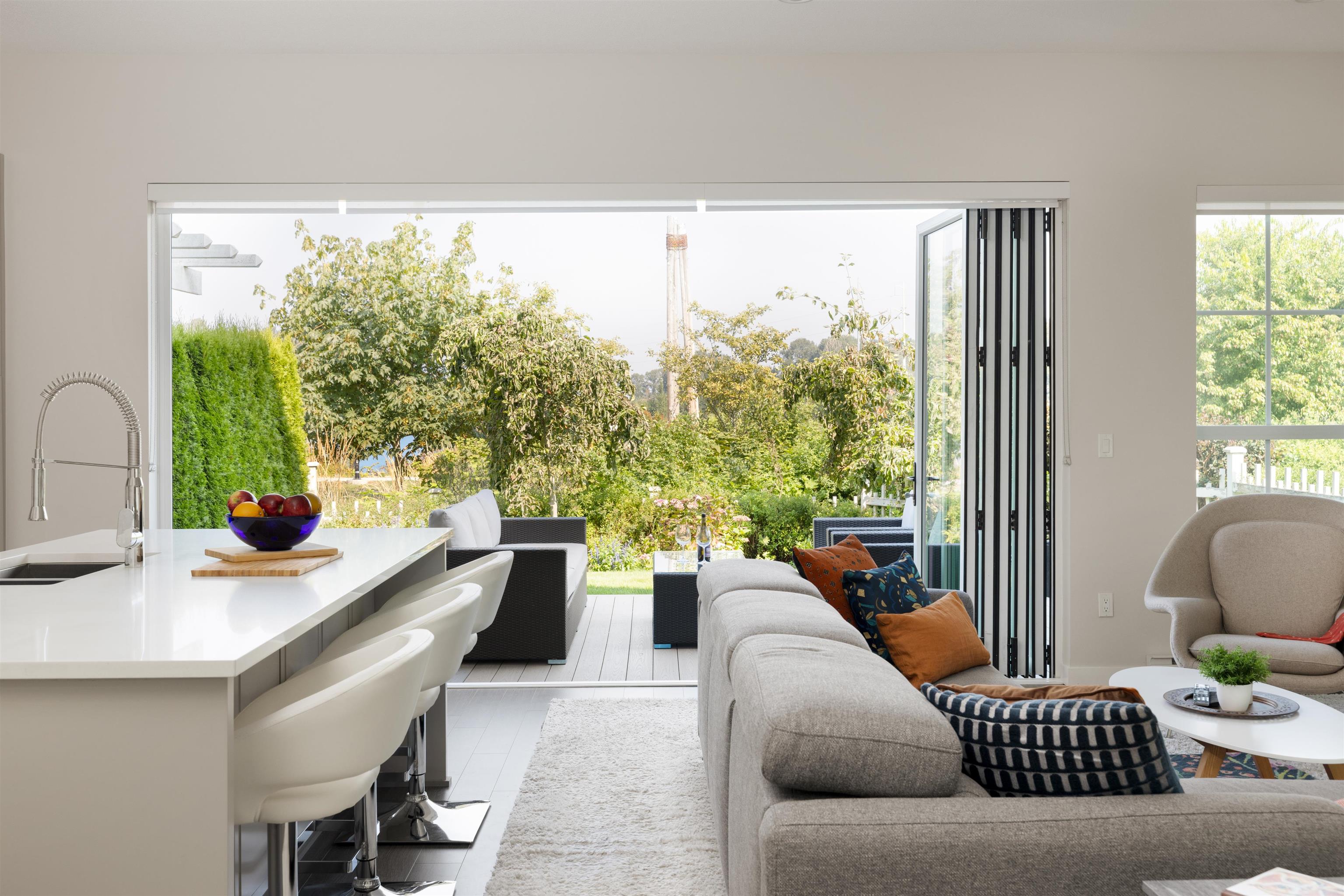 Offering stunning, peaceful views of the river and marina, this duplex home provides luxurious finishes and an easy-care setting! Open plan, with soaring ceilings and huge window areas for views and ample natural light. Custom kitchen offers integrated appliances including wine fridge, gas cooktop, huge central island, living/dining with cozy gas fireplace. Eclipse doors open this living space to a private patio and yard. Great for entertaining. 4 bedrooms+ 3.5 bathrooms up, along with laundry; open landing...