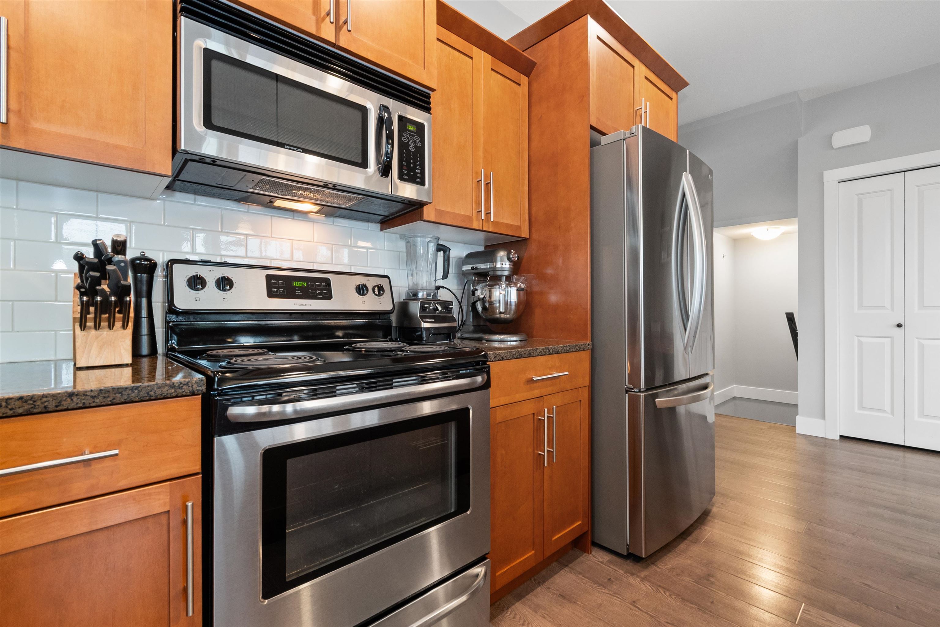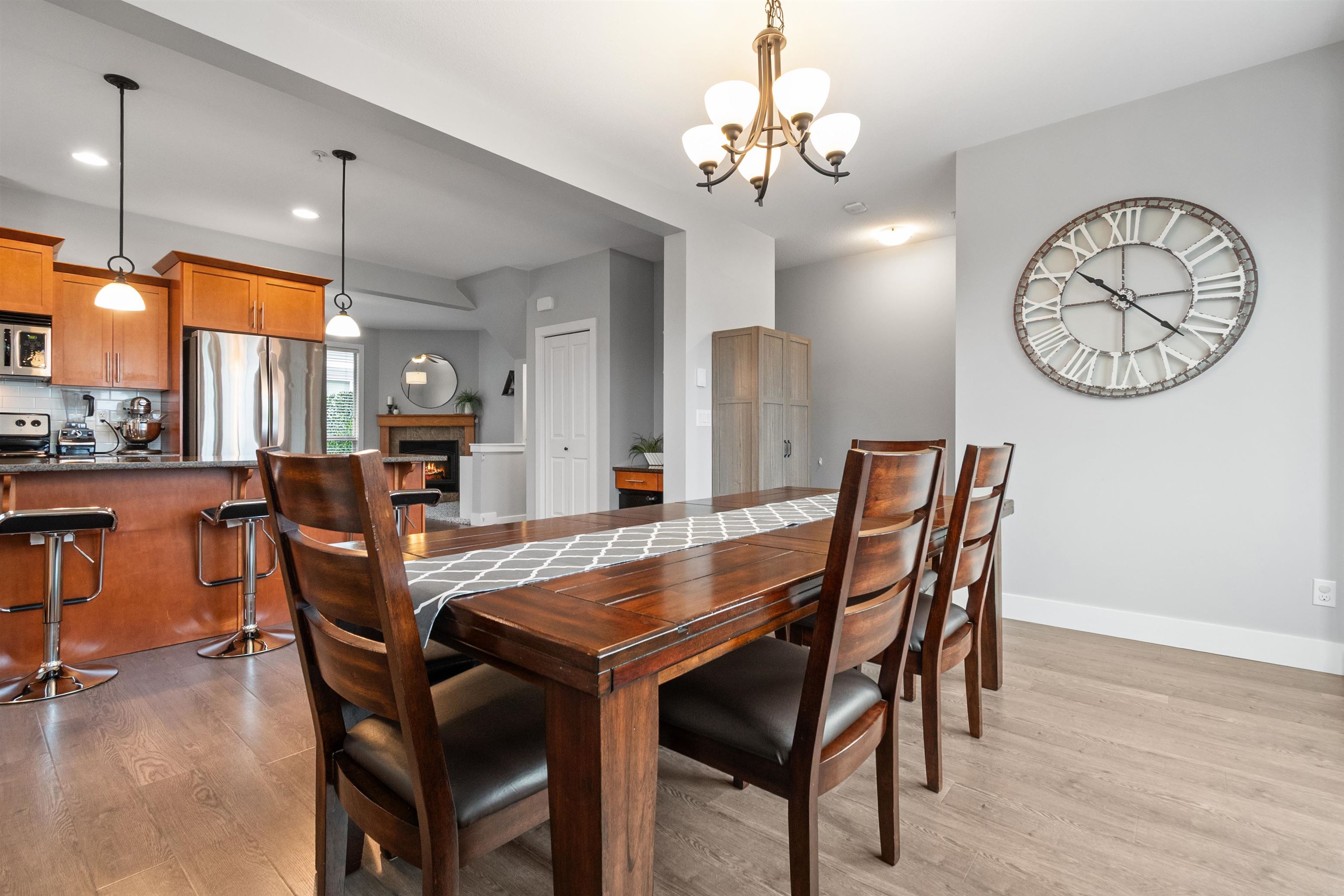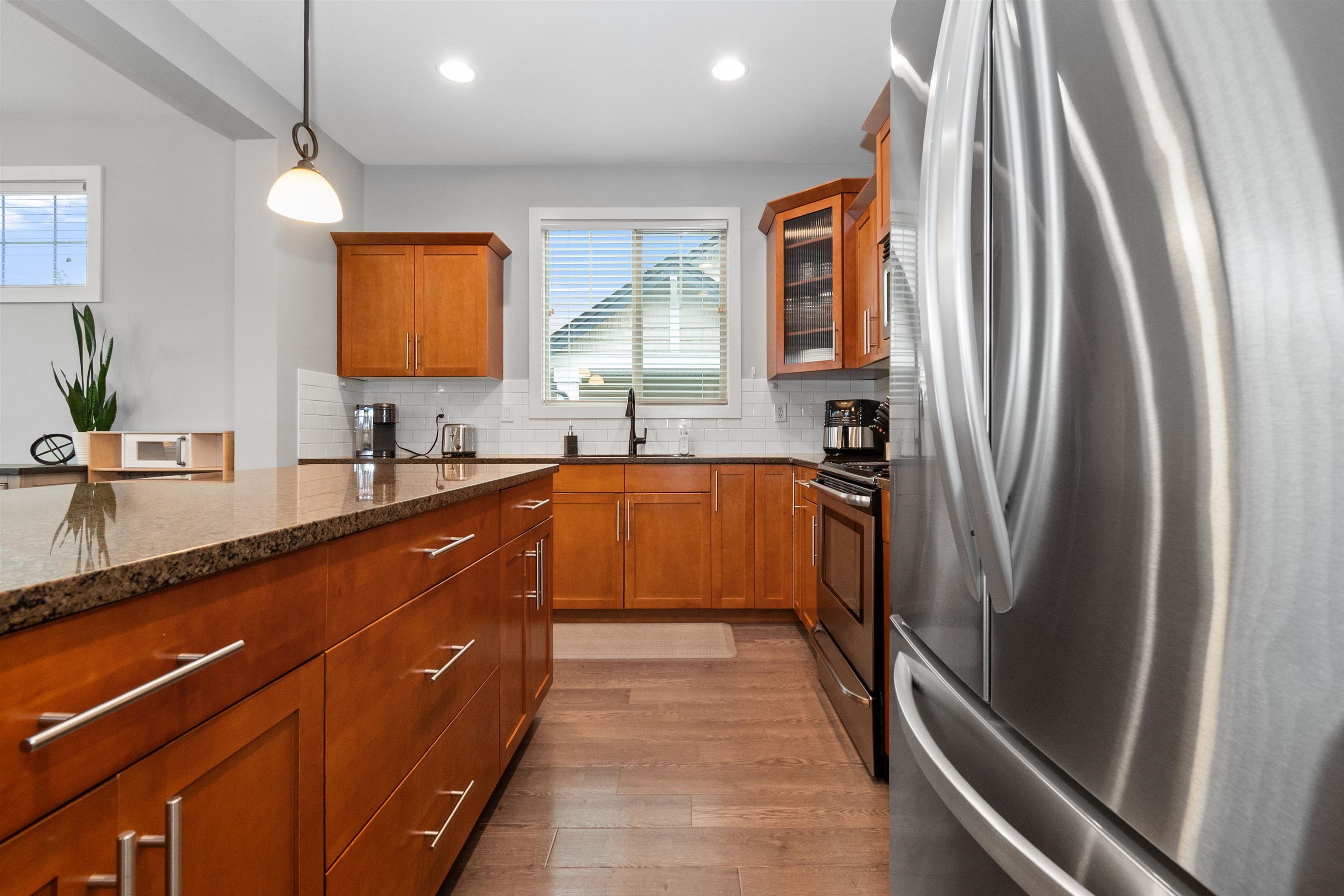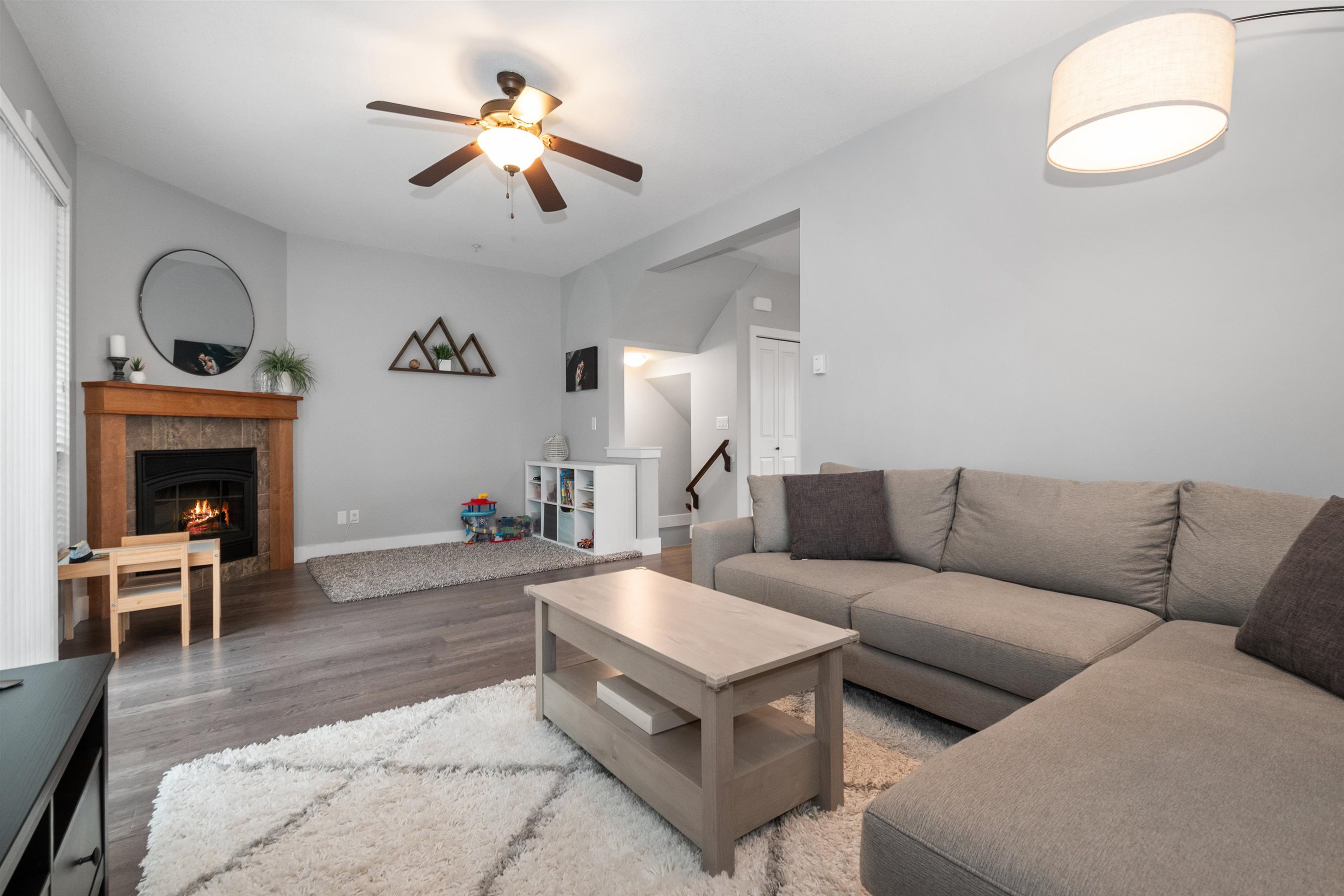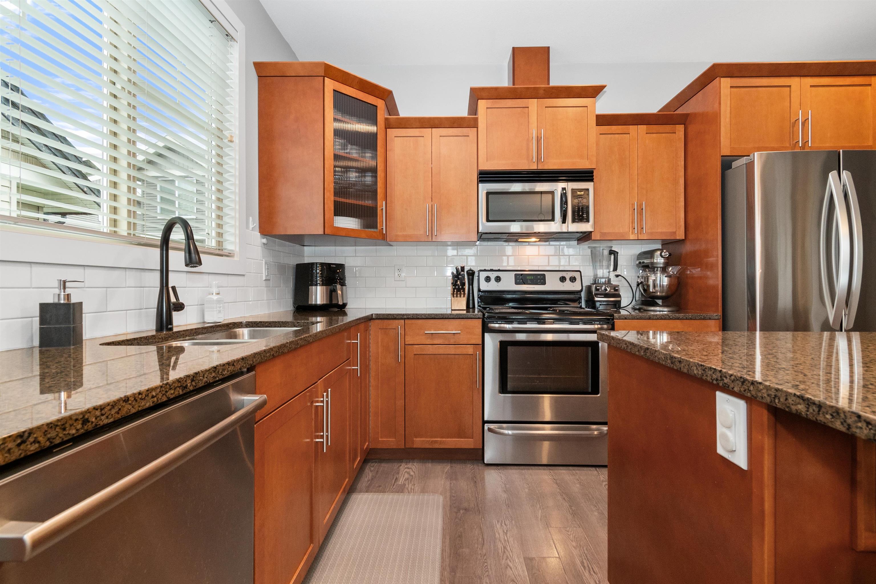 Pristine, bright END-unit townhome offering over 2,027sqft in convenient central location. Main floor features 9’ ceilings, wide plank laminate flooring, a spacious kitchen w/ample cabinetry, large island, stainless steel appliances & expansive dining area + powder room. Plus a huge lvgrm w/elec fireplace, + access to balcony! Upstairs, enjoy an oversized primary bdrm w/ensuite & walk-in closet, laundry(new W/D) & 2 big bdrms w/full bath. The lower level incl lrg recrm (4th bdrm?) w/4-piece bath & sliders t...
