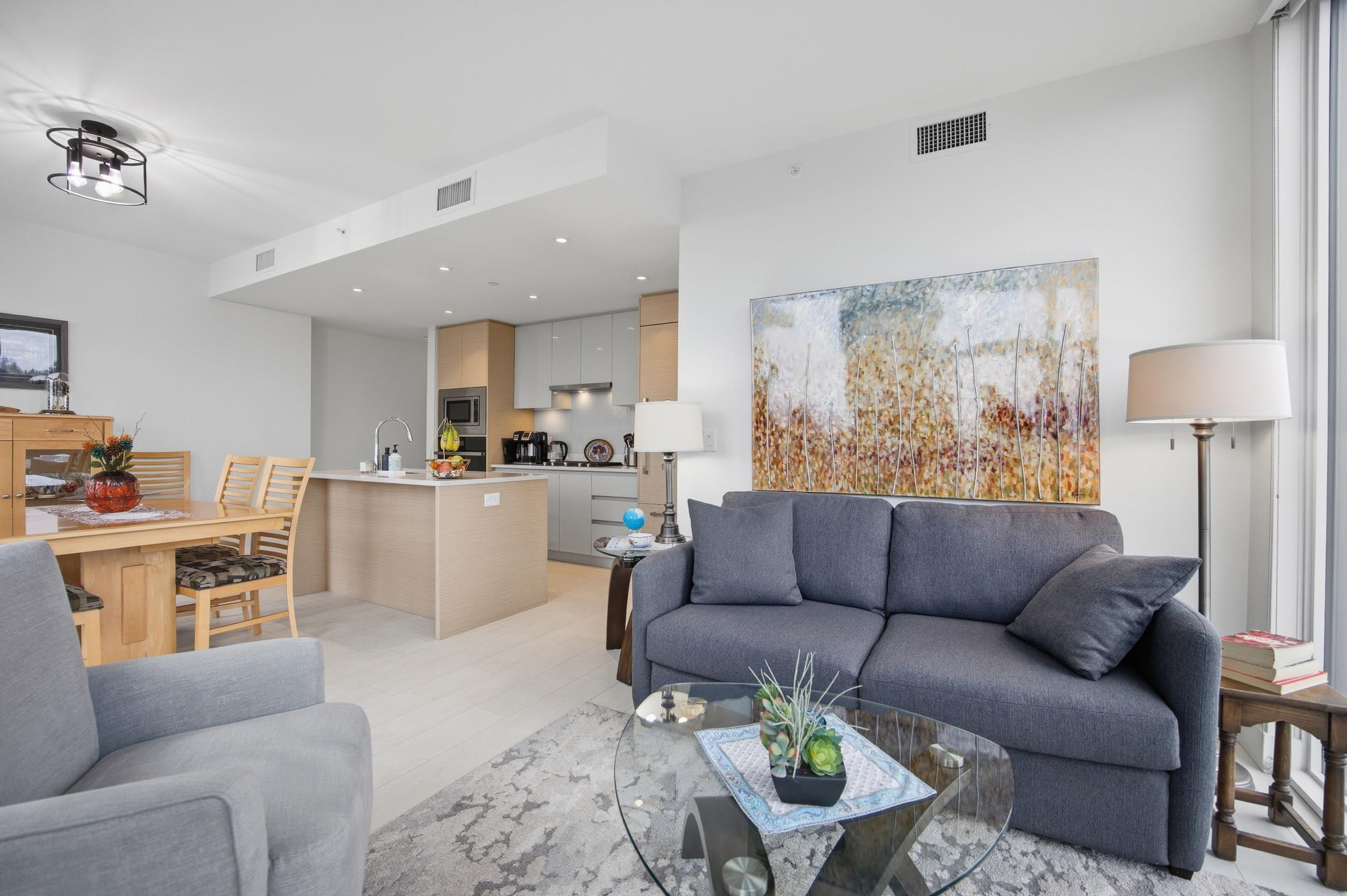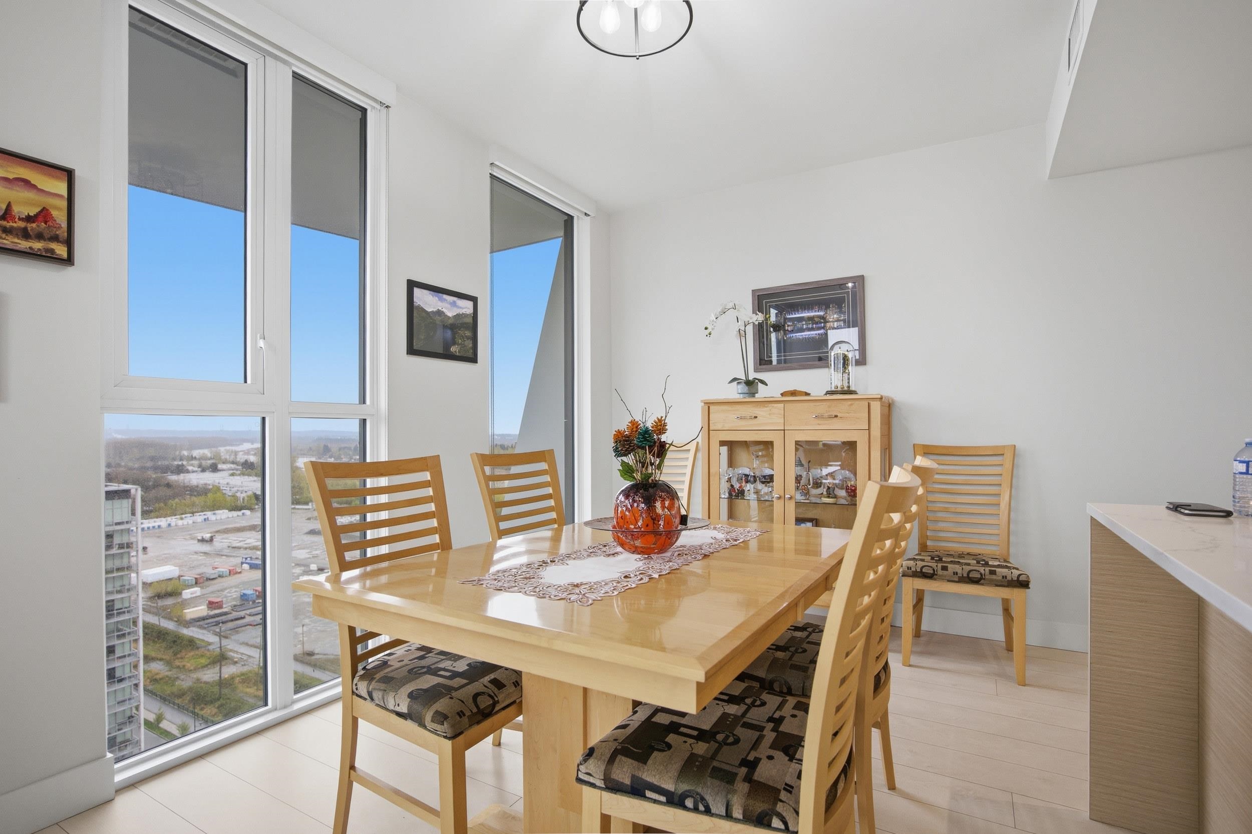 Rare 3-Bed Corner Unit at Avalon 3 Experience elevated living in this pristine UPPER CORNER UNIT at Avalon 3. Boasting breathtaking 180-DEGREE UNOBSTRUCTED VIEWS of the Fraser River and Mt. Baker from TWO PRIVATE BALCONIES, this rare 3-BED, 3-BATH residence is designed for modern comfort. The immaculate interior features an OPEN-CONCEPT CHEF’S KITCHEN with a large island, PREMIUM STAINLESS STEEL APPLIANCES, and a GAS STOVE. Stay cool with INTEGRATED A/C and floor-to-ceiling windows. Includes 2 PARKING STALL...