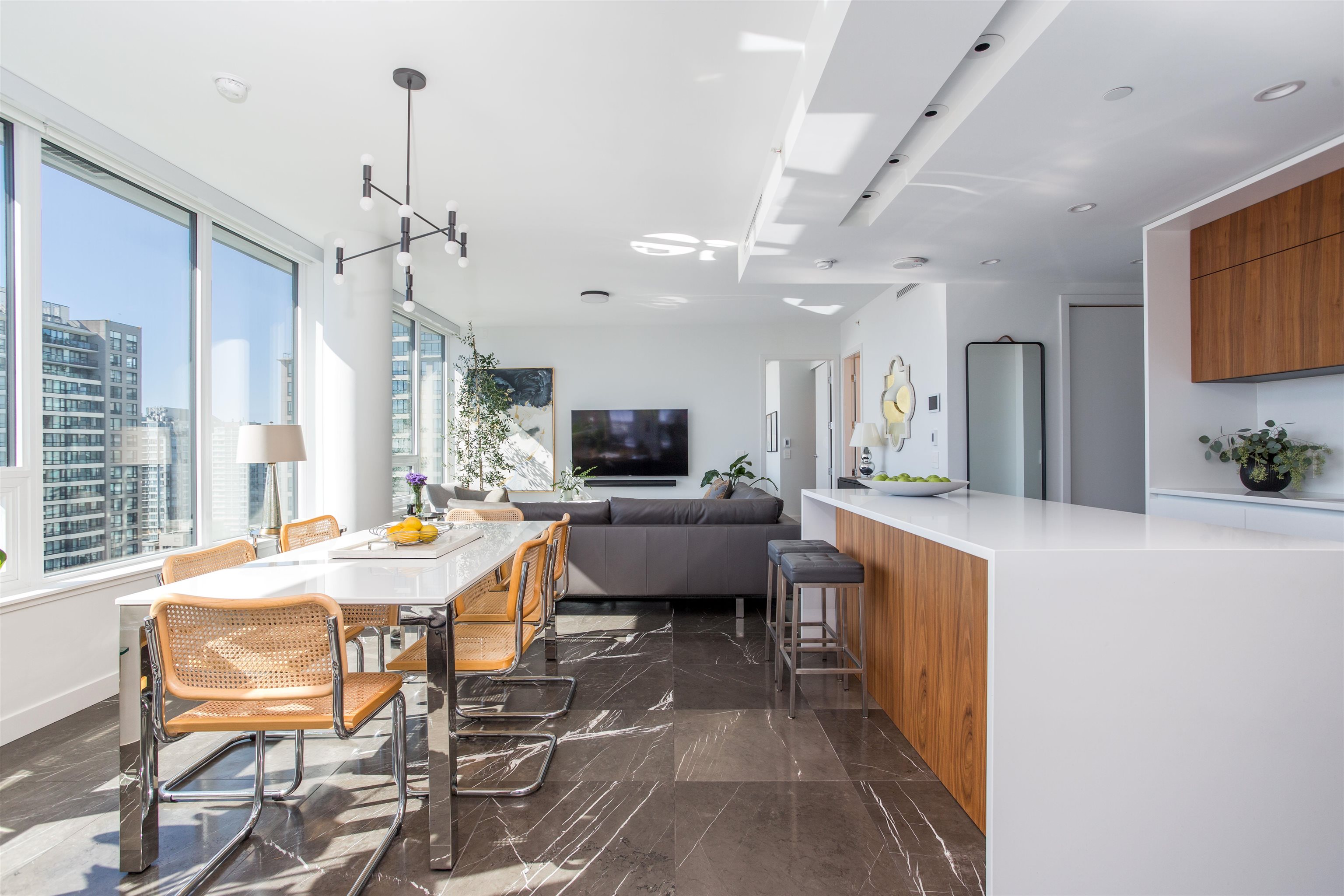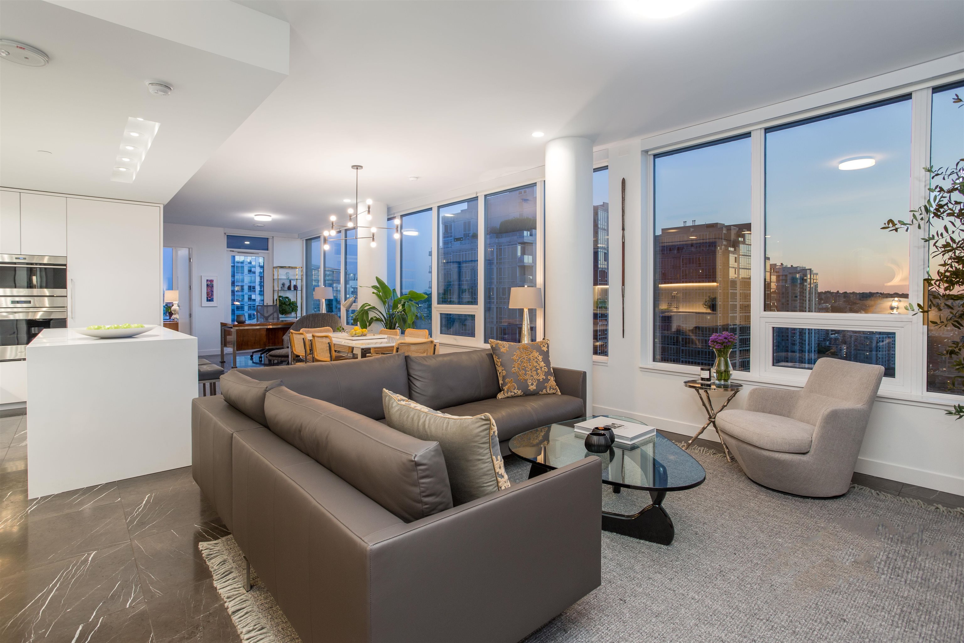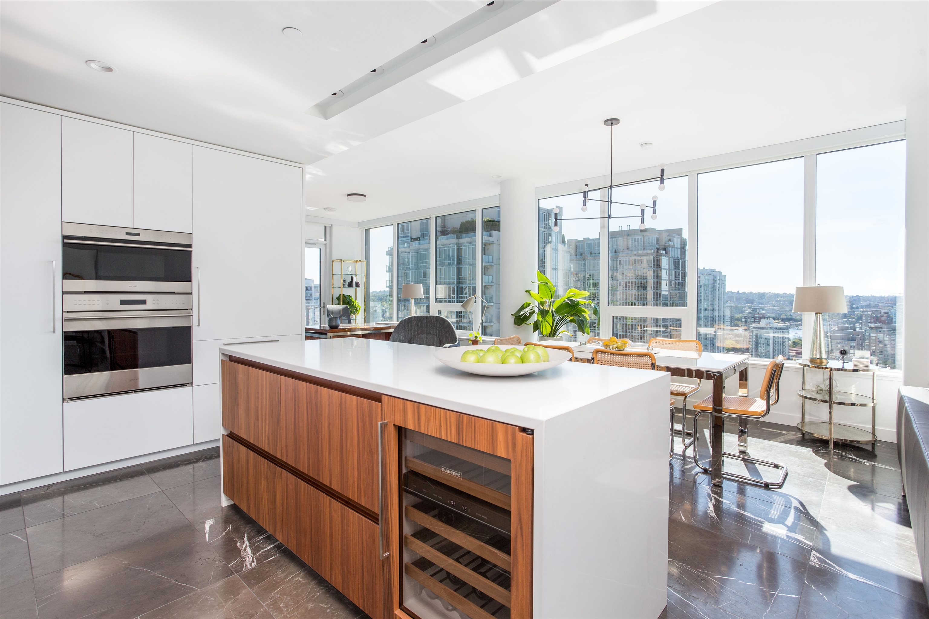 Premium residence at The Smithe by Boffo Developments. This preferred plan boasts views of False Creek, Yaletown, and the mountains. Highlights include Savant home automation, electronic window blinds, and beautiful graphite marble flooring. The kitchen features walnut and lacquer cabinetry by Binova, along with integrated Wolf and Sub-Zero appliances. Two primary bedrooms, each with wardrobes by Kiko Home Elements, luxurious ensuite marble-clad bathrooms, and a 3rd full bathroom. This exceptional boutique ...