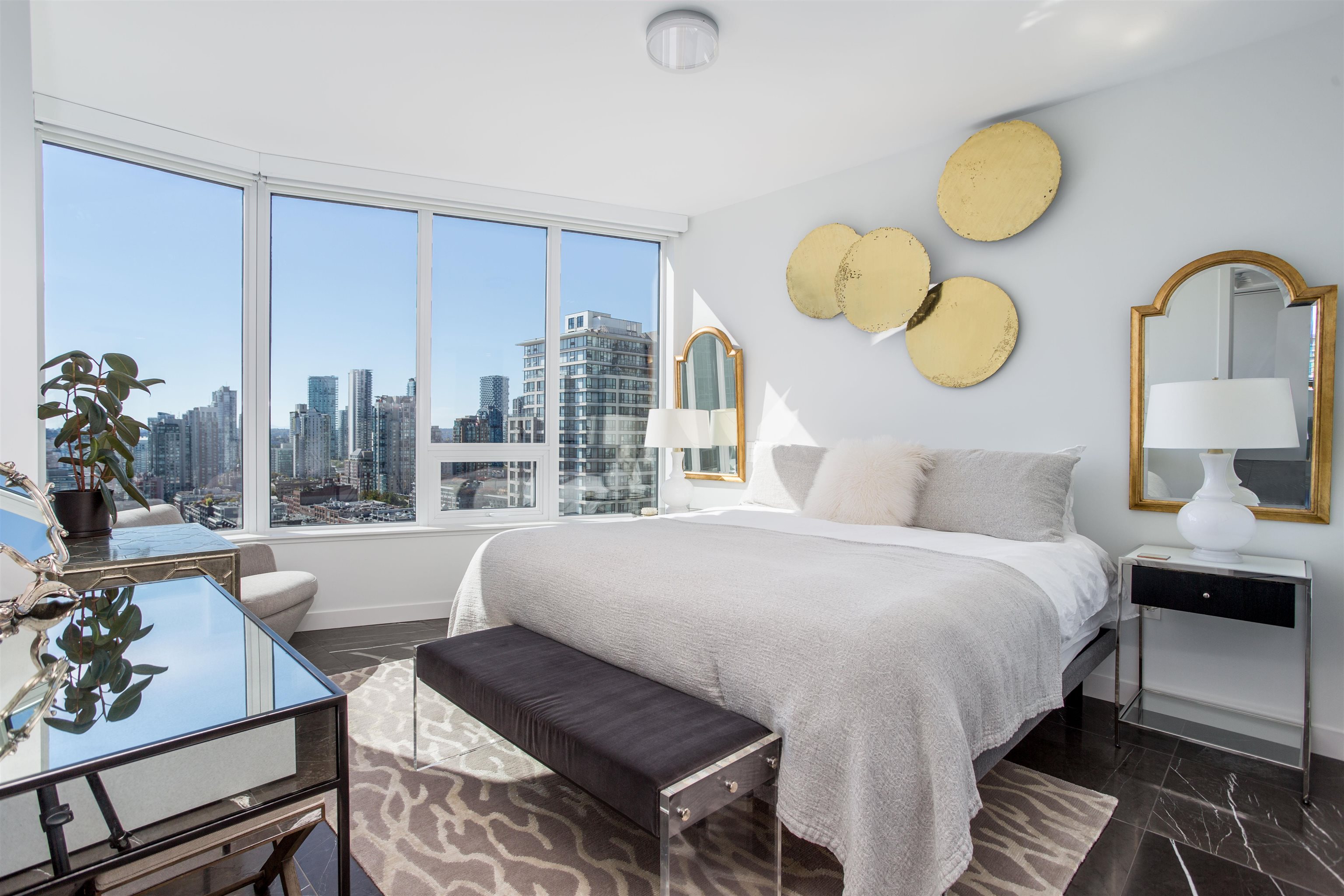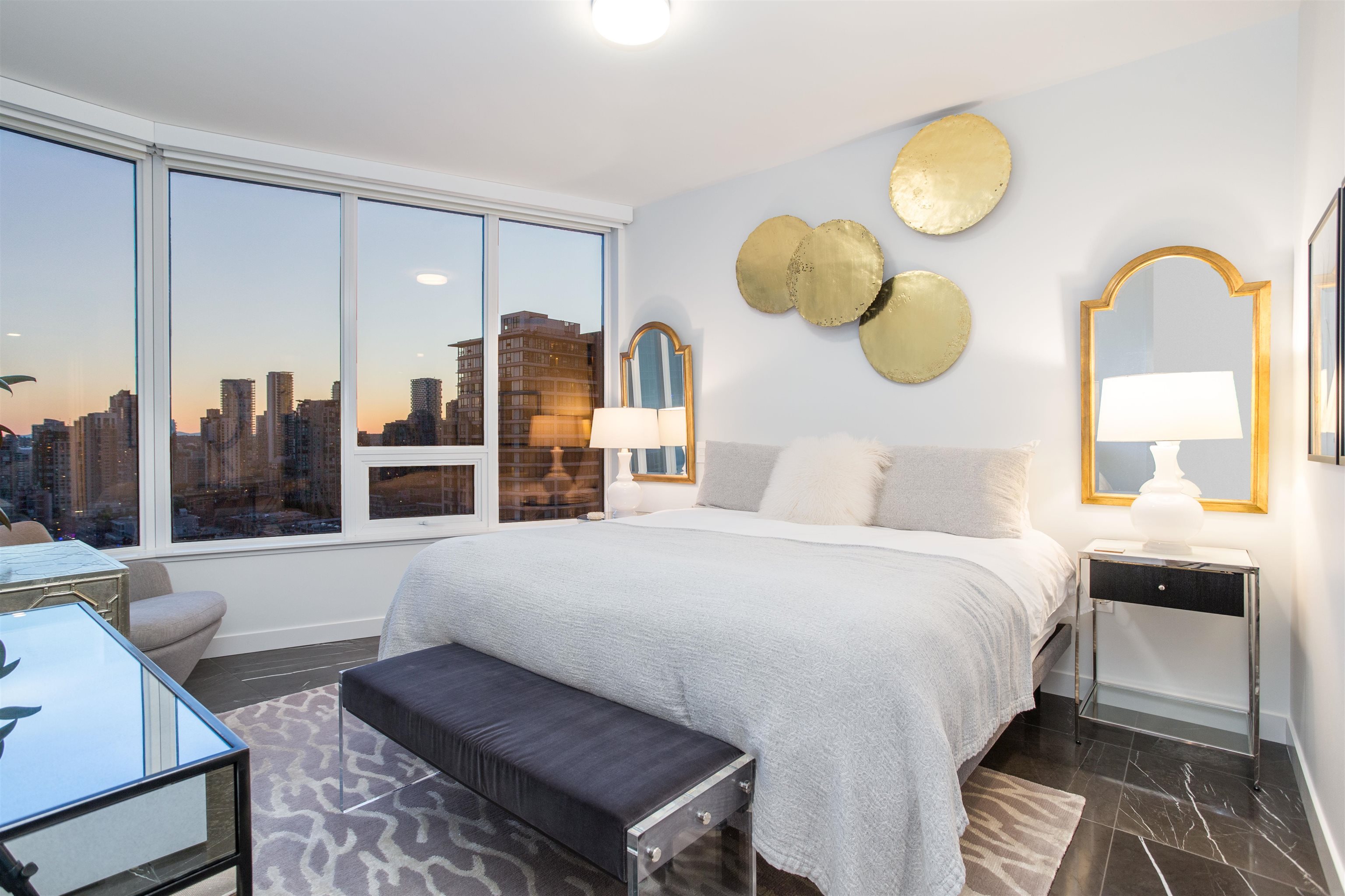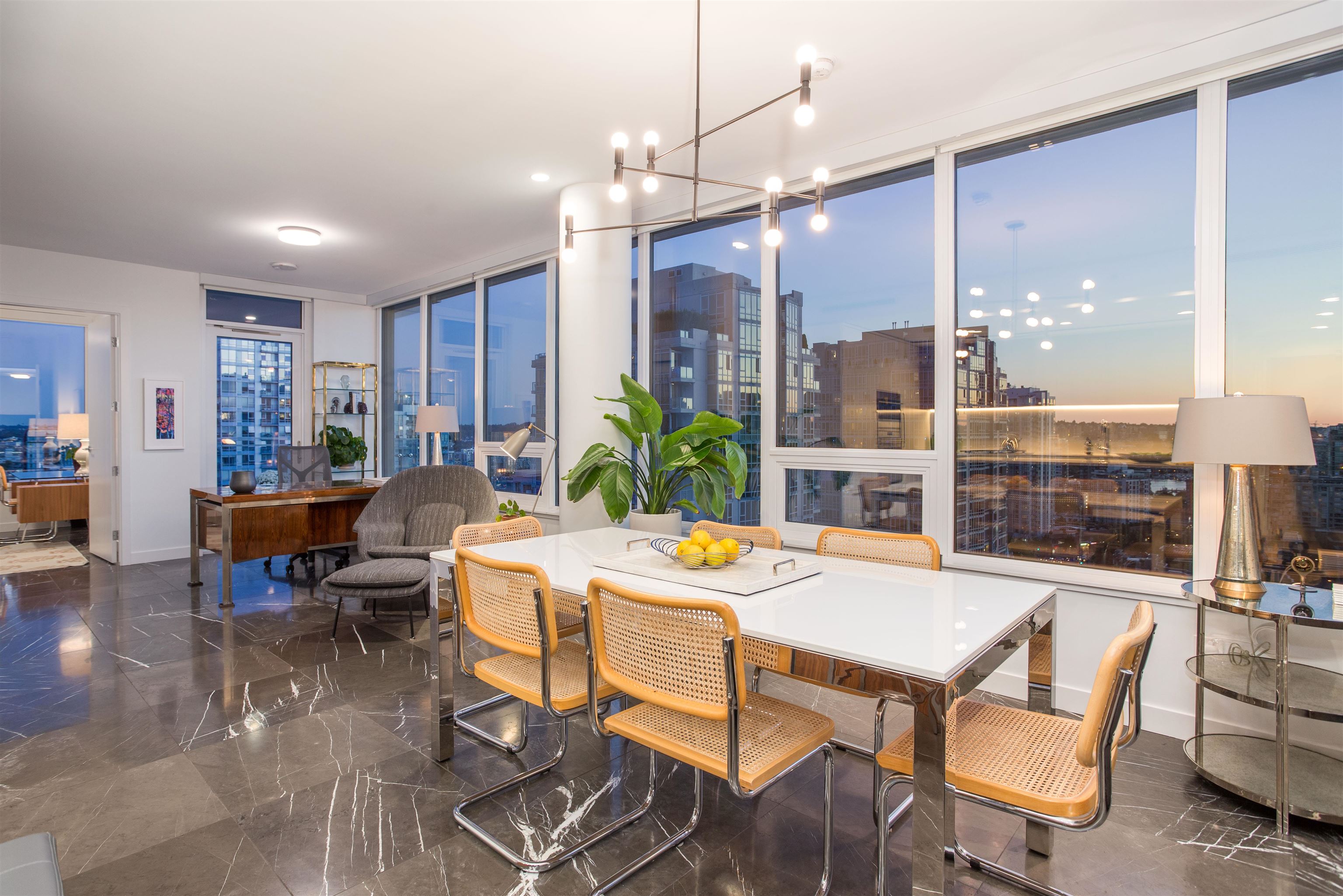 Premium residence at The Smithe by Boffo Developments. This preferred plan boasts views of False Creek, Yaletown, and the mountains. Highlights include Savant home automation, electronic window blinds, and beautiful graphite marble flooring. The kitchen features walnut and lacquer cabinetry by Binova, along with integrated Wolf and Sub-Zero appliances. Two primary bedrooms, each with wardrobes by Kiko Home Elements, luxurious ensuite marble-clad bathrooms, and a 3rd full bathroom. This exceptional boutique ...