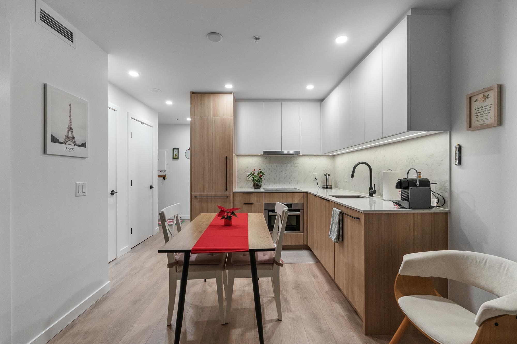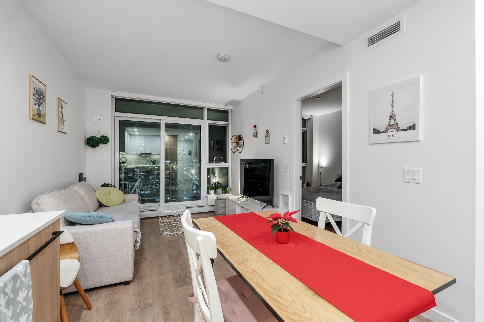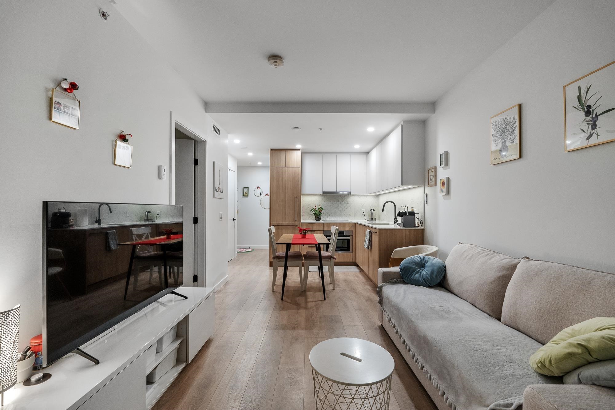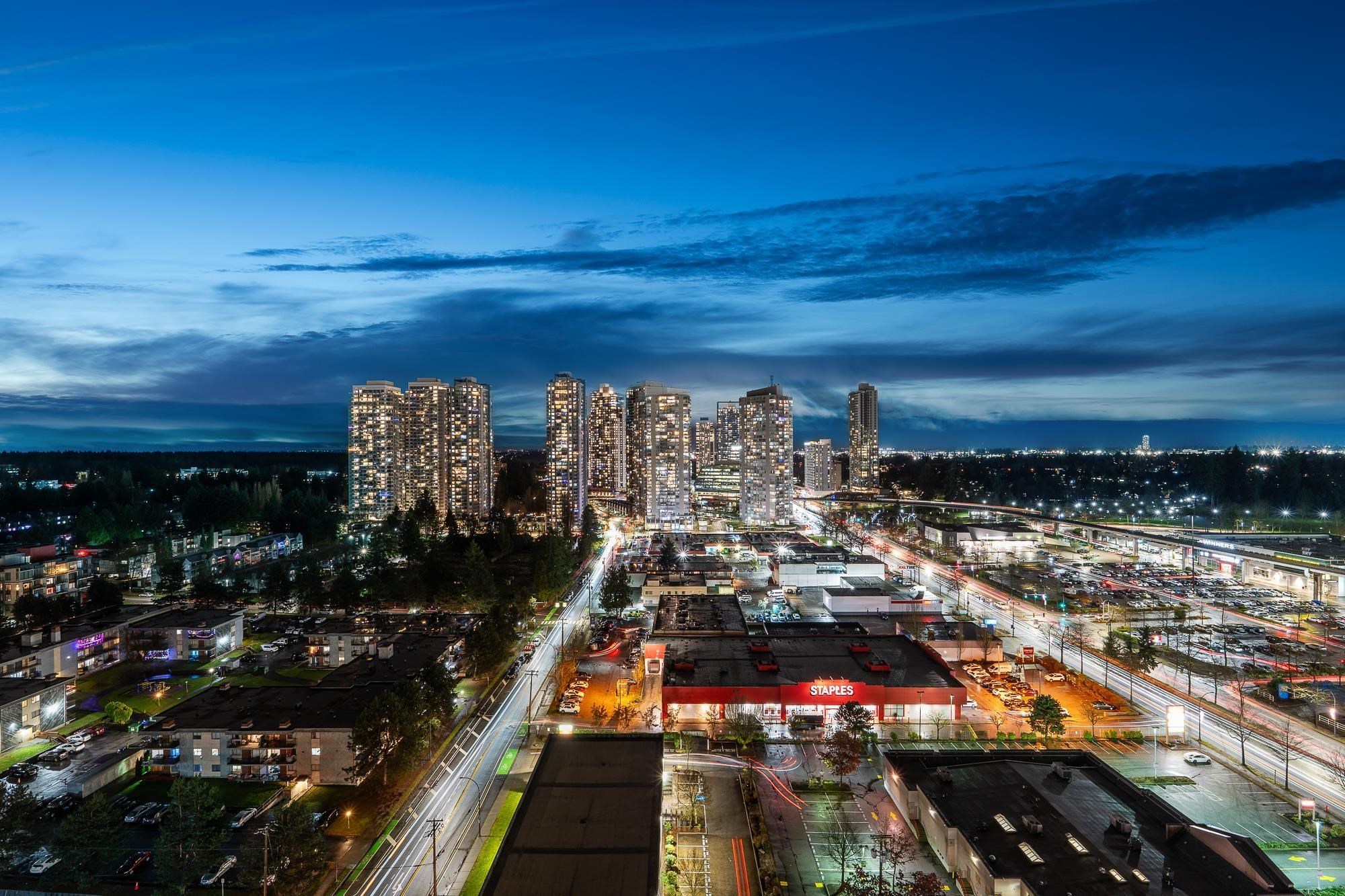 Welcome to Georgetown by Anthem! This immaculate, bright south-facing home features 1 bed, 1 bath, 1 parking, and 1 locker. Enjoy an open-concept living and kitchen area with quartz countertops, integrated stainless steel appliances, and laminate flooring throughout. Georgetown offers over 30,000 sq ft of amenities including an entertainment lounge, co-workspace, outdoor theatre, dog run, fitness centre, and guest suite. Steps to Surrey City Centre shopping and dining, with SkyTrain, KPU, SFU, and the upcom...