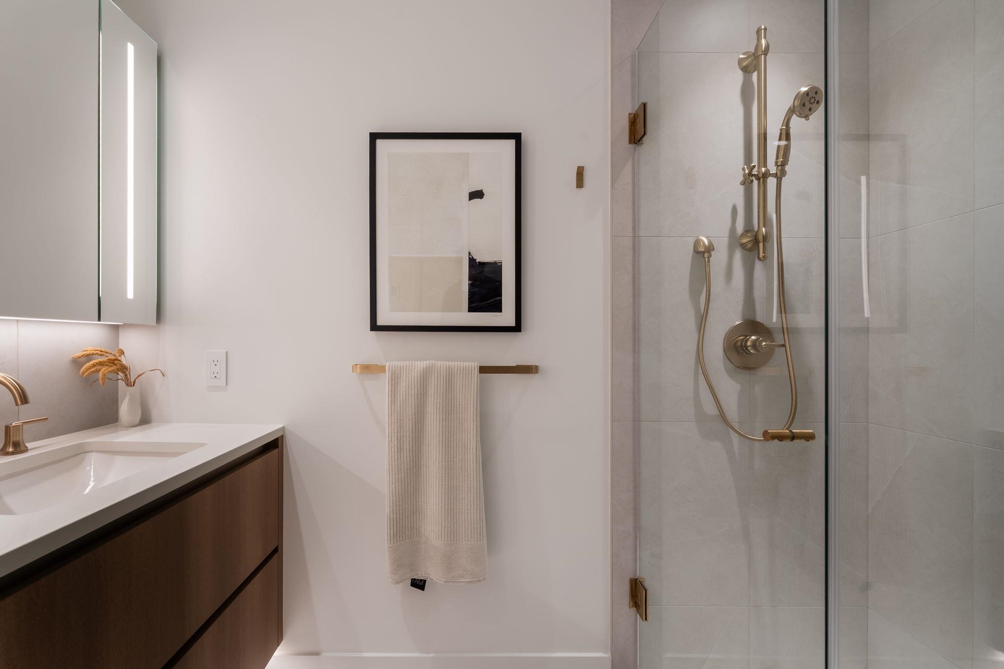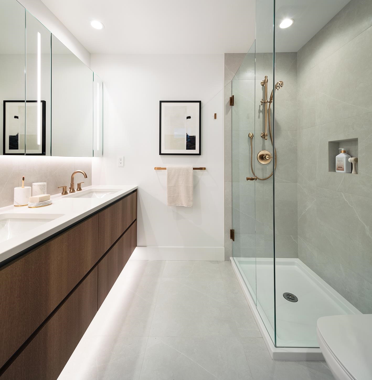 This 2-brm 2-bath CORNER move in ready next month home. Huge 233sf patio with built-in pantry wall, custom cabinetry and 30” integrated Fisher & Paykel / Bosch appliances. Air-conditioned! Primary bdrm offers built-in wardrobe, heated ensuite floors, double undermount sinks and frameless glass shower with adjustable shower head. Full-size washer dryer. Concrete tower built by Boffo Developments. Resort-style amenities include rooftop lounge, outdoor swimming pool, hot tub, fitness centre and concierge. Quie...