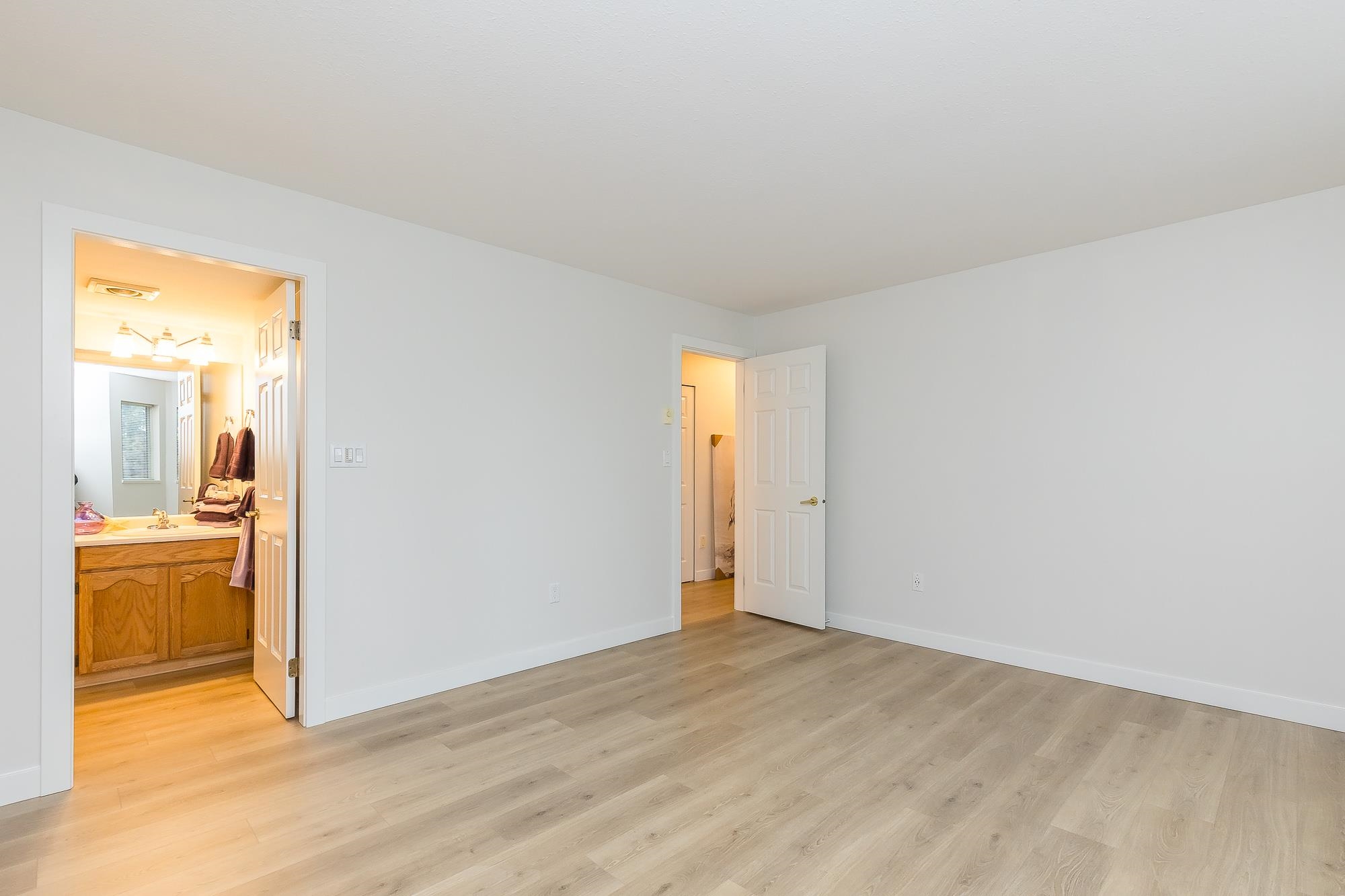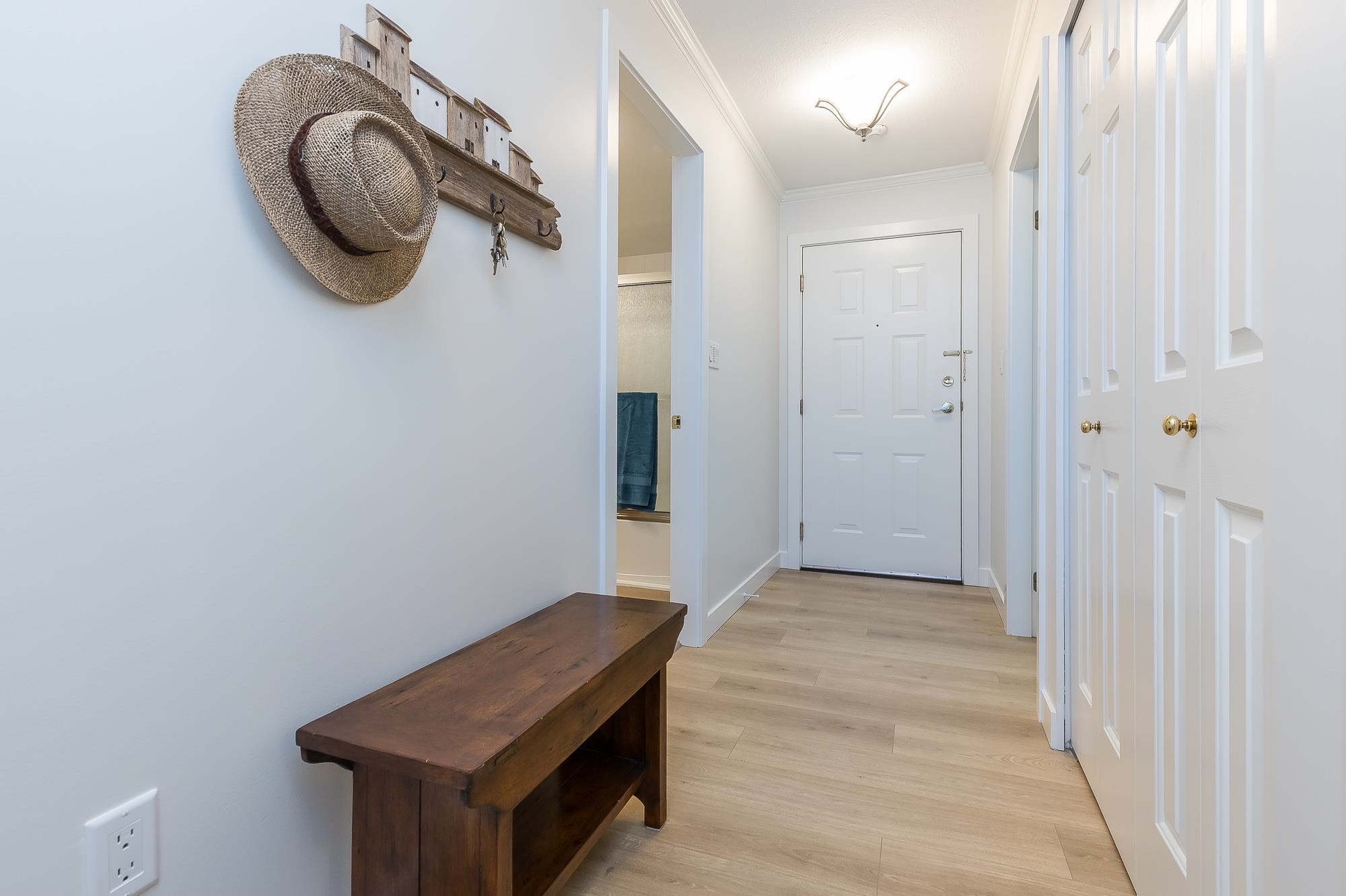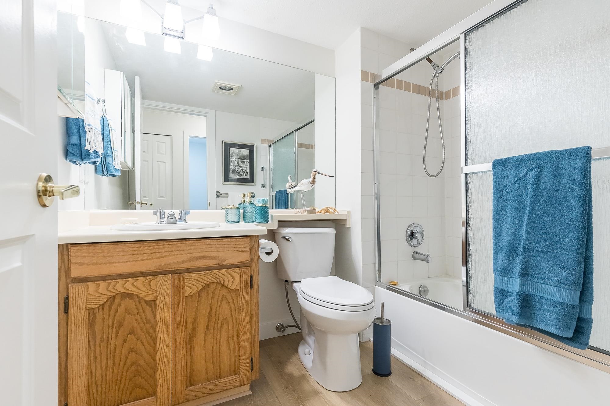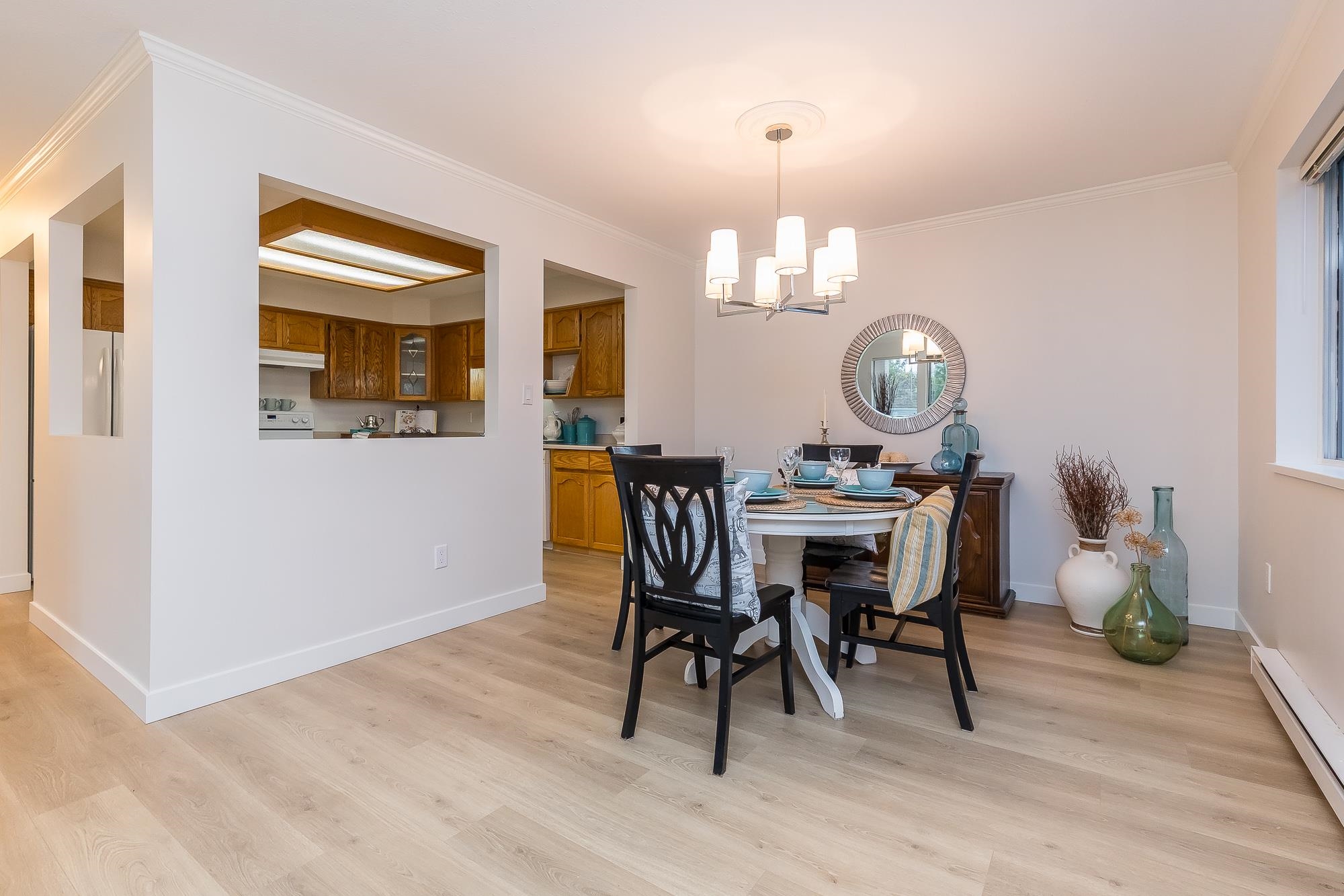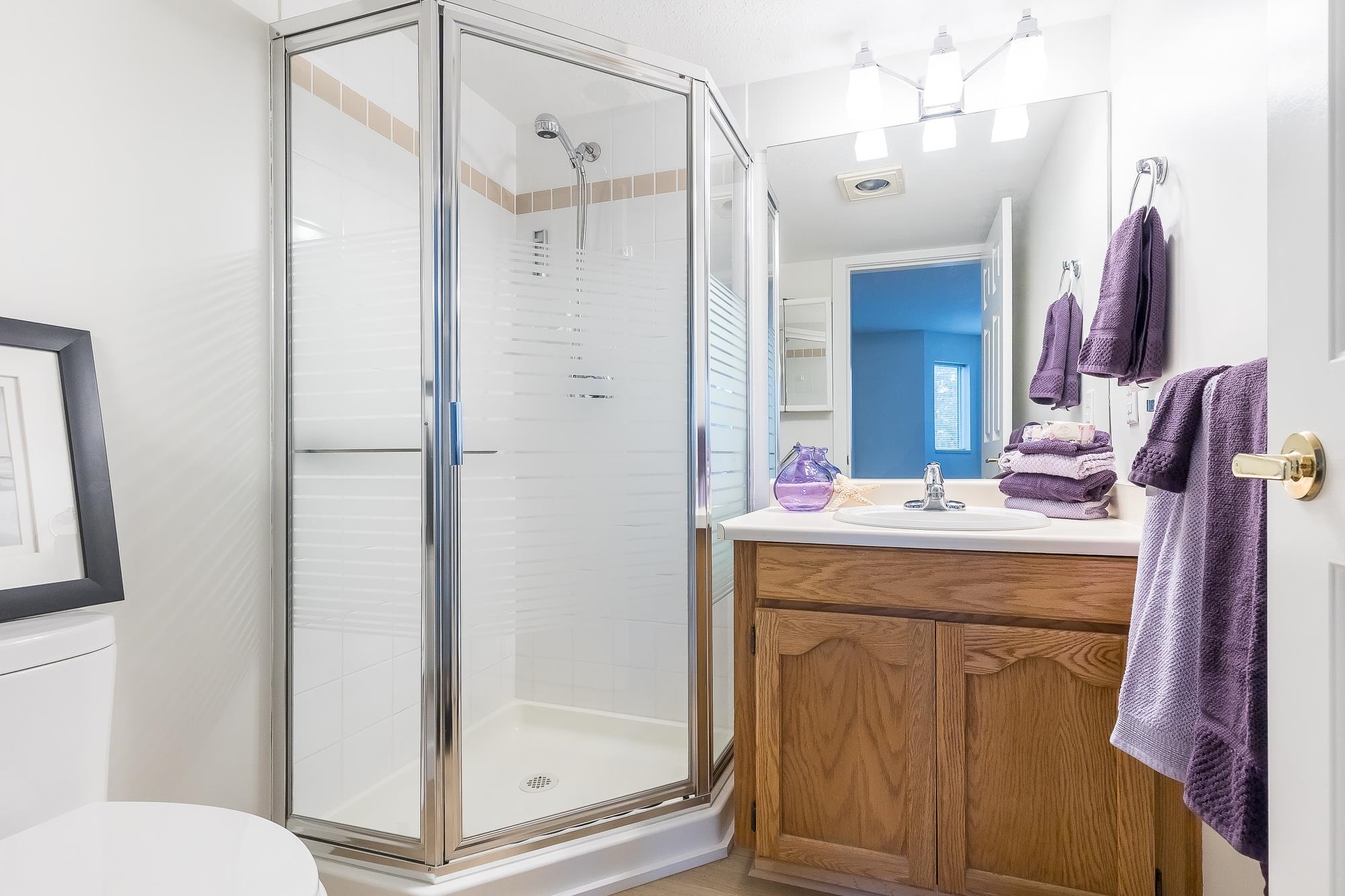 TIFFANY PARK....Bright and spacious CORNER UNIT with loads of windows. Freshly painted with all new flooring, moldings and light fixtures. Lots of cupboards in the oak kitchen. Every room is large so no need to downsize any furniture. Cozy gas fireplace in the living room. Large deck with a view of the north shore mountains. The low monthly strata fee includes heat, lights, hot water and gas fireplace. This unit is in move in ready condition. 55 plus, no pets. Secure underground parking stall.