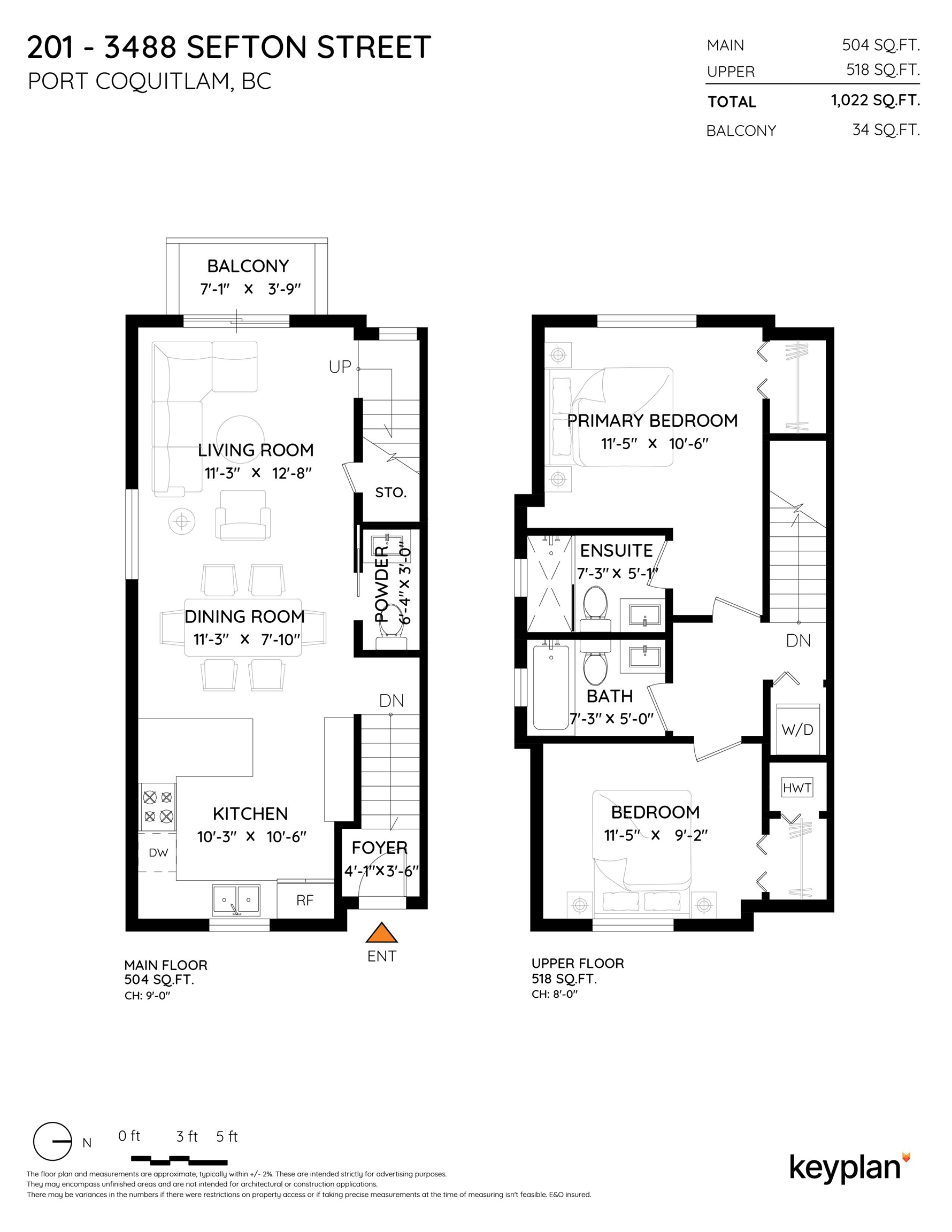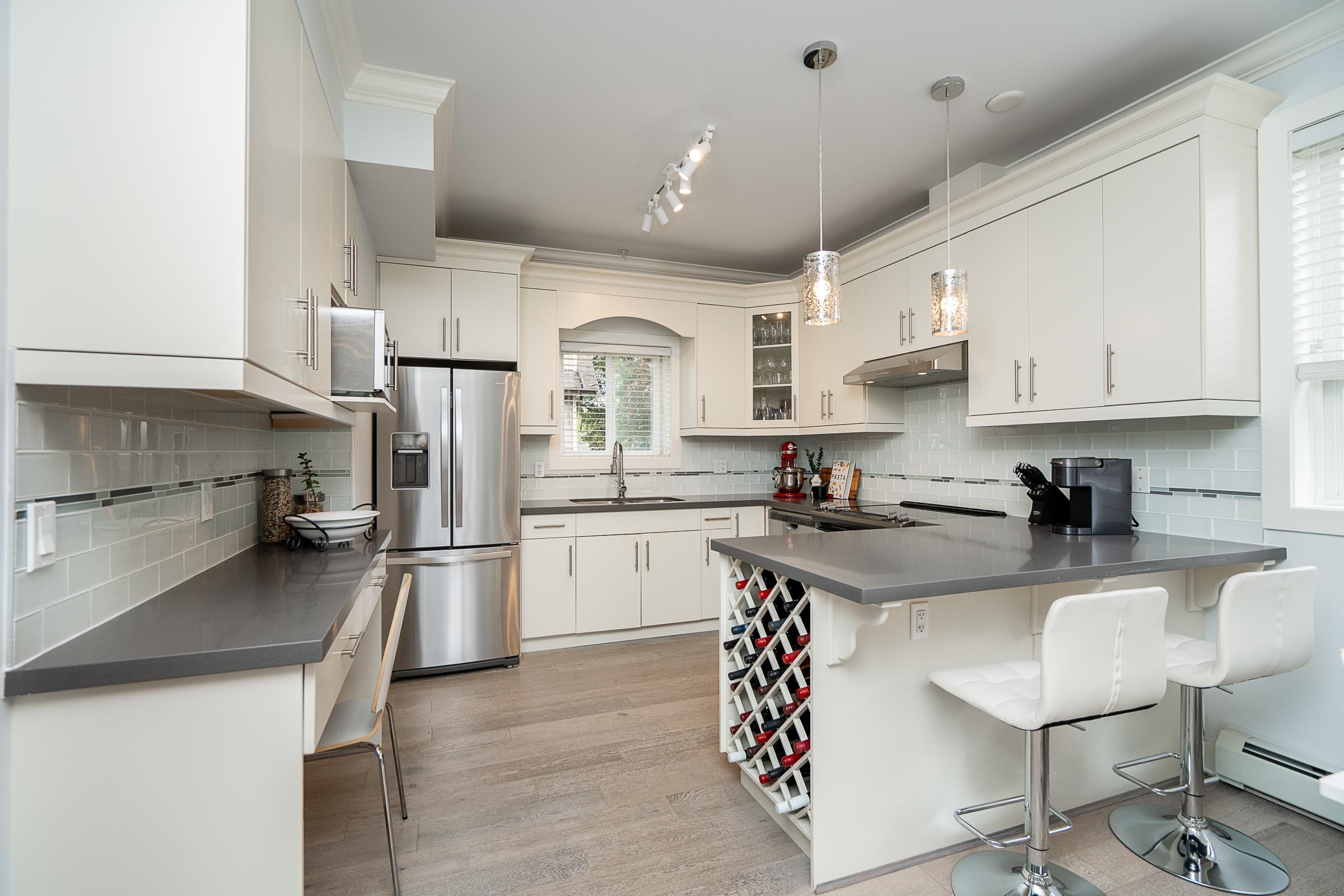 Welcome to Sefton Springs in Glenwood, Port Coquitlam! This well maintained, walk up END UNIT, 2 level townhome features 2 bedrooms, 3 bathrooms, and 1,022 sq ft of bright and airy living space! On the main floor, enjoy an open layout with 9 ft ceilings and engineered hardwood floors, plus a 2 piece bathroom. Efficient kitchen layout with peninsula, granite counters and built-in workstation. The living room has a cozy fireplace and leads to a sunny, West facing covered balcony. Upstairs are 2 spacious bedro...
