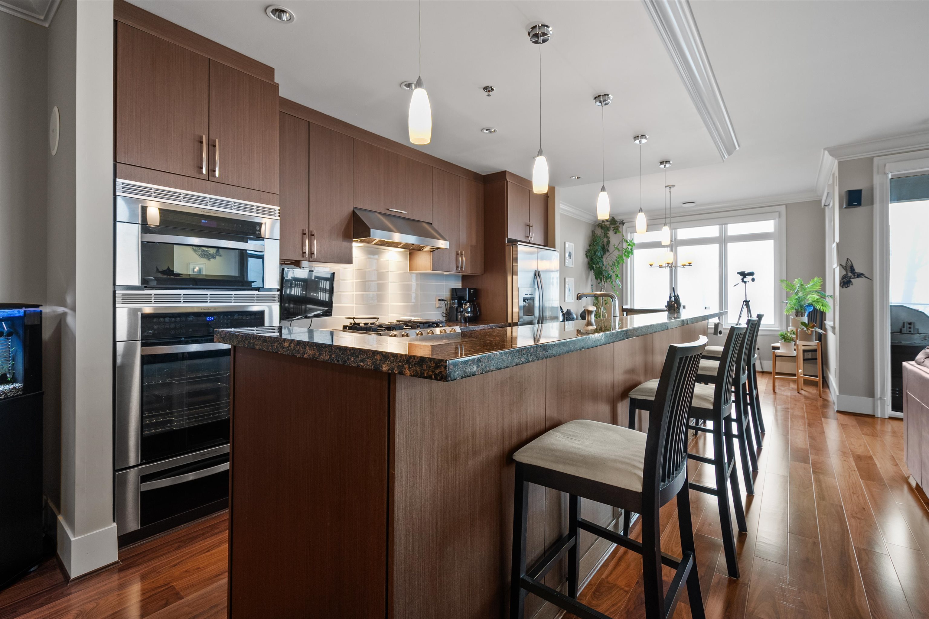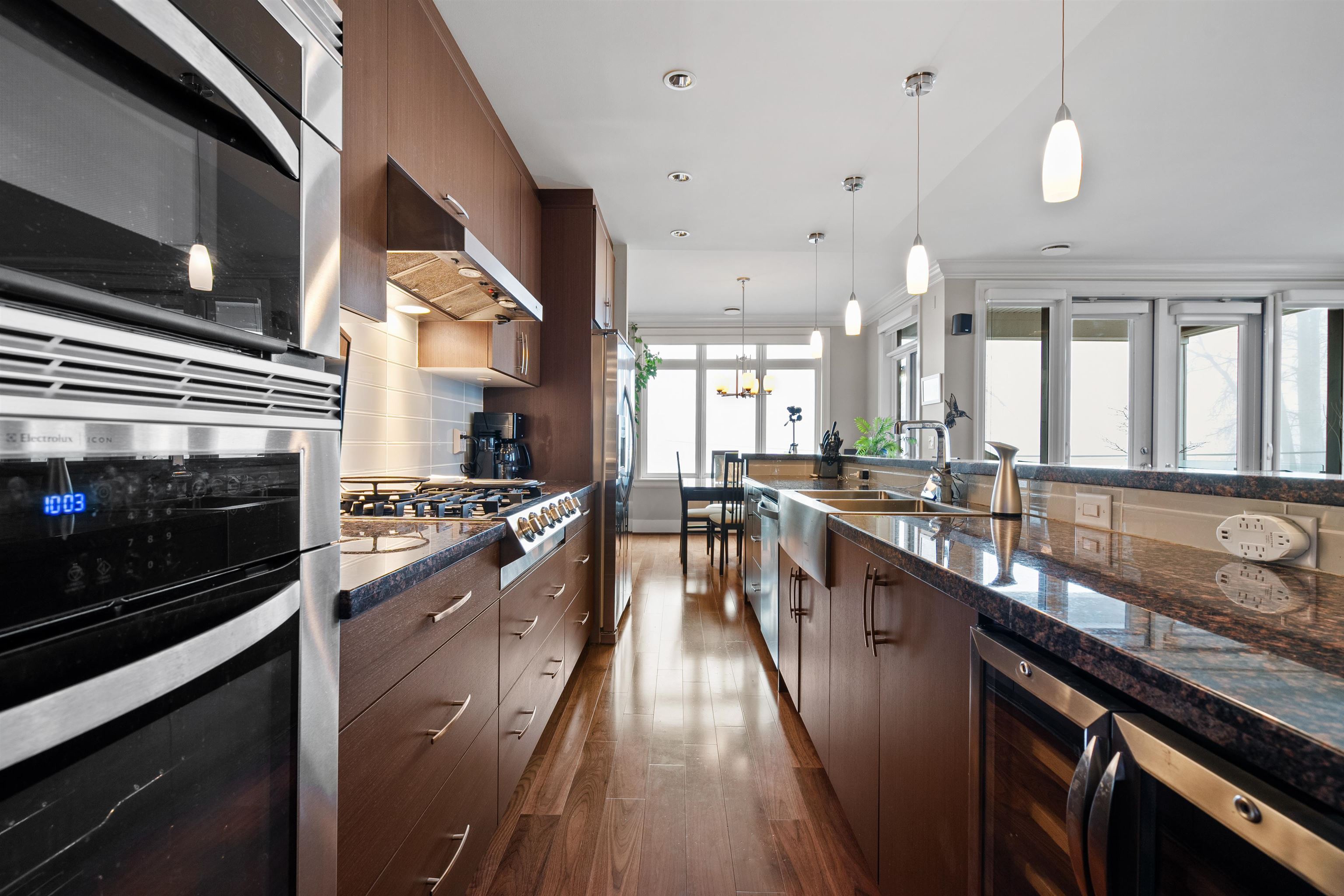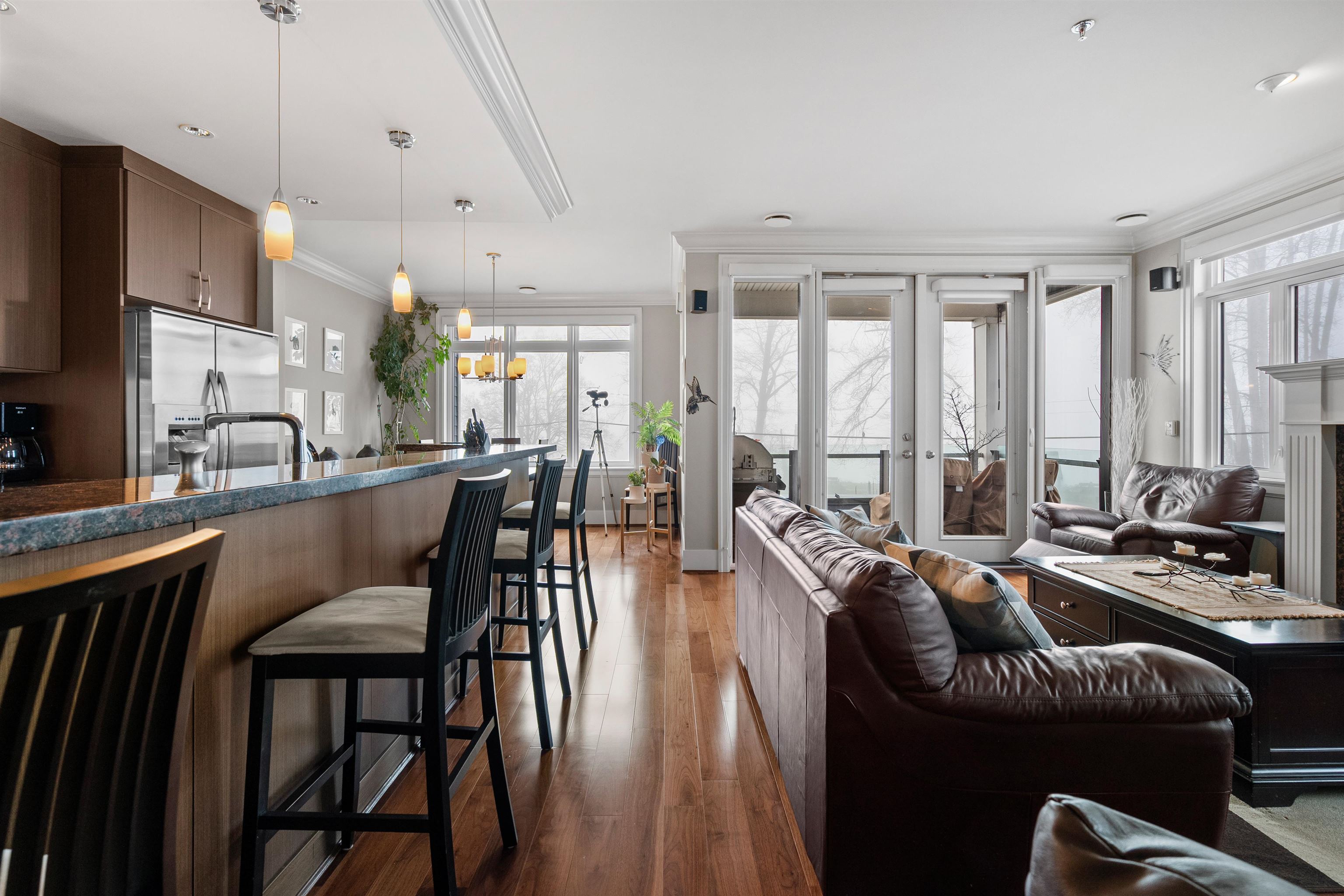Waterfront living at its best! This rarely available luxury waterfront single level home offers unobstructed views of the Fraser River. This home features engineered hardwood floors, a gourmet kitchen with high-end appliances, a 6-burner stove, wine fridge and warming drawer. Enjoy sunsets and water views from the South-West facing patio, creating seamless indoor-outdoor living. Includes geothermal heating/cooling, built-in surround speakers, a custom walk-in closet, and a spa-inspired bathroom with a steam...