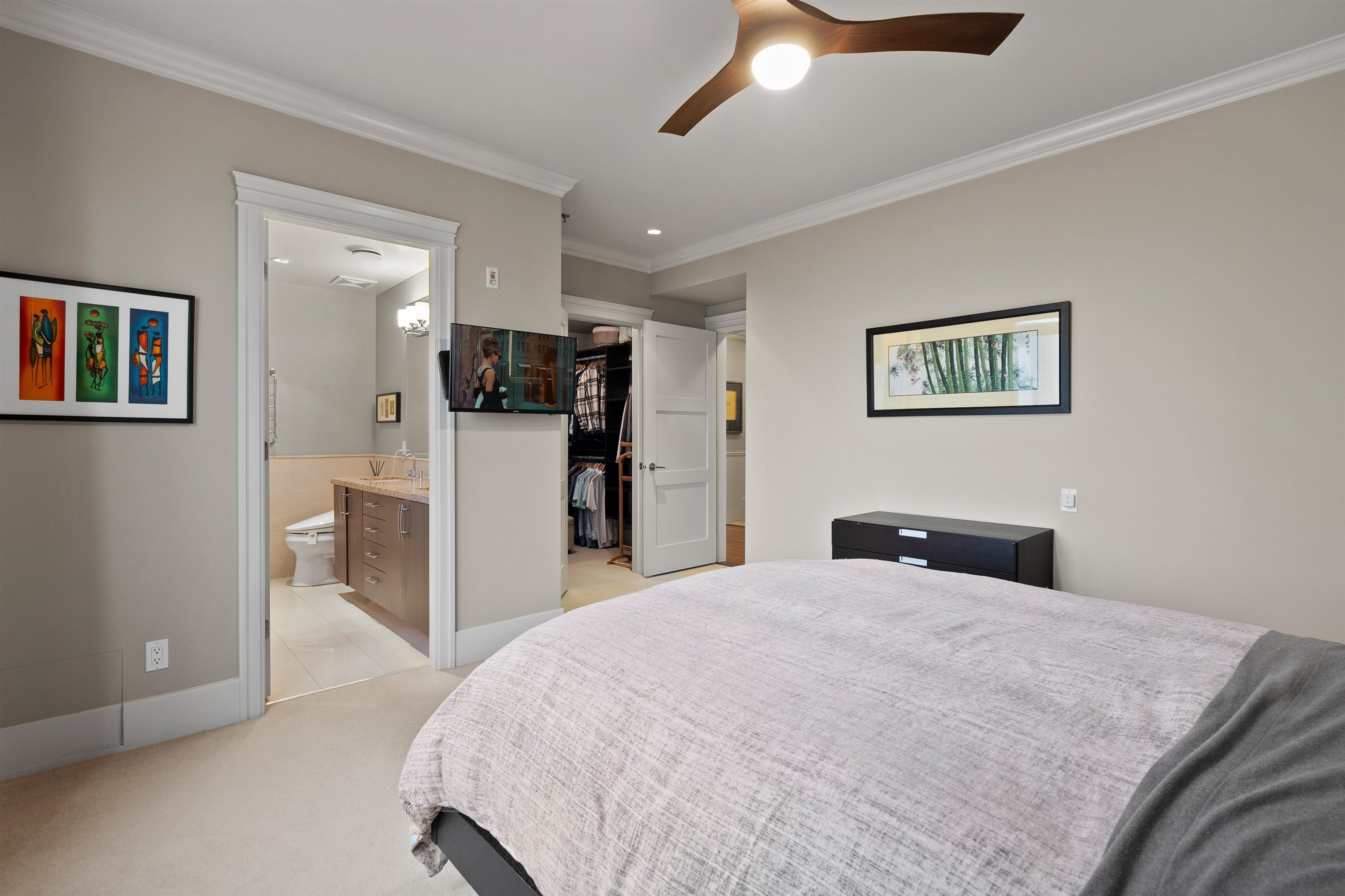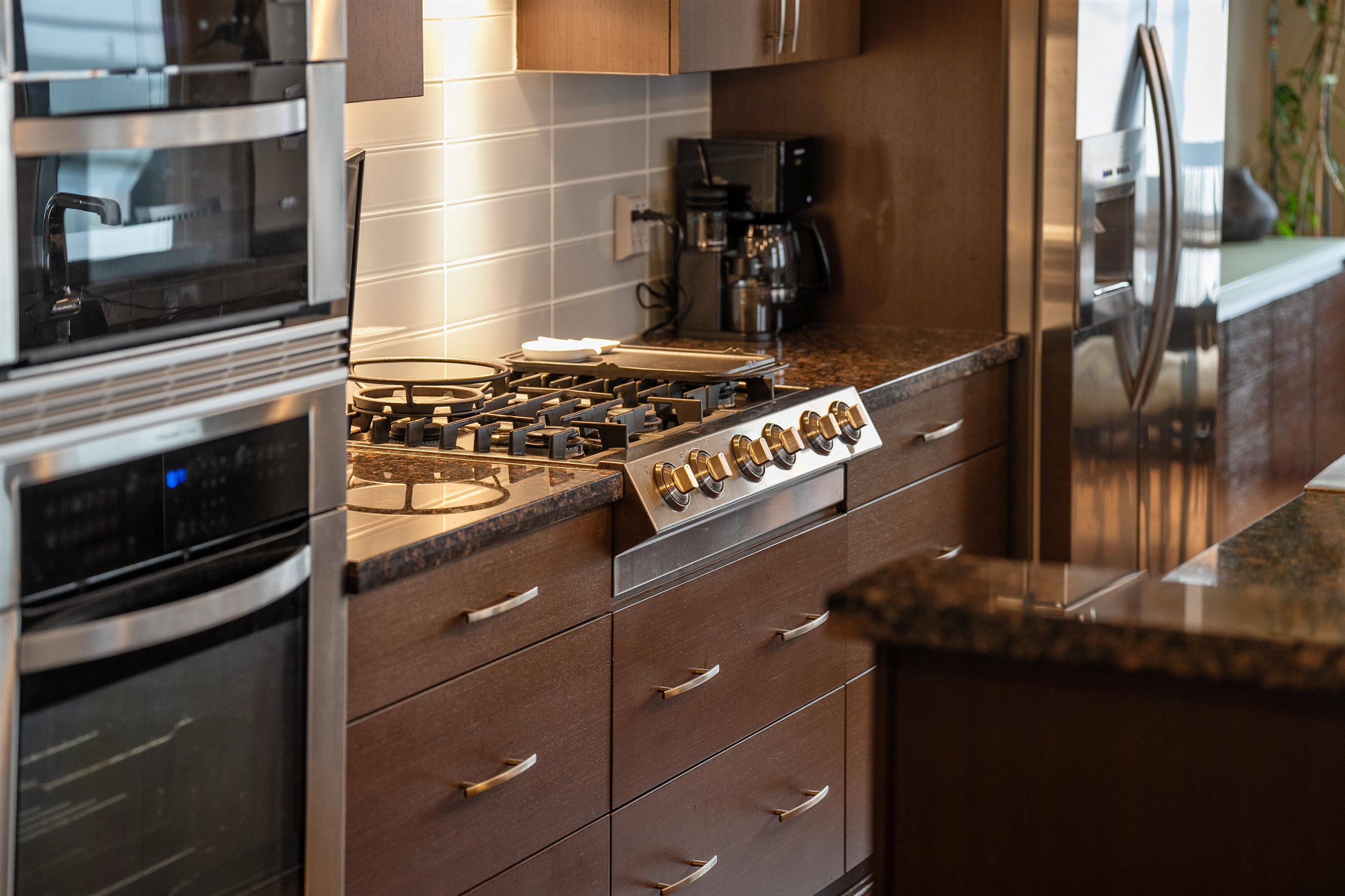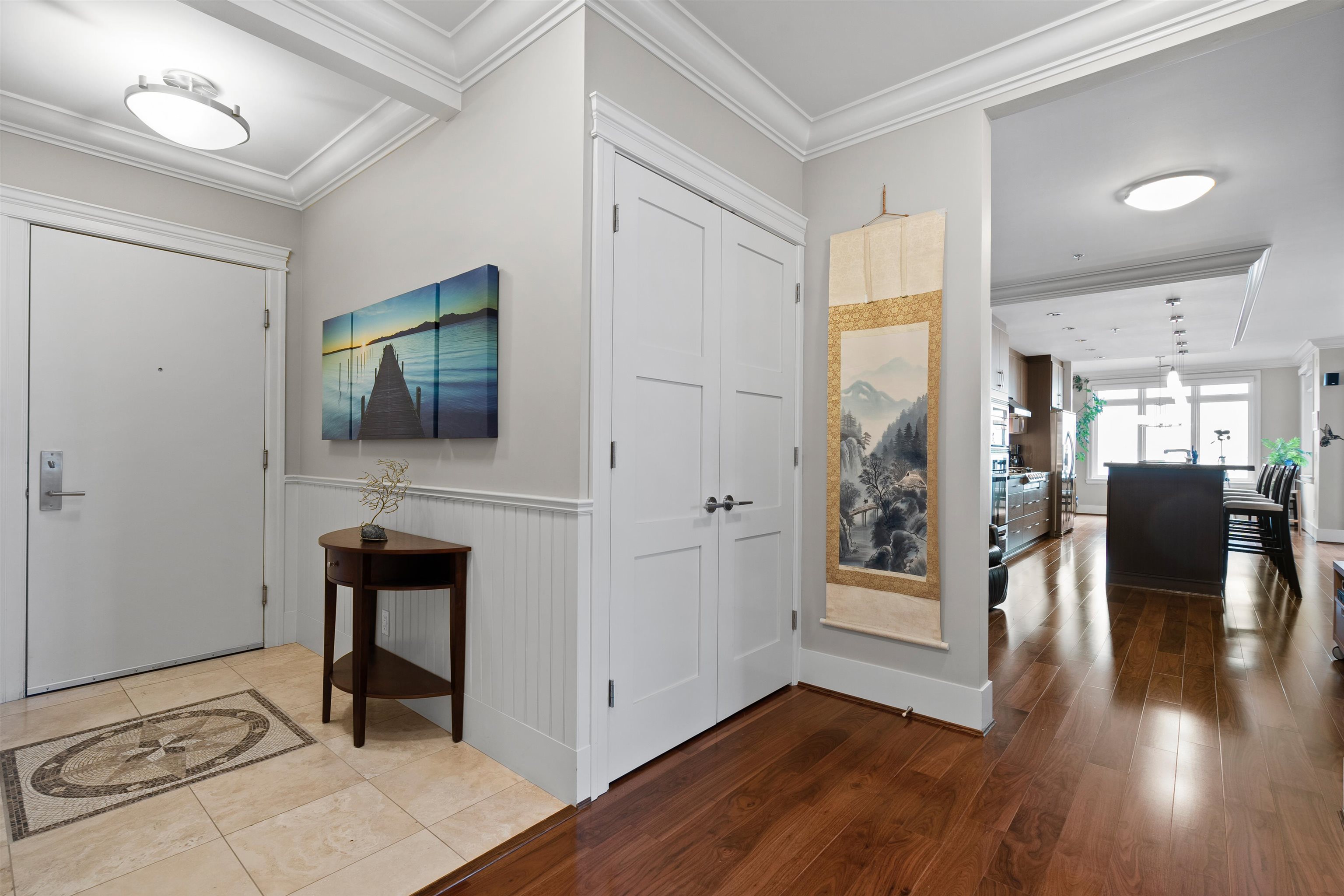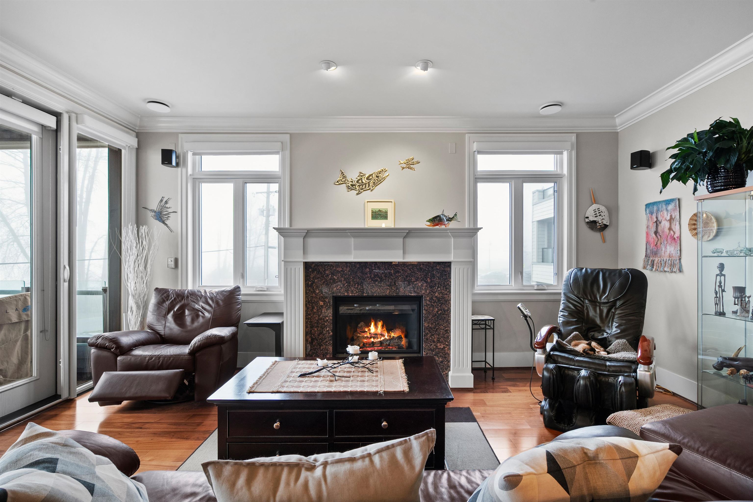 Waterfront living at its best! This rarely available luxury waterfront single level home offers unobstructed views of the Fraser River. This home features engineered hardwood floors, a gourmet kitchen with high-end appliances, a 6-burner stove, wine fridge and warming drawer. Enjoy sunsets and water views from the South-West facing patio, creating seamless indoor-outdoor living. Includes geothermal heating/cooling, built-in surround speakers, a custom walk-in closet, and a spa-inspired bathroom with a steam...
