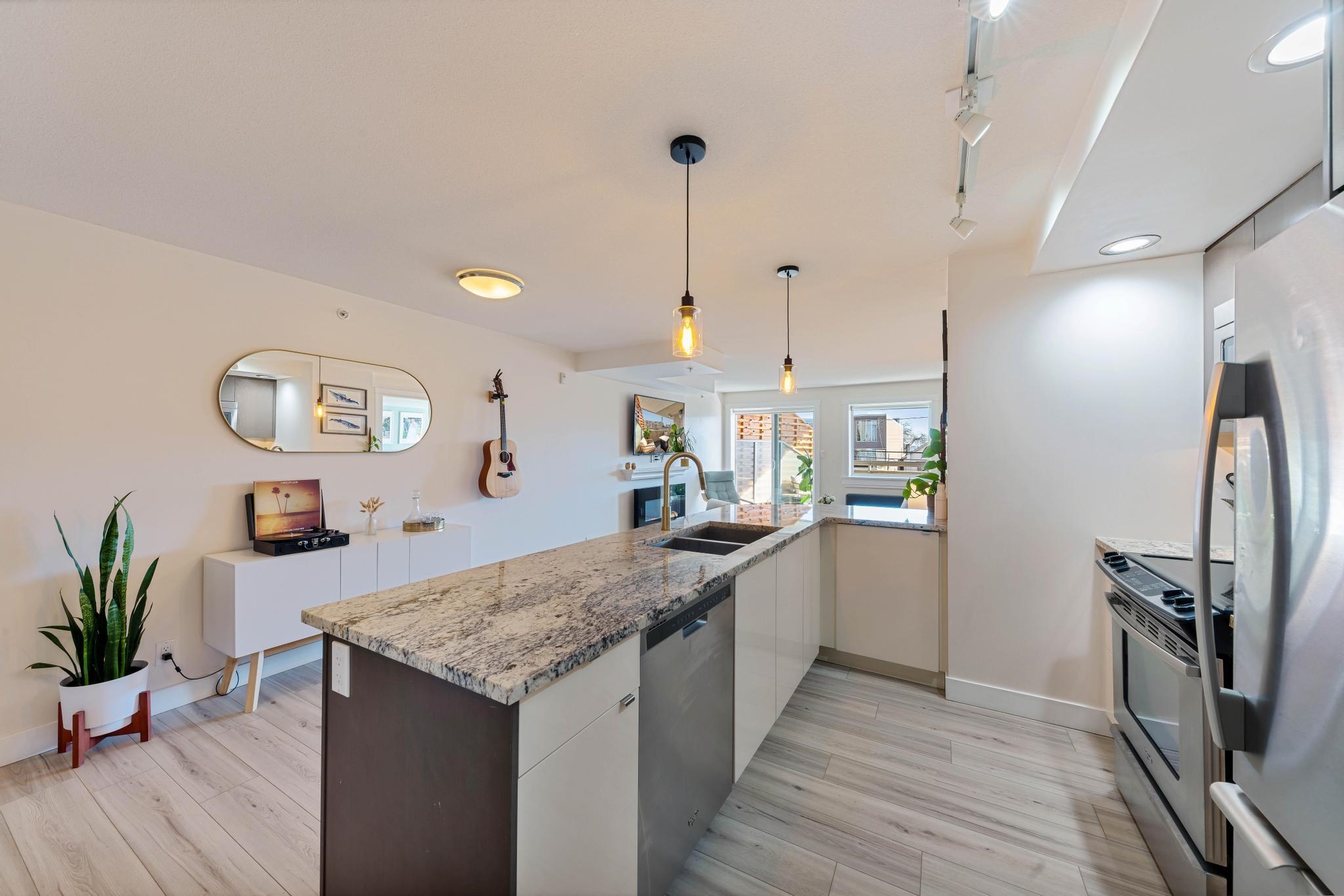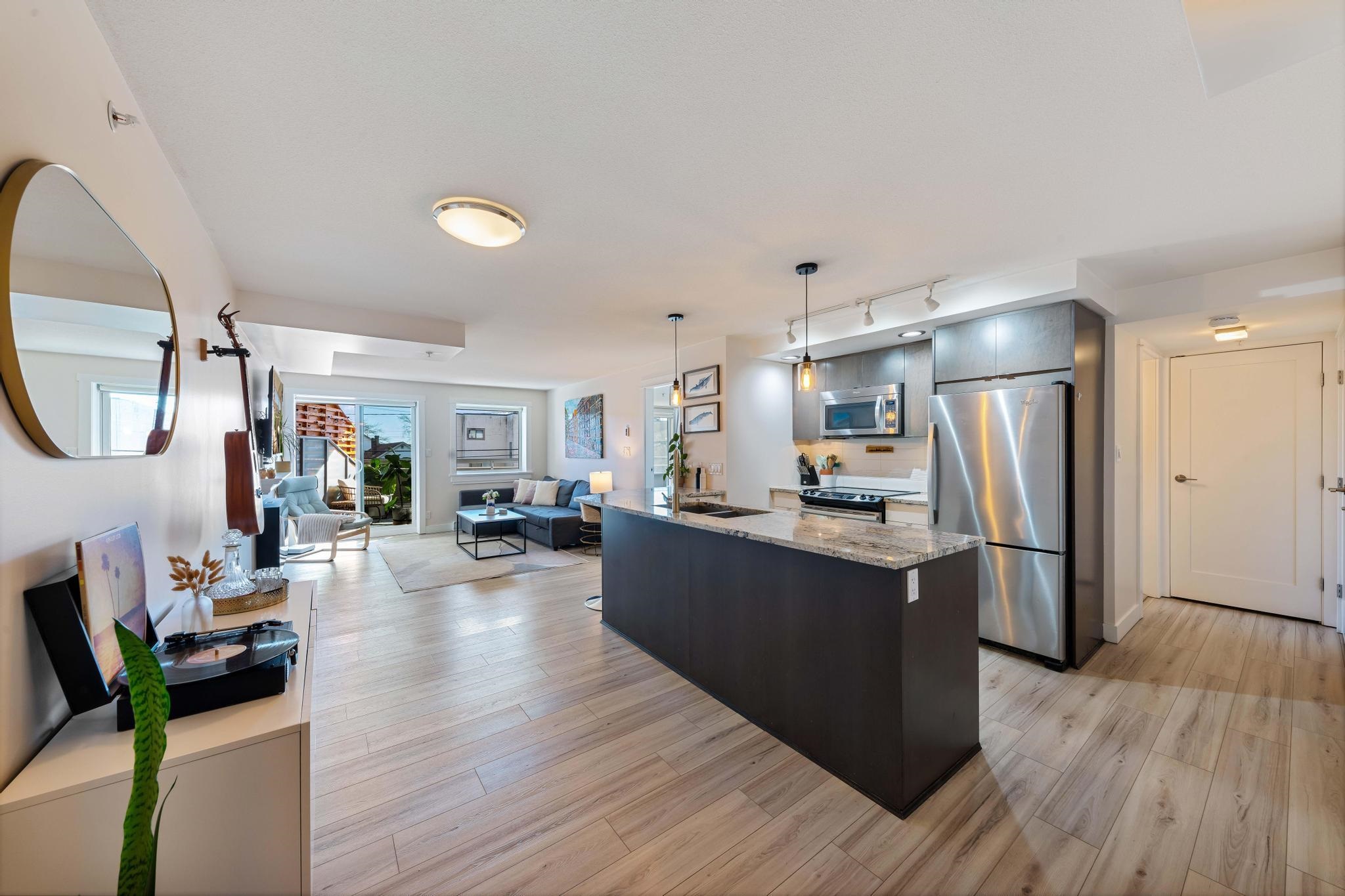 Classy 1 bed/1 bath executive condo only steps away from the beach and boardwalk of White Rock! Enjoy walking alongside the ocean with quick access to a variety of retail shops/restaurants, and summer days at the beach while living at Sausalito. This spacious, former show home was recently updated with new flooring, new light fixtures, faucets, and fresh paint throughout. Sausalito is a quiet, concrete building featuring granite countertops, stainless steel appliances, in-suite laundry, heated tile flooring...